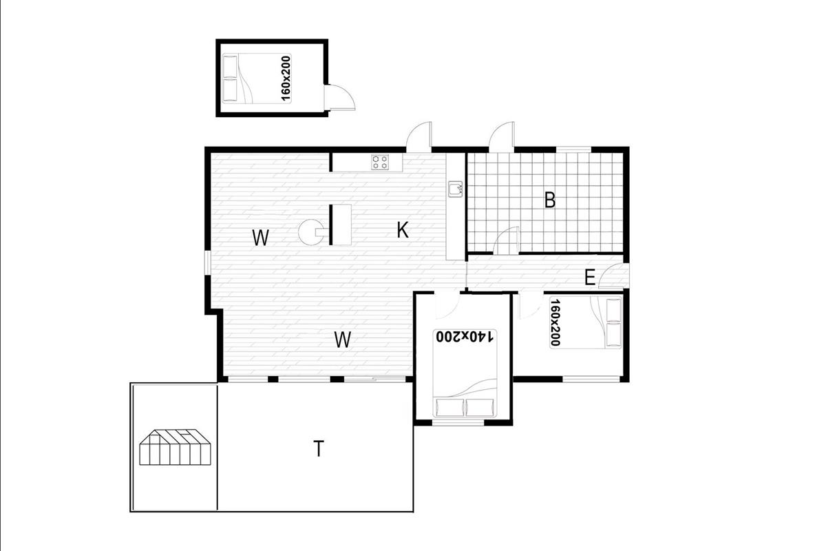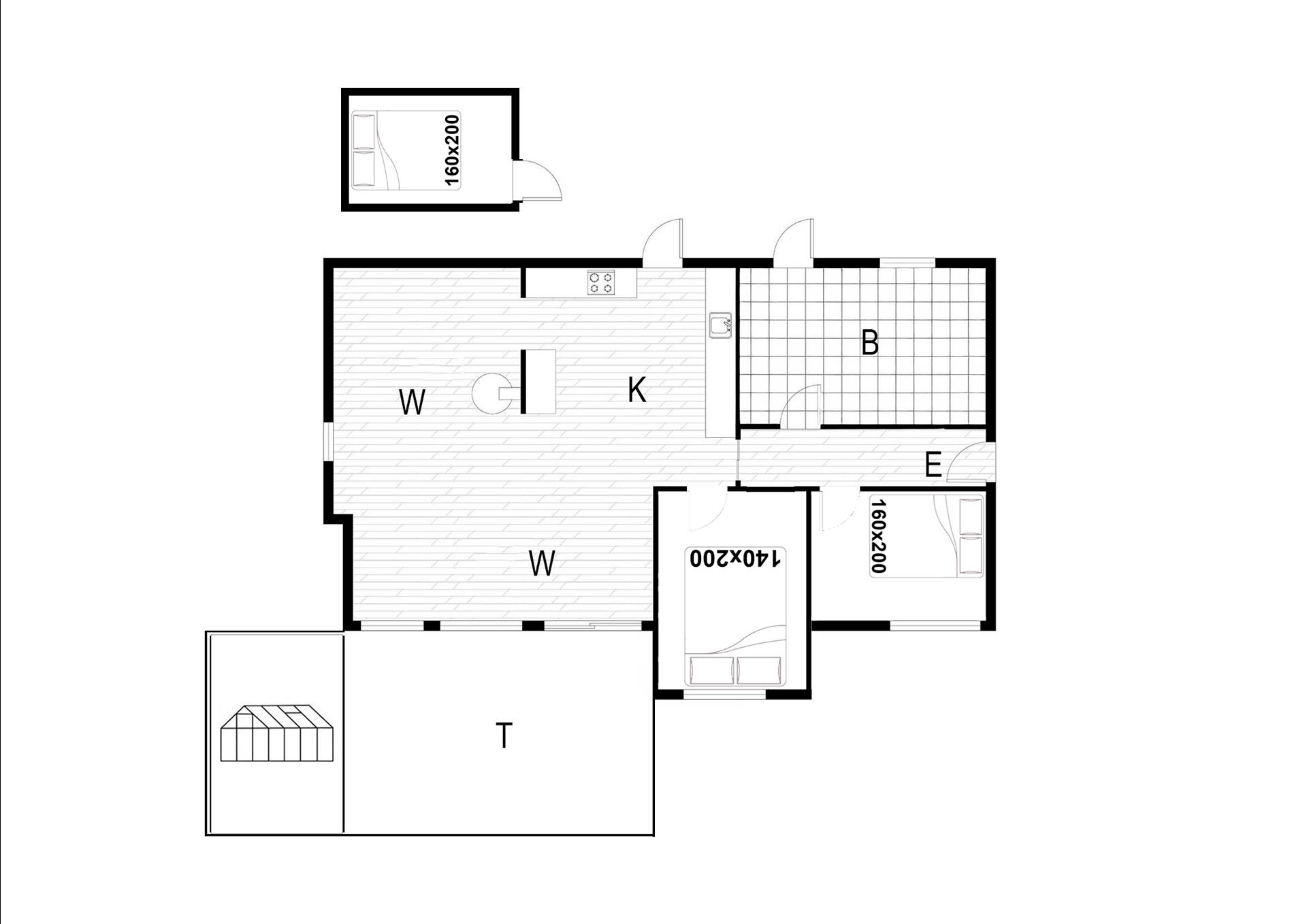 Bettengrösse: 1 Doppelbett 160 x 200 cm + 1 Doppelbett 140 x 200 cm Annex 160 x 200