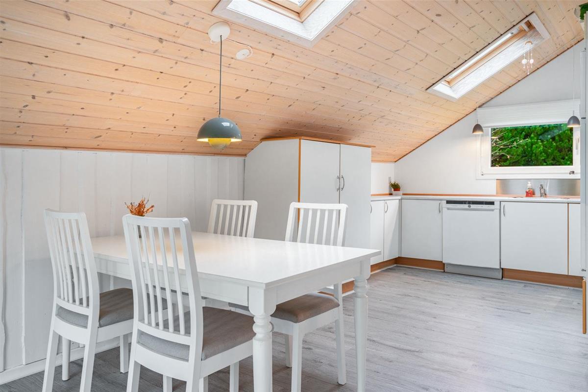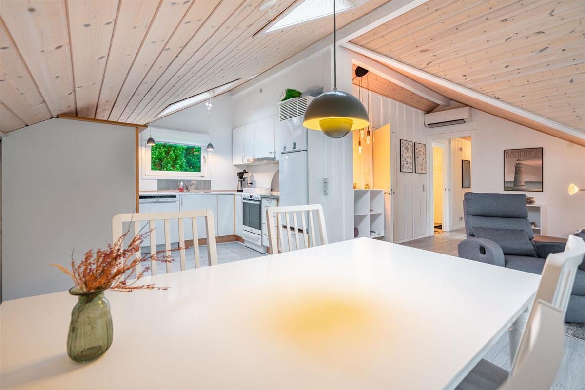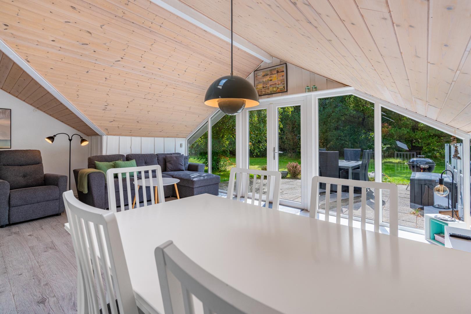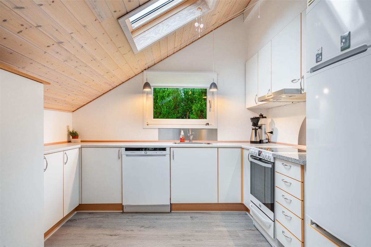 Offene Küche in Verbindung mit Wohnzimmer. Hohe Decken und Oberlichtfenster. Schönes Badezimmer. Extra Abstellraum. Im Außenbereich finden Sie 3 Terrassen, so dass Sie die Möglichkeit haben, dises je nach Wind und Wetter zu benutzen. Die Kinder haben die Möglichkeit, im Wald zu sein. Umweltfreundliche Wärmepumpe für kalte Tage. Das Haus erscheint auf dem neuesten Stand und wurde kontinuierlich renoviert.