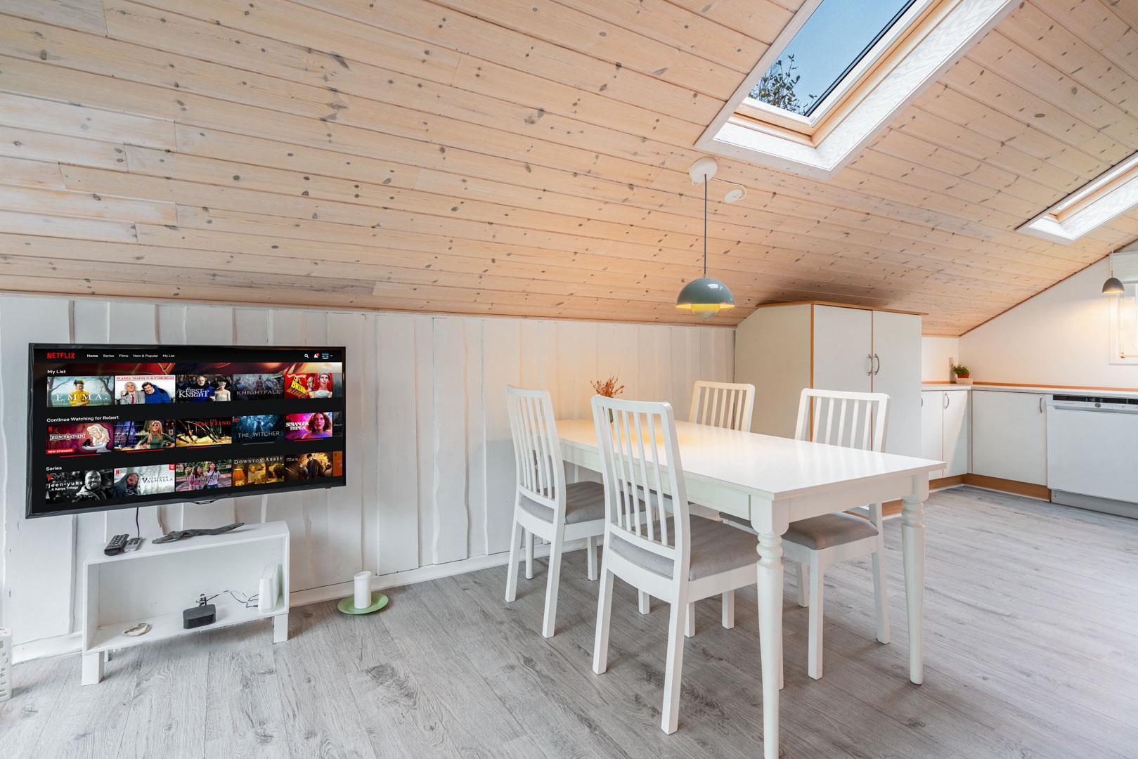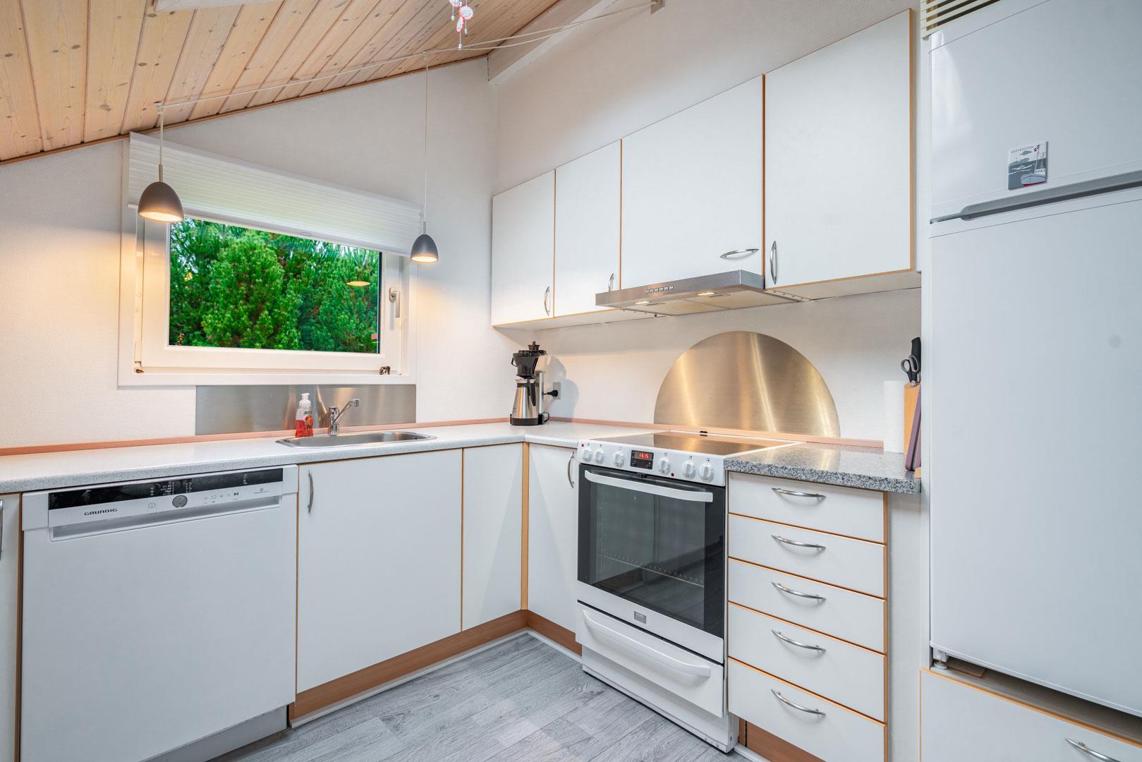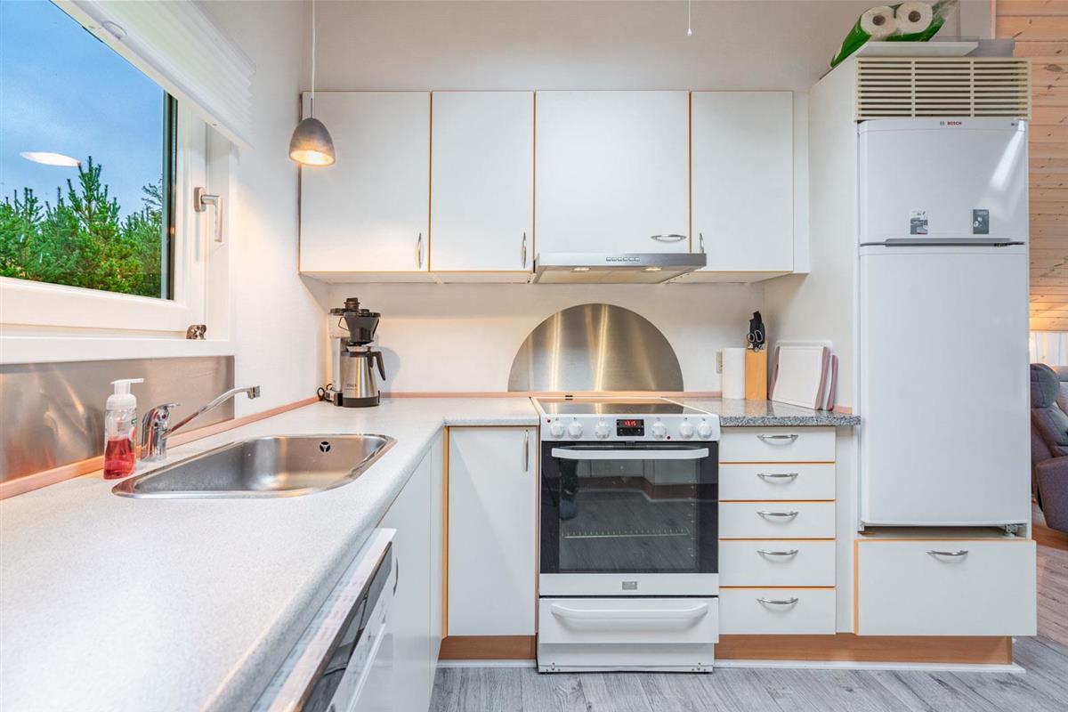 Offene Küche in Verbindung mit Wohnzimmer. Hohe Decken und Oberlichtfenster. Schönes Badezimmer. Extra Abstellraum. Im Außenbereich finden Sie 3 Terrassen, so dass Sie die Möglichkeit haben, dises je nach Wind und Wetter zu benutzen. Die Kinder haben die Möglichkeit, im Wald zu sein. Umweltfreundliche Wärmepumpe für kalte Tage. Das Haus erscheint auf dem neuesten Stand und wurde kontinuierlich renoviert.