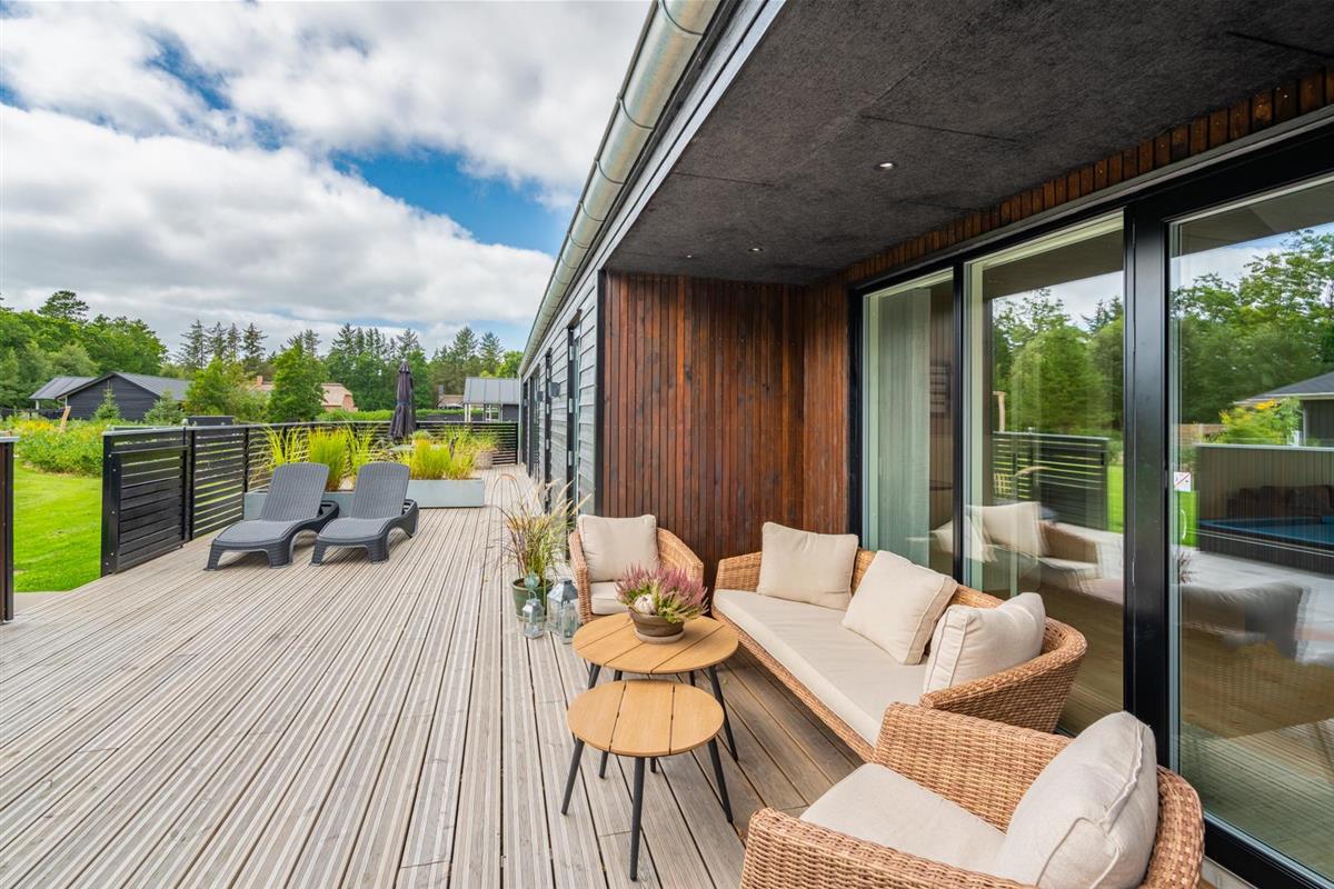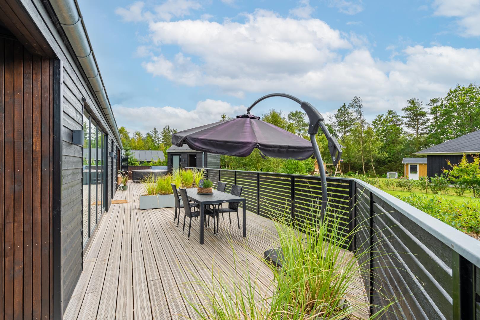 Auf der riesigen Terrasse mit mehreren Überdachungen, Gartenmöbeln, Grill und Sonnenschirm lässt Sie es genießen, wenn die Sonne scheint.