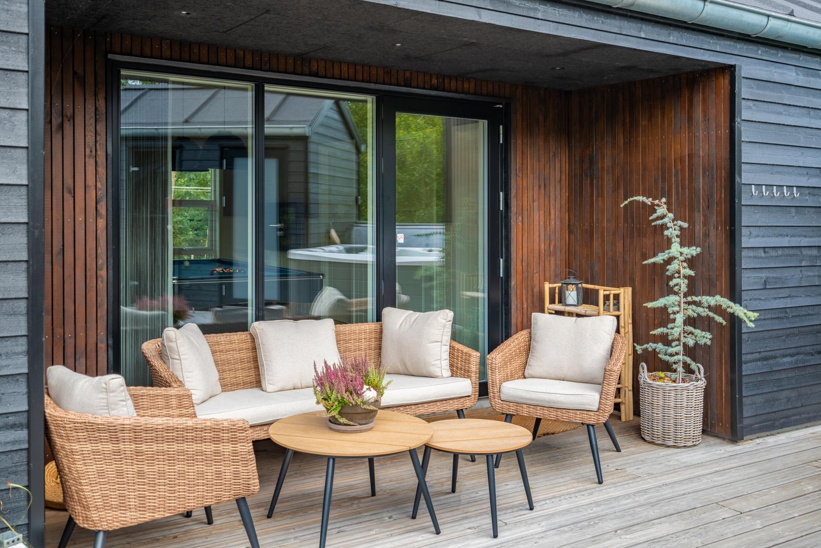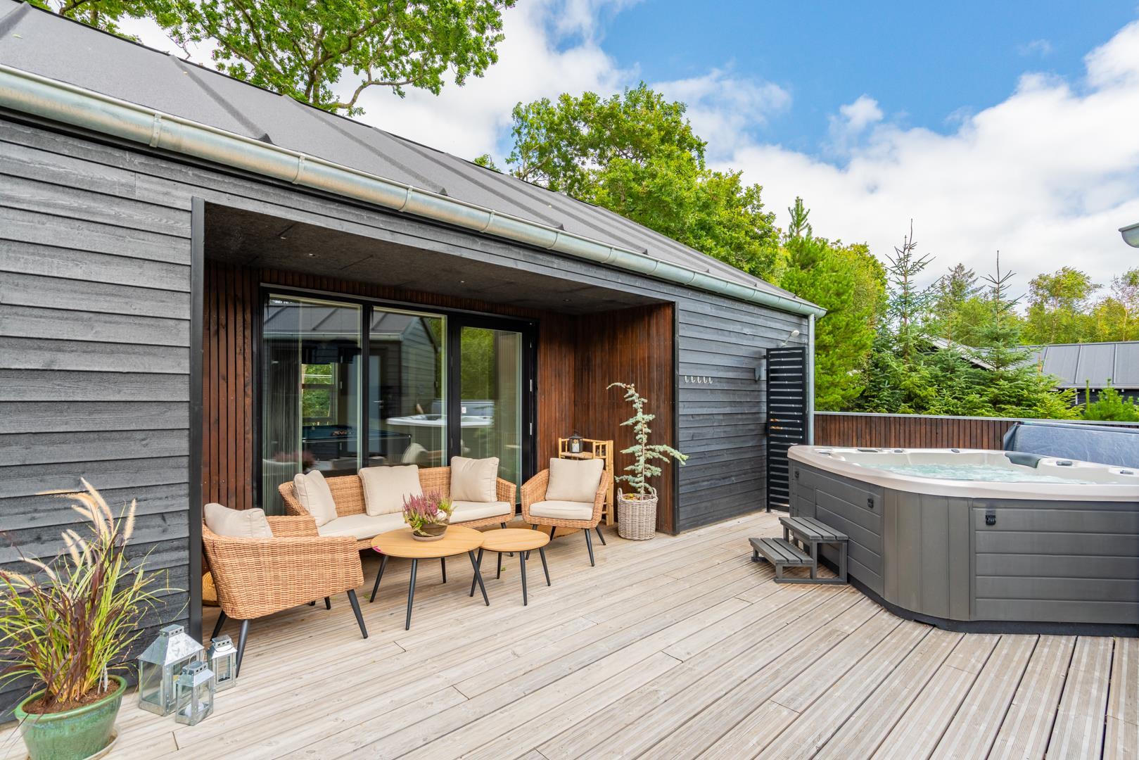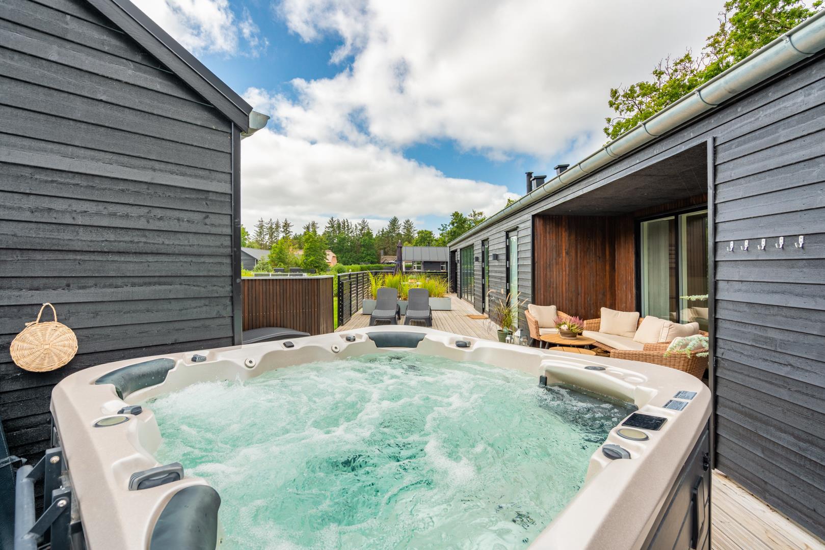 Im Freien können Sie einen Whirlpool genießen, das zu jeder Jahreszeit wunderbar ist und Spaß macht. Nebenan befindet sich die Außensauna - pure Seelenkur.