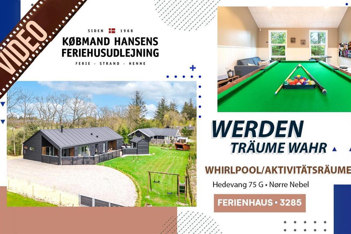 Im Hedevang 75 G werden Träume wahr - nichts wird dem Zufall überlassen - der Besitzer hat sich um jedes Detail gekümmert, so dass Ihnen ein wunderschöner Urlaub garantiert ist - vor allem auf einem schönen Grundstück am Ende der Straße - ein Eckgrundstück mit Bepflanzung. Das Haus wurde 2022 erbaut und hat alles, was das Herz zum Verwöhnen in den Ferien begehrt.