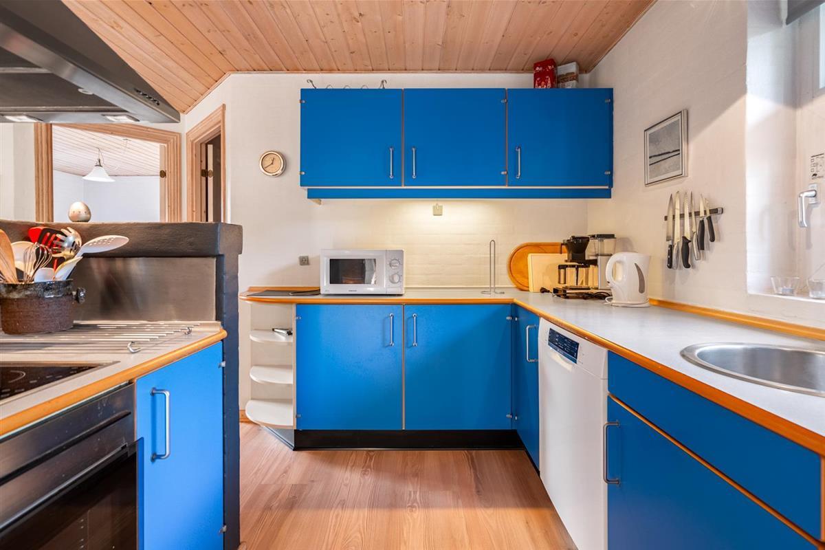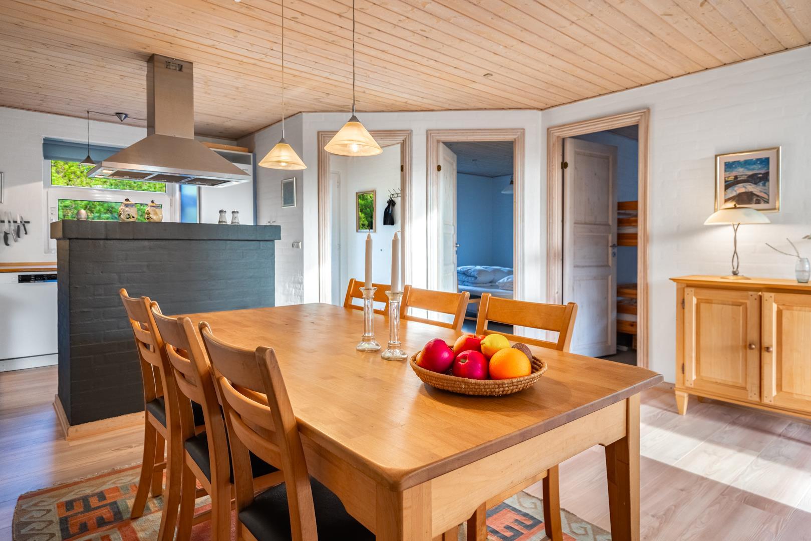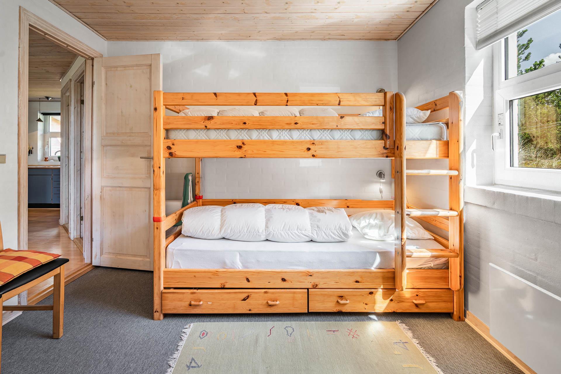 Die Küche ist gut ausgestattet mit Spülmaschine, extra Gefrierschrank und Mikrowelle. Die Stube ist mit behaglichen Möbeln ausgestattet, großen Fensterfront mit gutem Lichteinfall, sowie TV, Kamin und Wärmepumpe, so dass die Stromrechnung gering gehalten werden kann und gleichzeitig ein gutes Innenklima gewährleistet ist. Das Haus hat Platz für 6 Personen mit 3 Schlafzimmern, wovon 2 Zimmer Doppelbett haben.