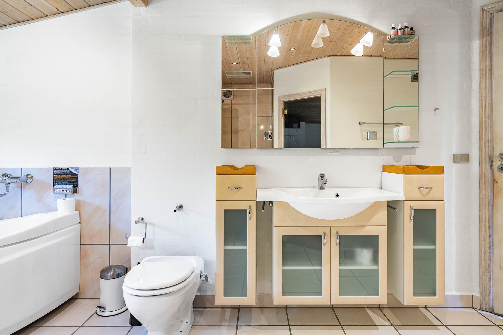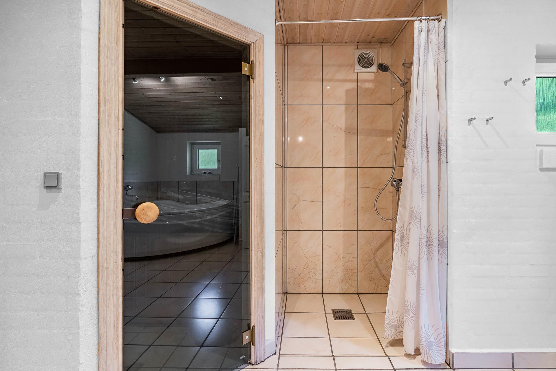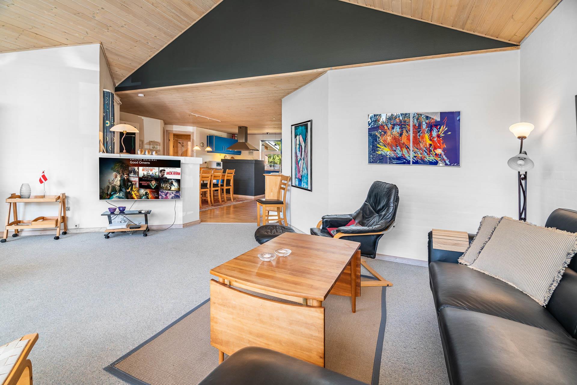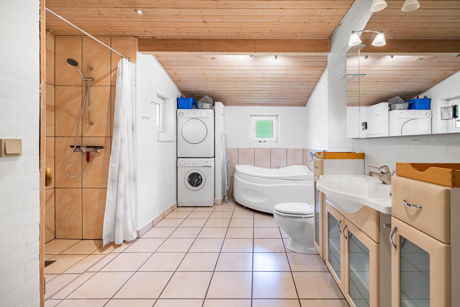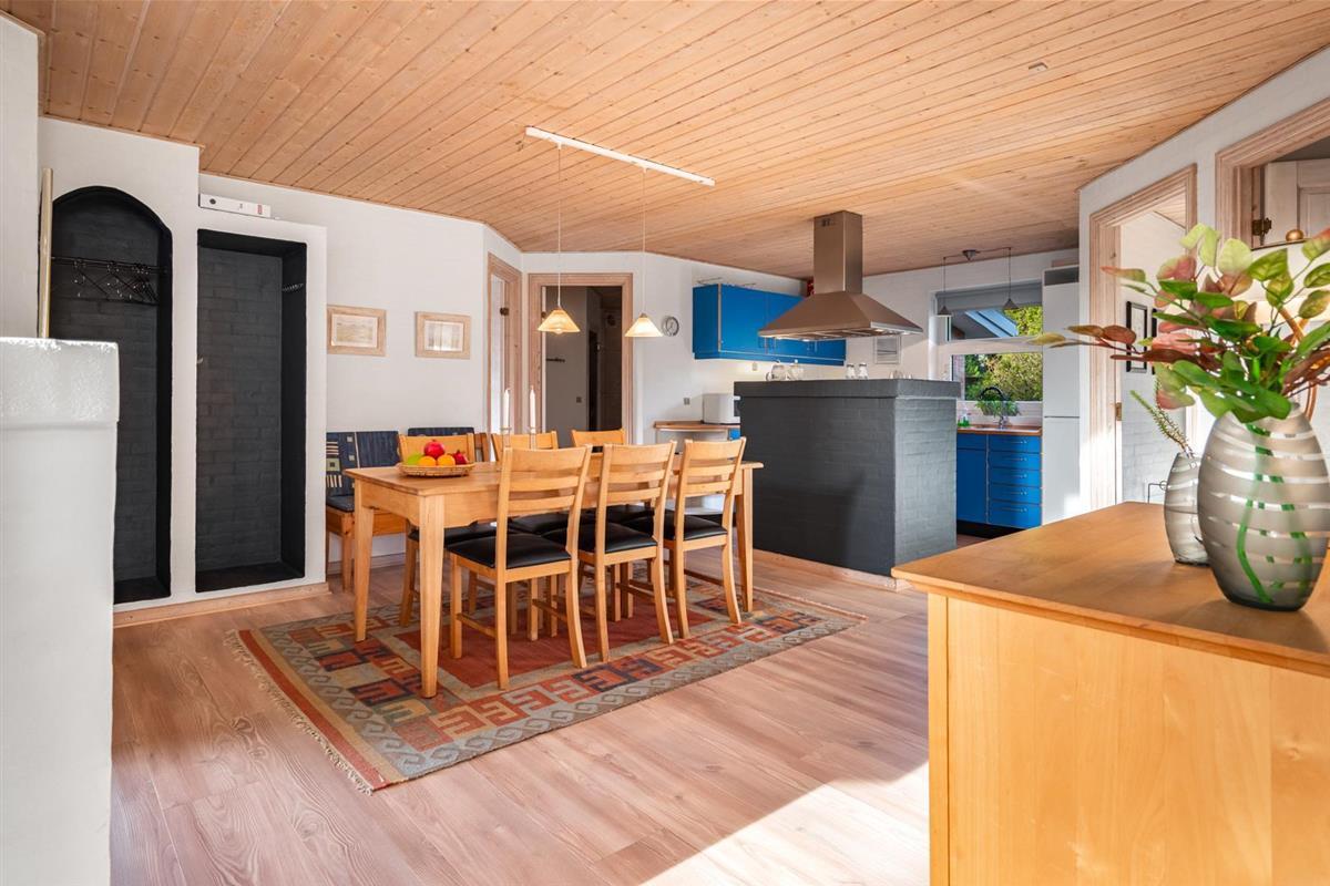 Gutes Ferienhaus in Stein mit Carport gelegen auf einer Seitenstraße in Houstrup. Hügeliger und gut bepflanztes Grundstück mit offener und überdachter Terrassen darüber mehrere windgeschützte Ecken. Geräumiges Badezimmer mit Whirlpool, Sauna und Fußbodenheizung. Hier steht auch die Waschmaschine, sowie Trockner. Für die gesamte Familie ist der kombinierte Aufenthaltsraum mit Stube, Küche und Essecke.