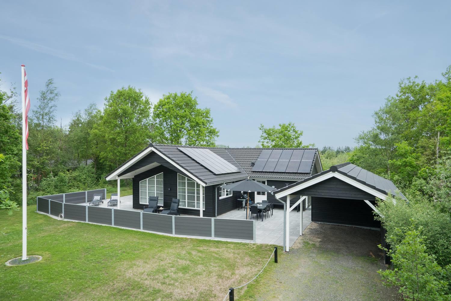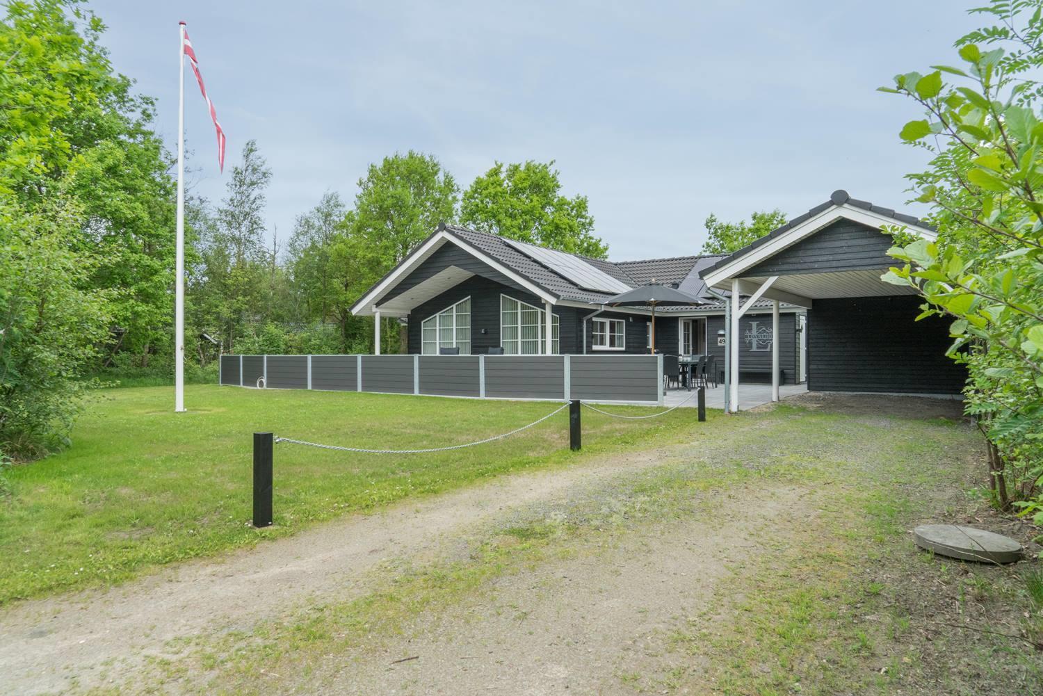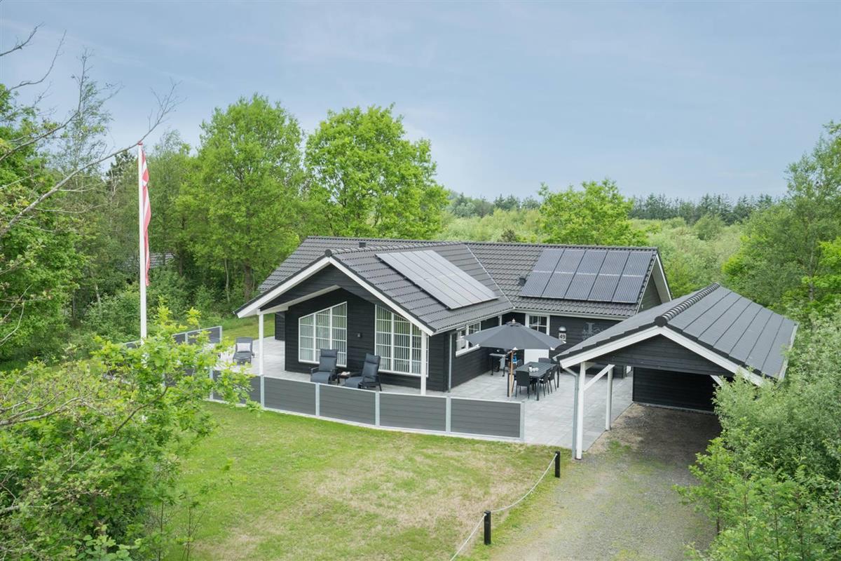 Auf der großen und teilweise überdachten Terrasse kann man die frische Luft genießen. Es gibt ein Carport und im Schuppen hat man Platz für z.B. Fahrräder. Der Kamin wird ausschließlich mit Briketts beheizt. Diese sind im Haus und können dort direkt gekauft werden. Das Haus liegt dicht an SeaWest mit einem Badeland. Herzlich willkommen auf Vestervang 49.