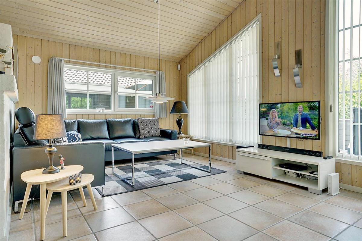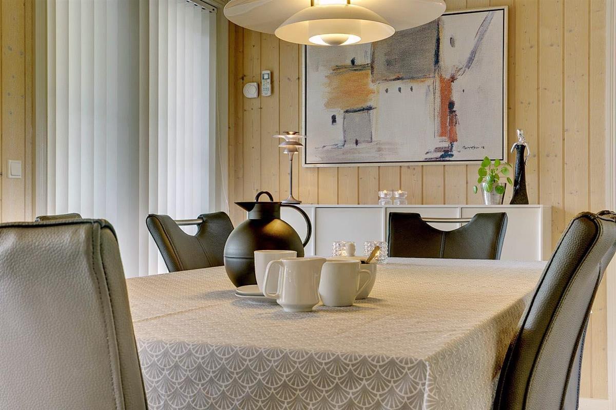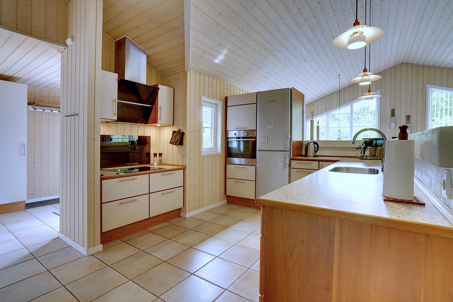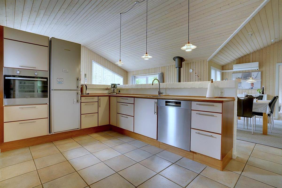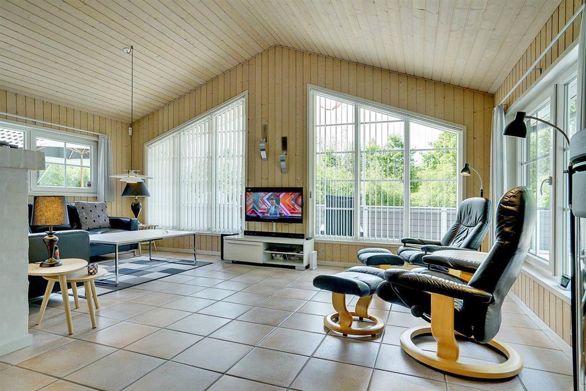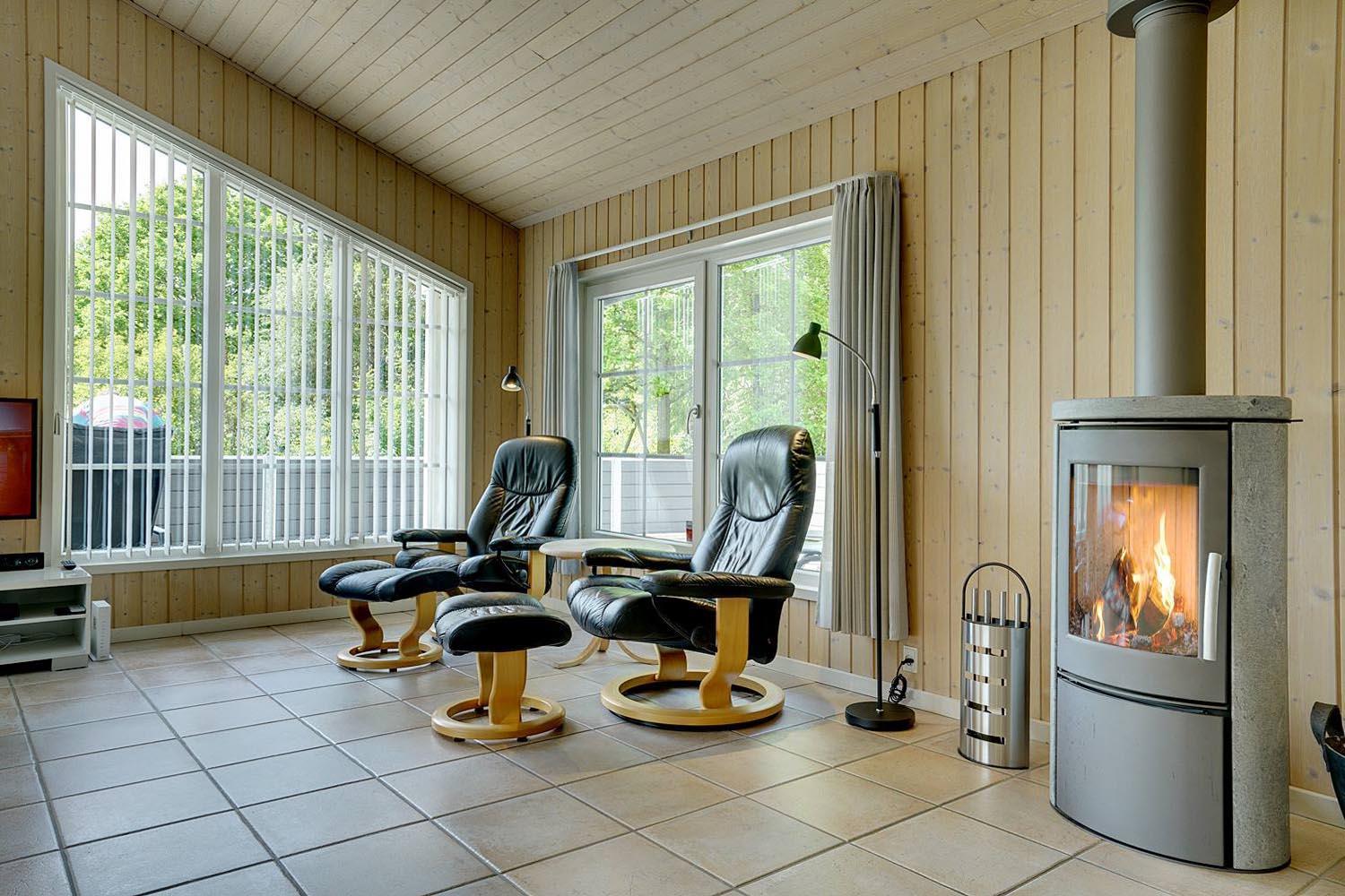 Dies ist ein Ferienhaus in hoher Qualität. Die Einrichtung ist stillvoll, hell und freundlich. Mittelpunkt ist der große Aufenthaltsraum mit dem Essbereich, der mit der Küche verbunden ist. Diese ist ausgestattet mit einem Gefrierschrank, einem Geschirrspüler und einer Microwelle. Das Haus hat 2 Schlafzimmer mit einem Doppelbet und 1 mit Doppelt Schlafcouch - und Büro Es gibt zwei Badezimmer mit Fußbodenheizung. Eins davon mit Whirlpool und Sauna. Die Waschmaschine und der Trockner befinden sich in einem extra Raum der von außen zu erreichen ist.