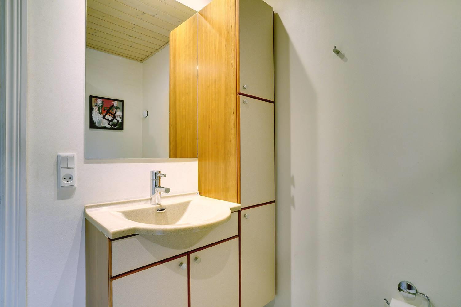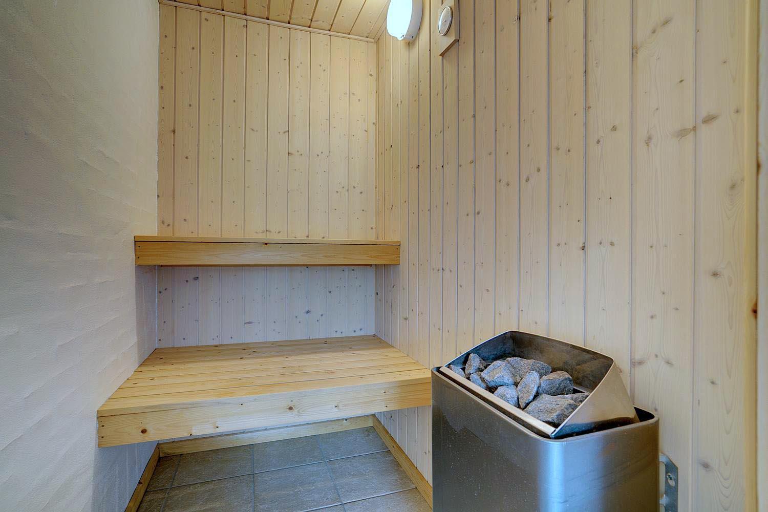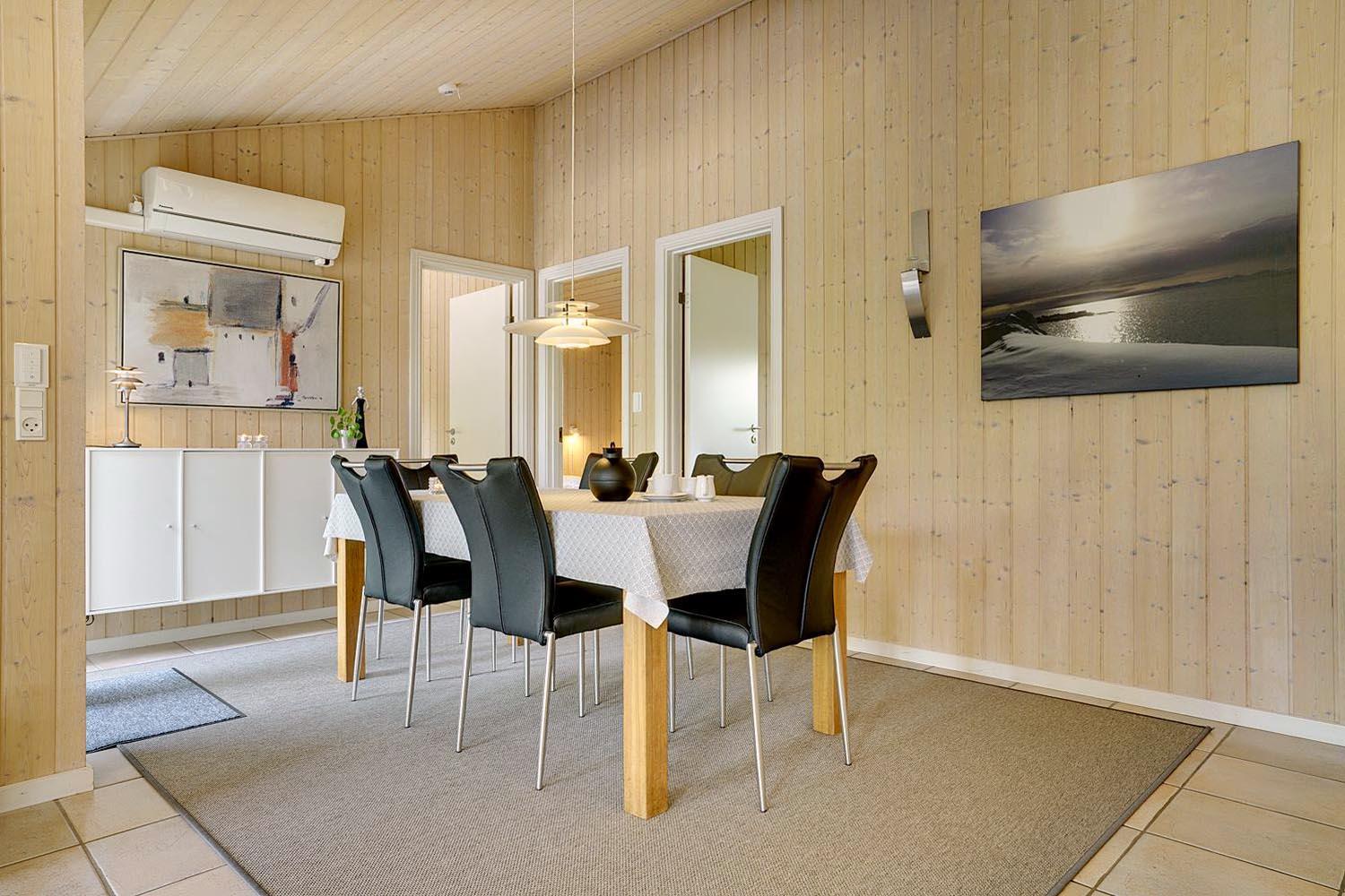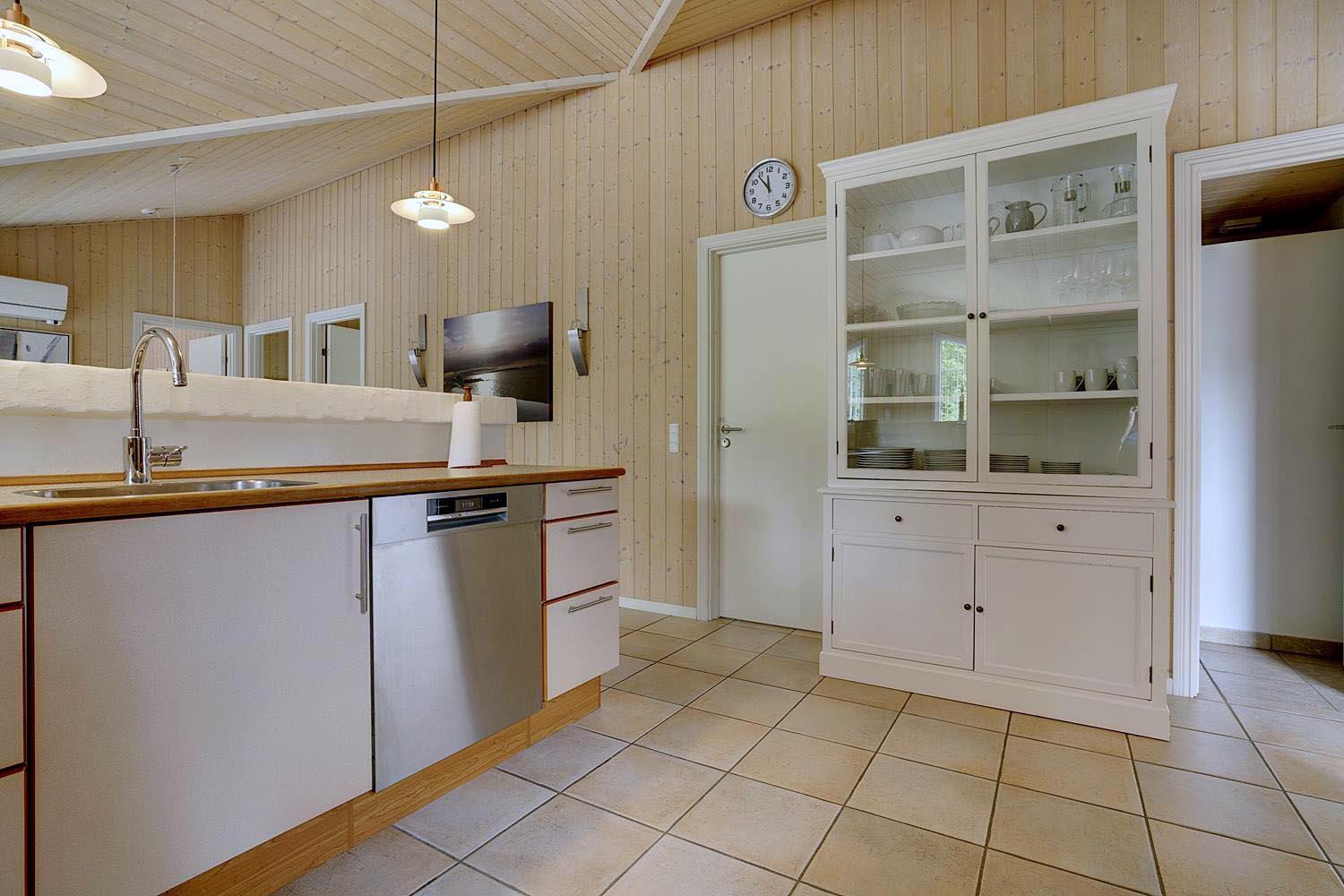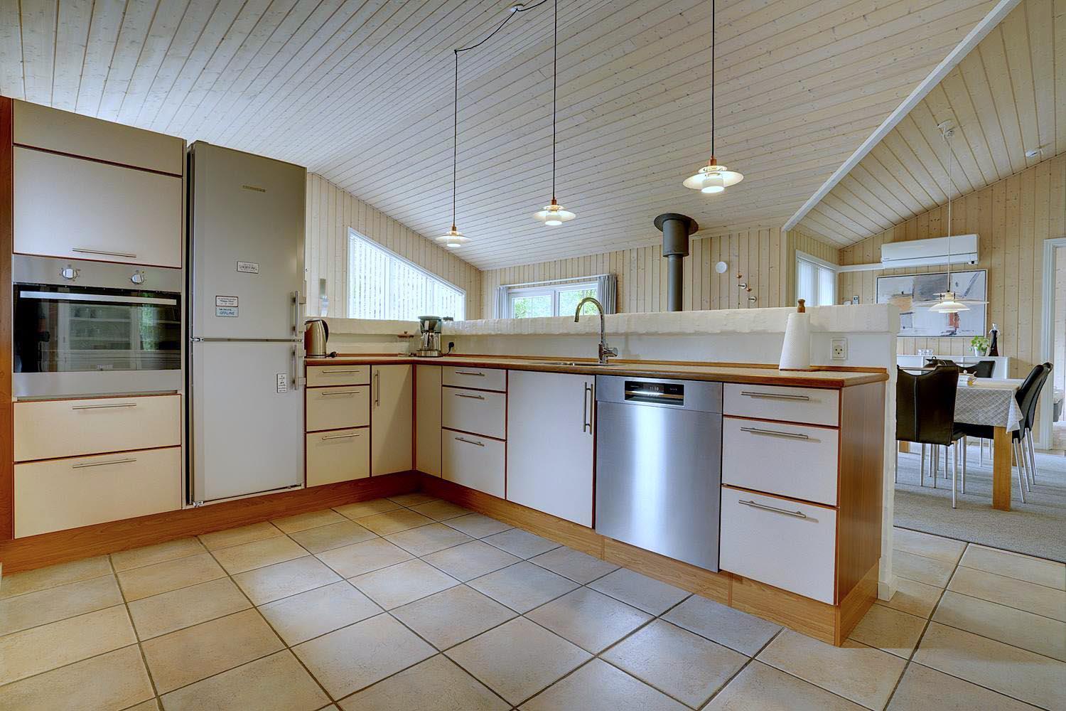Dies ist ein Ferienhaus in hoher Qualität. Die Einrichtung ist stillvoll, hell und freundlich. Mittelpunkt ist der große Aufenthaltsraum mit dem Essbereich, der mit der Küche verbunden ist. Diese ist ausgestattet mit einem Gefrierschrank, einem Geschirrspüler und einer Microwelle. Das Haus hat 2 Schlafzimmer mit einem Doppelbet und 1 mit Doppelt Schlafcouch - und Büro Es gibt zwei Badezimmer mit Fußbodenheizung. Eins davon mit Whirlpool und Sauna. Die Waschmaschine und der Trockner befinden sich in einem extra Raum der von außen zu erreichen ist.