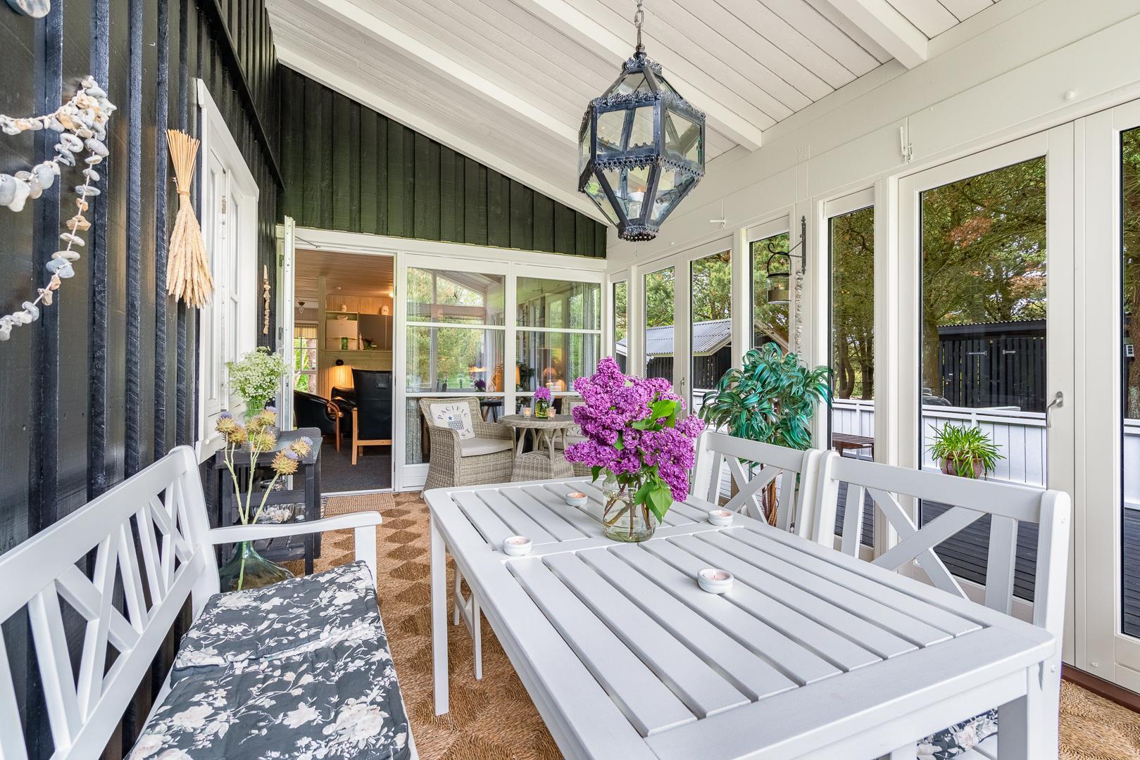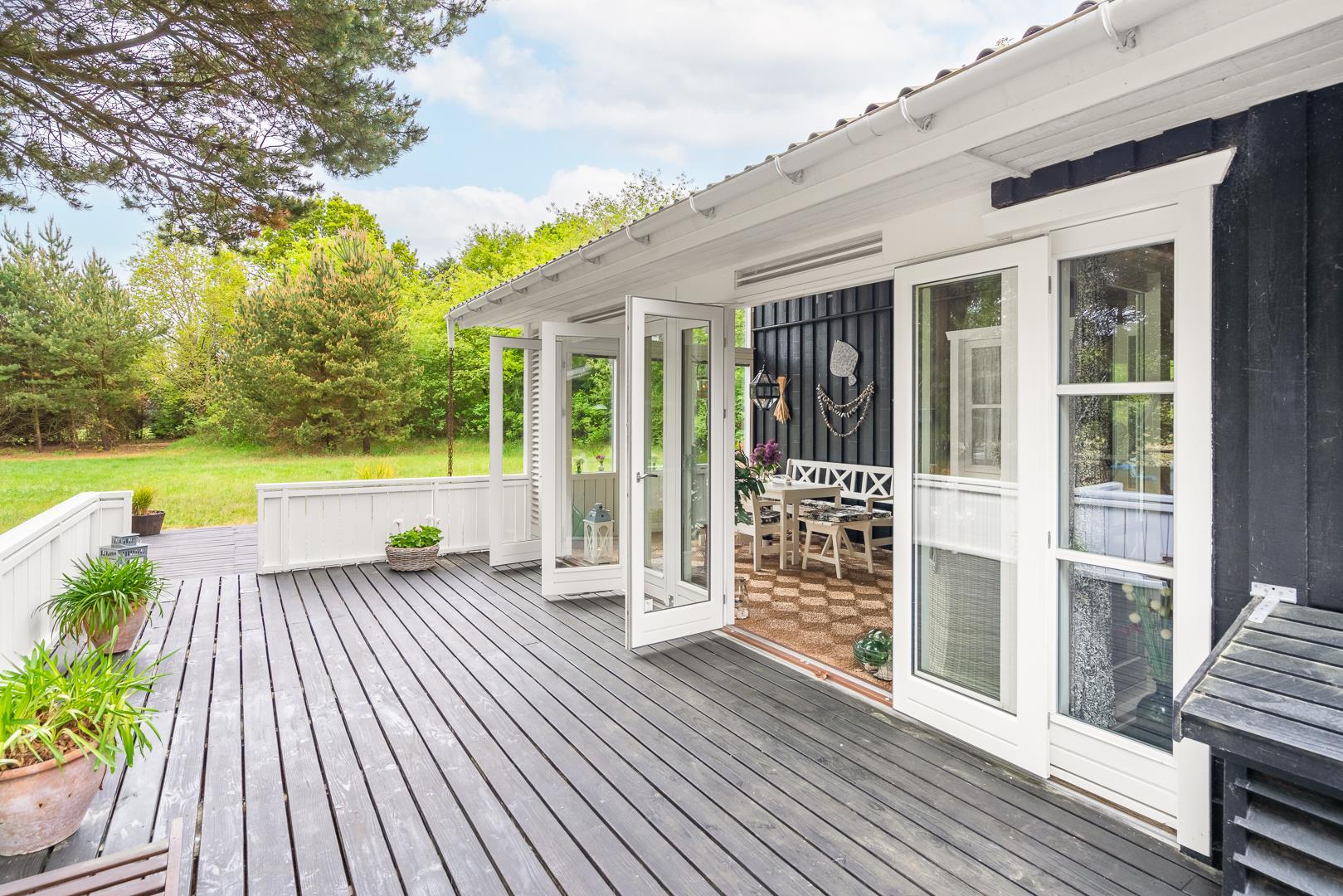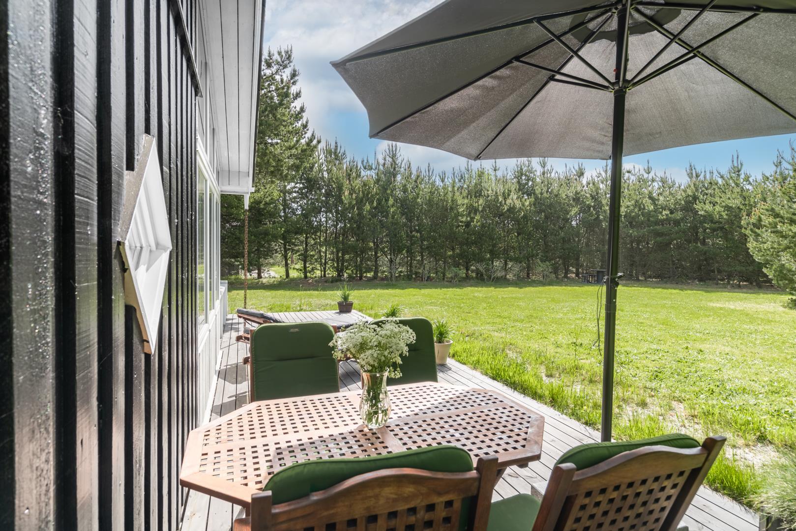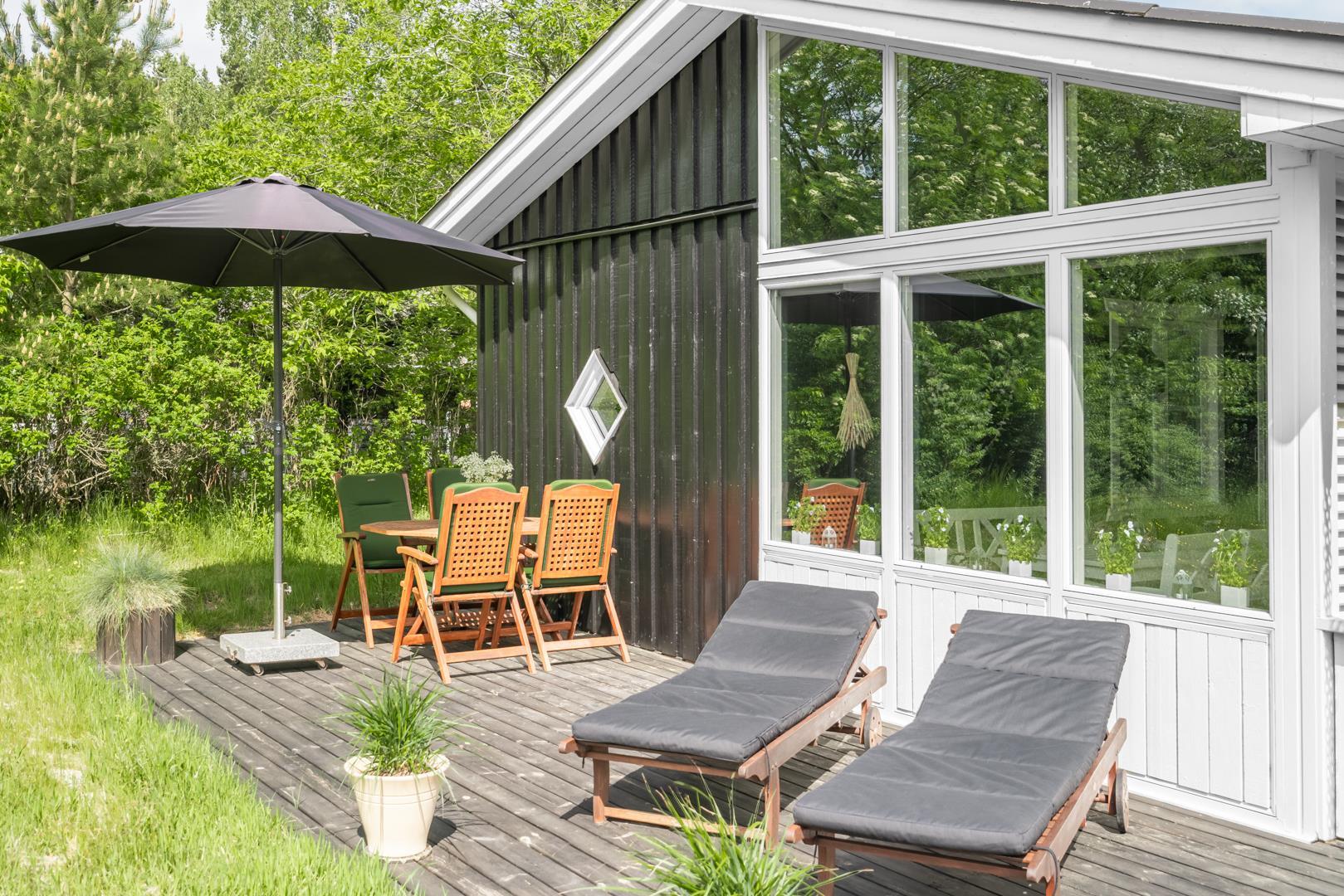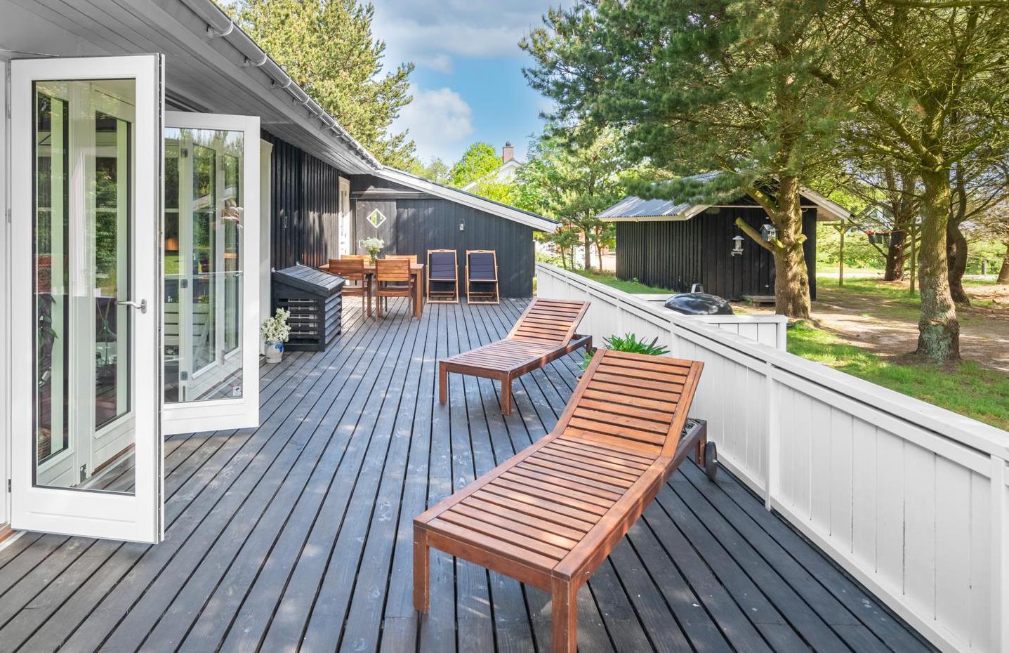 Außerdem gibt es eine kleine Holzterrasse mit guten Gartenmöbeln auf der Westseite des Hauses.