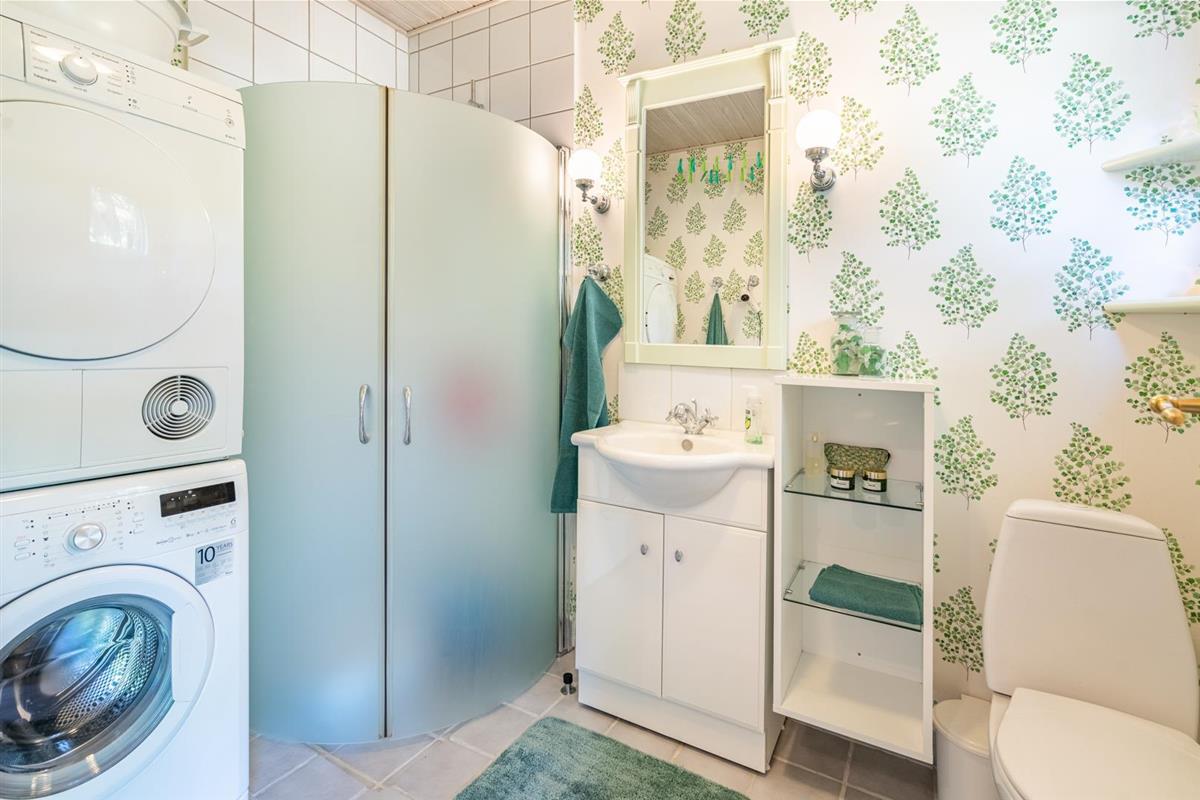 2 schöne Badezimmer mit Fußbodenheizung. In einem Badezimmer gibt es eine Waschmaschine und einen Trockner, damit Sie während der Ferien auch waschen und Platz im Auto sparen können.