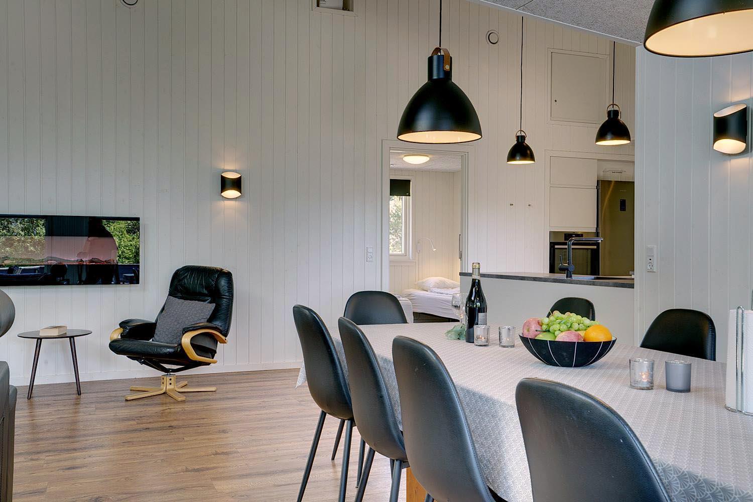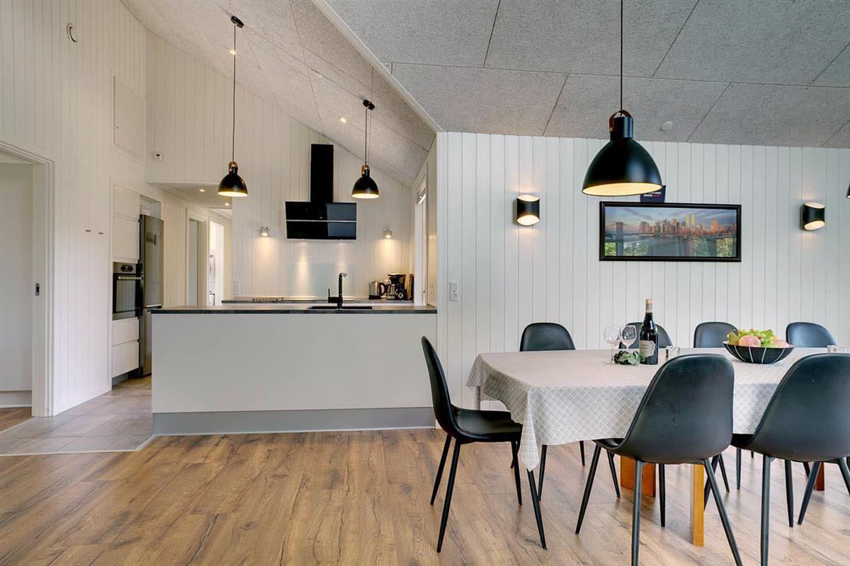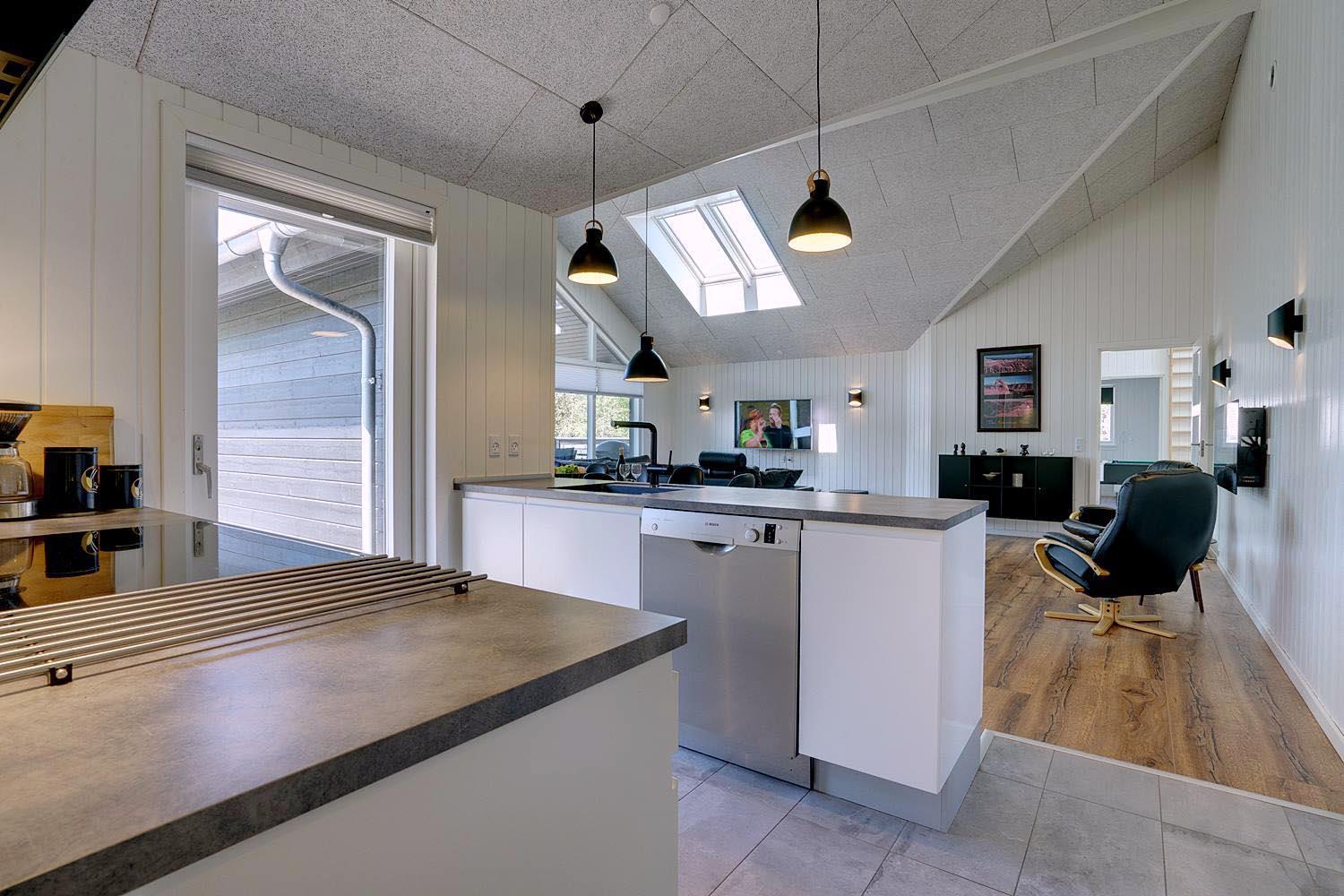 Die offen gestaltete Küche ist funktional und gut ausgestattet, sodass gemeinsames Kochen richtig Spaß macht. Dank Spülmaschine bleibt mehr Zeit für das wesentliche: Den Urlaub in Dänemark zu genießen.