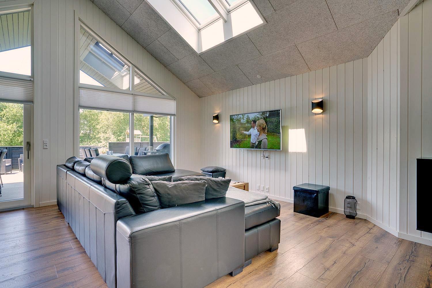 Der helle Wohnbereich lädt zu gemütlichen Abenden ein – ob mit einem Film auf einem der 2 Fernseher, einem Spieleabend oder einfach bei guten Gesprächen.