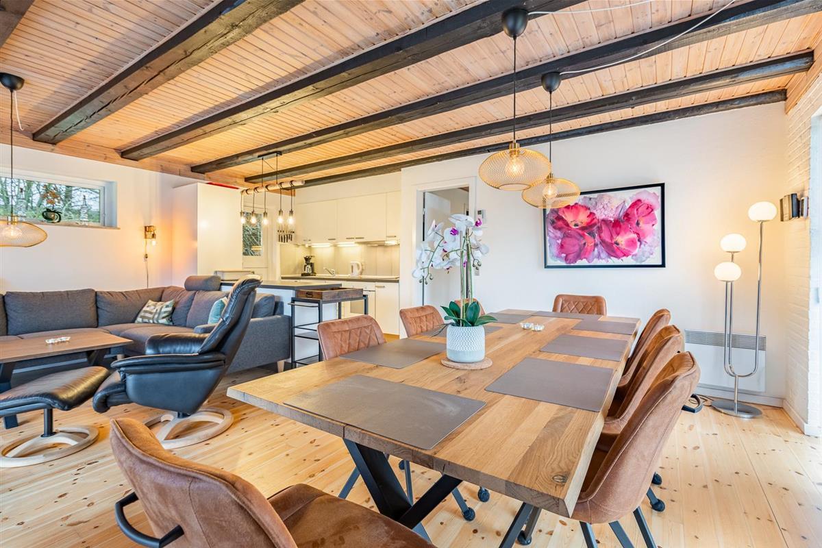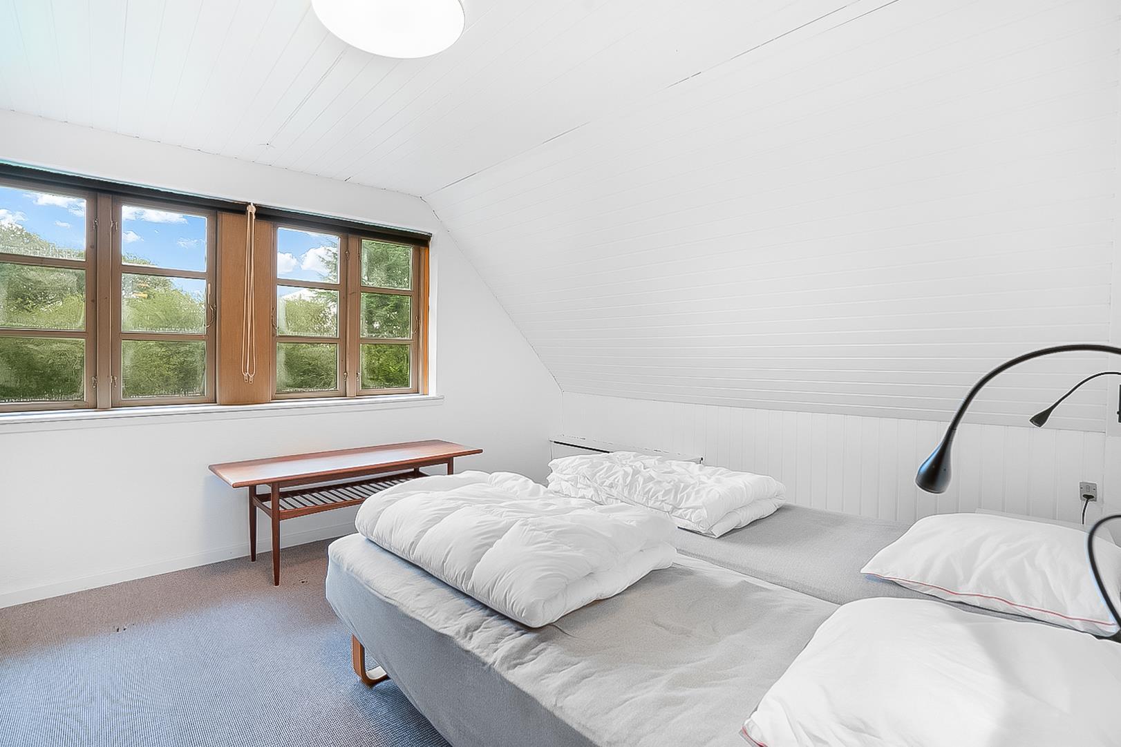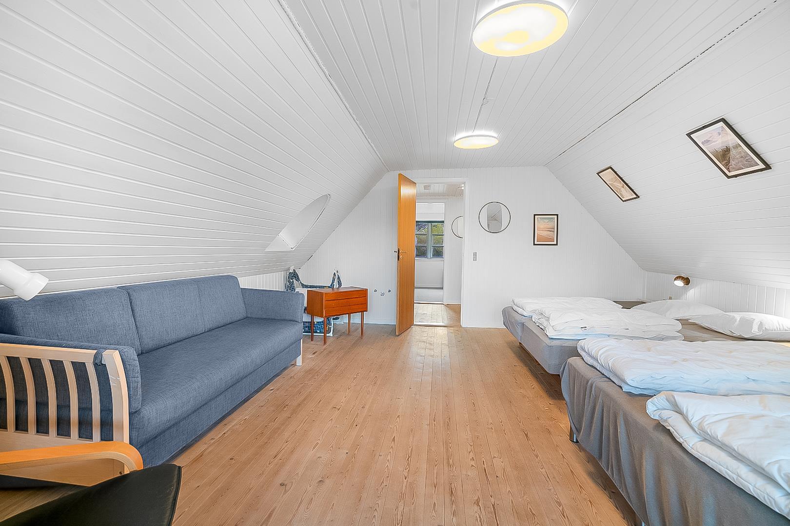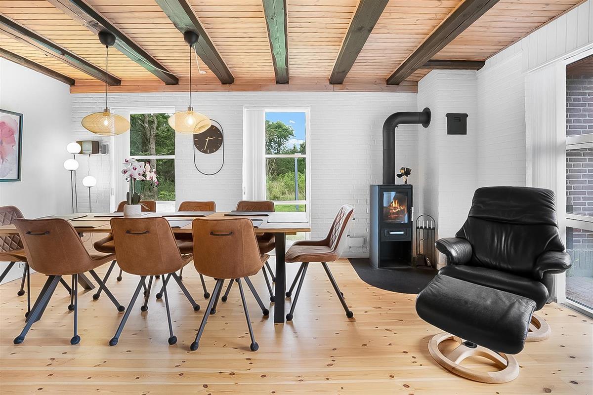 Großes und geräumiges Haus auf 2 Ebenen im Engvejen 1 in Houstrup. Mit seinen 123 m2 gibt es Platz für eine große Familie. 2024 gibt es 2 neue komfortable Badezimmer. Im Erdgeschoss befindet sich 1 Schlafzimmer mit Doppelbett. Im 1. Stock finden sich 2 Schlafzimmer - eines mit 2 Doppelbetten und 1 Schlafzimmer mit 1 Doppelbett und 1 Bett. Neuere Küche mit Geschirrspüler, separatem Gefrierschrank und Mikrowelle. Wohnzimmer mit Kaminofen und Wärmepumpe und Zugang zum großen Naturgrundstück von 2.100 m2.