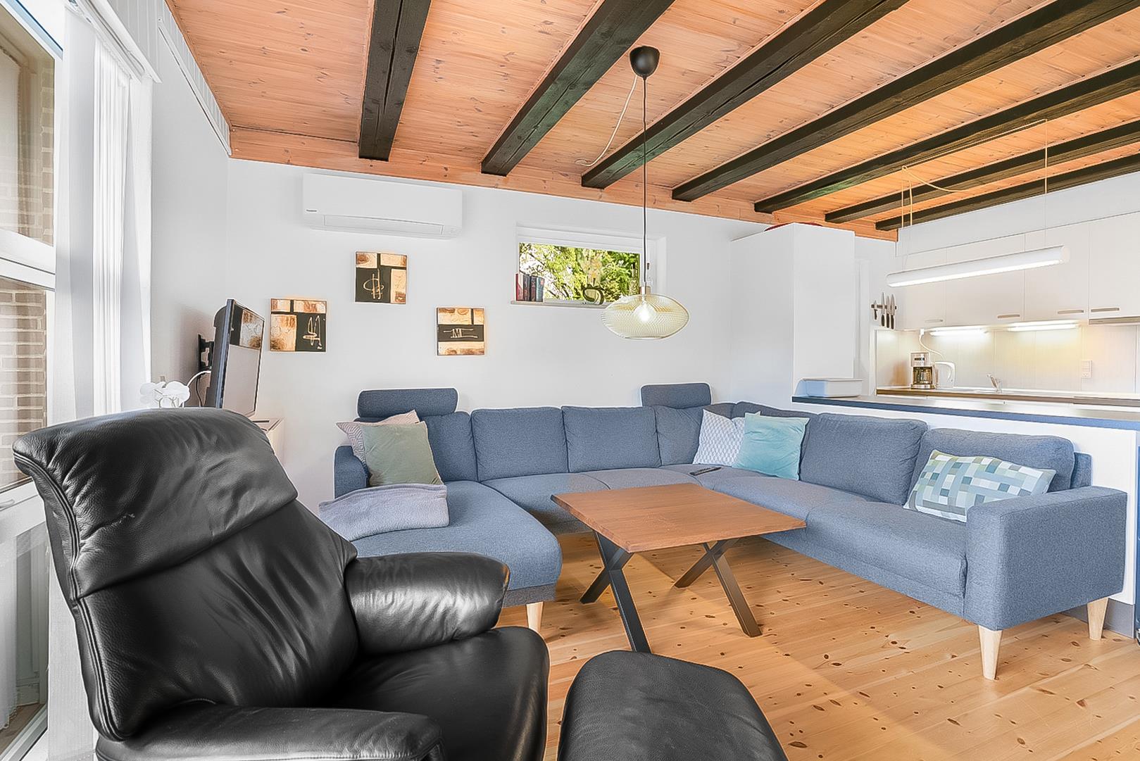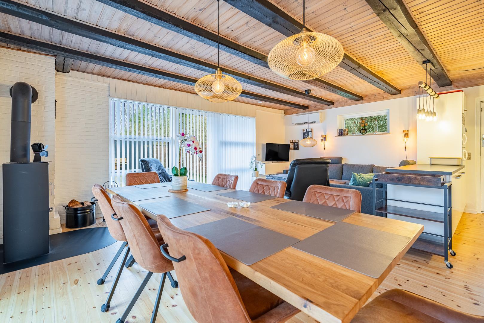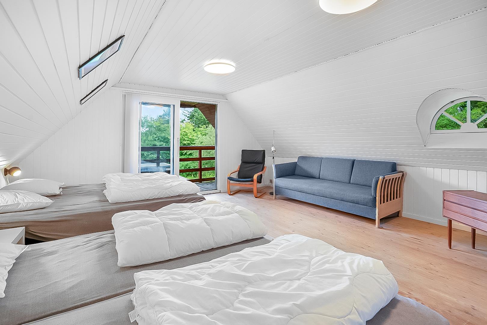 Großes und geräumiges Haus auf 2 Ebenen im Engvejen 1 in Houstrup. Mit seinen 123 m2 gibt es Platz für eine große Familie. 2024 gibt es 2 neue komfortable Badezimmer. Im Erdgeschoss befindet sich 1 Schlafzimmer mit Doppelbett. Im 1. Stock finden sich 2 Schlafzimmer - eines mit 2 Doppelbetten und 1 Schlafzimmer mit 1 Doppelbett und 1 Bett. Neuere Küche mit Geschirrspüler, separatem Gefrierschrank und Mikrowelle. Wohnzimmer mit Kaminofen und Wärmepumpe und Zugang zum großen Naturgrundstück von 2.100 m2.