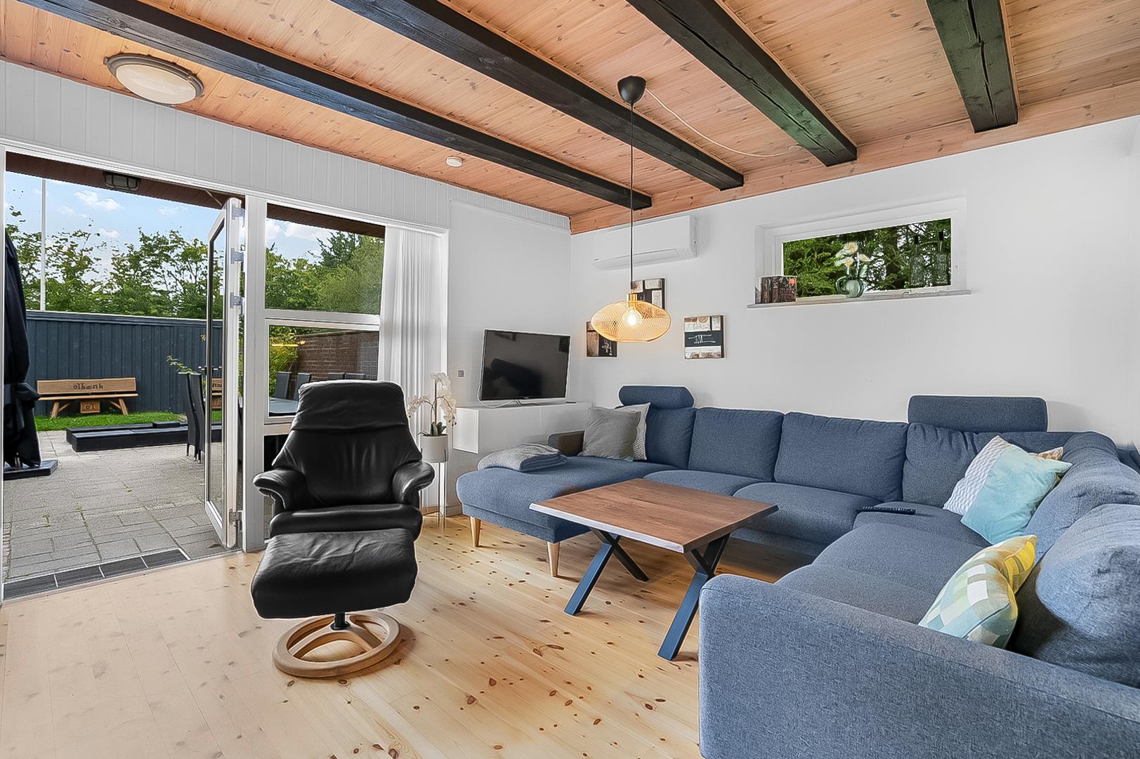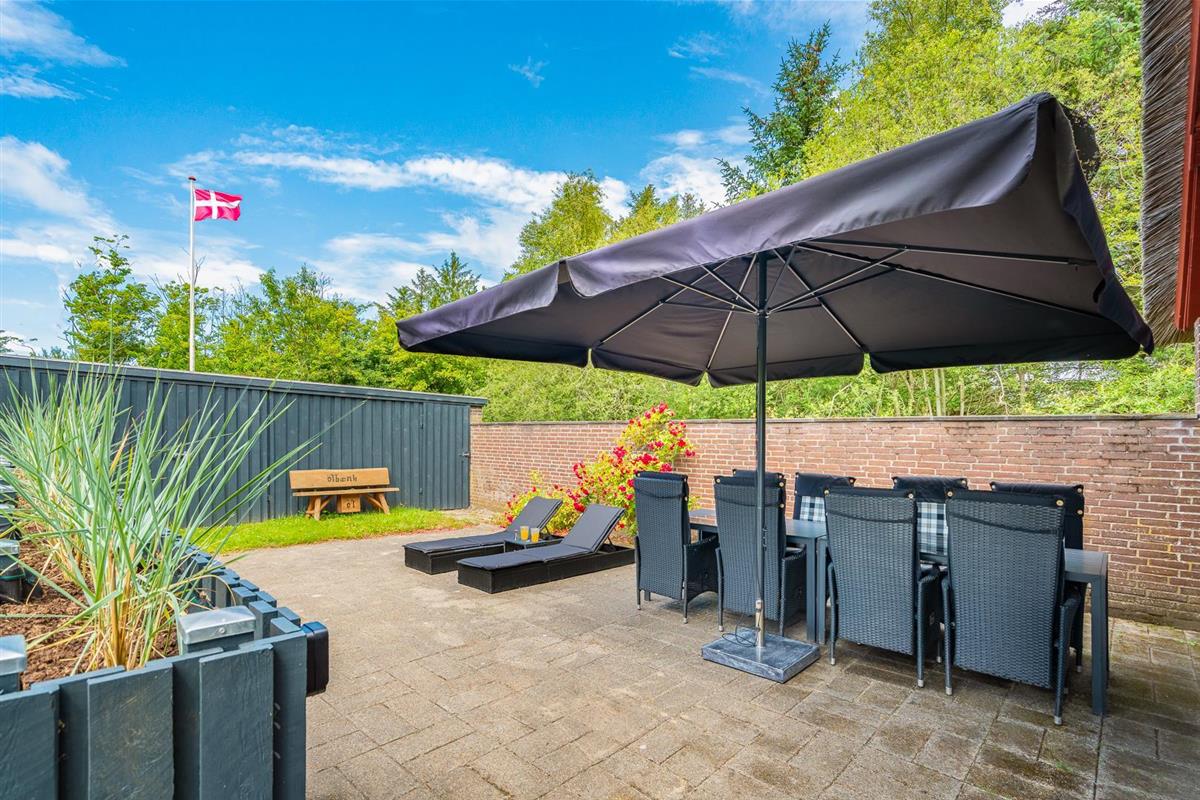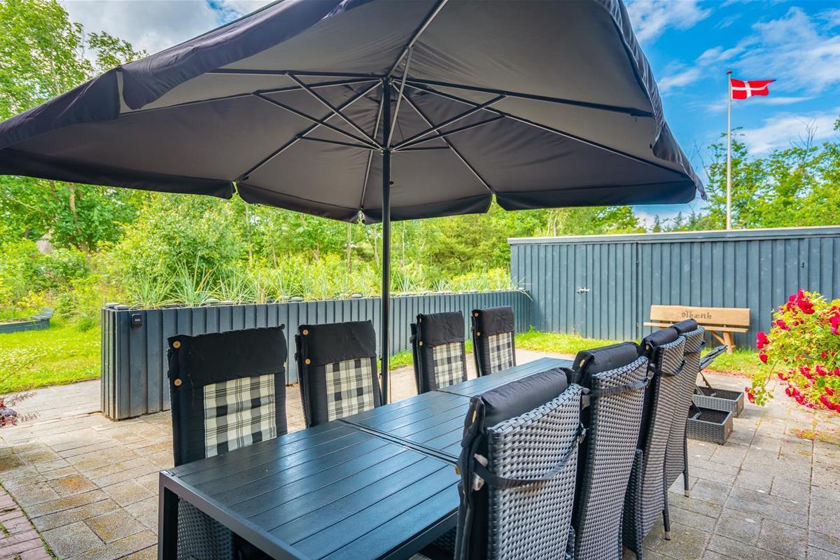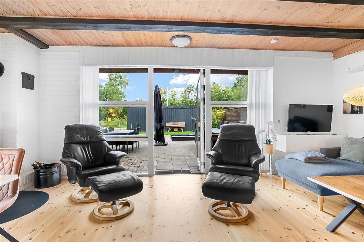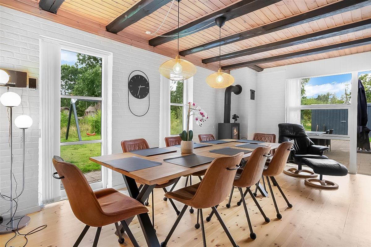 Das Grundstück ist eingezäunt, was sowohl dem Hund als auch den Kleinsten zugute kommt. Große Terrasse mit kleinerer Überdachung. Hier können Sie viele Stunden genießen, wenn das Wetter es zulässt. Schuppen verfügbar, wenn Sie ihn brauchen. Das Haus befindet sich mitten im alten Houstrup und in der Nähe des Waldes, der zu Spaziergängen und Naturerlebnissen einlädt.