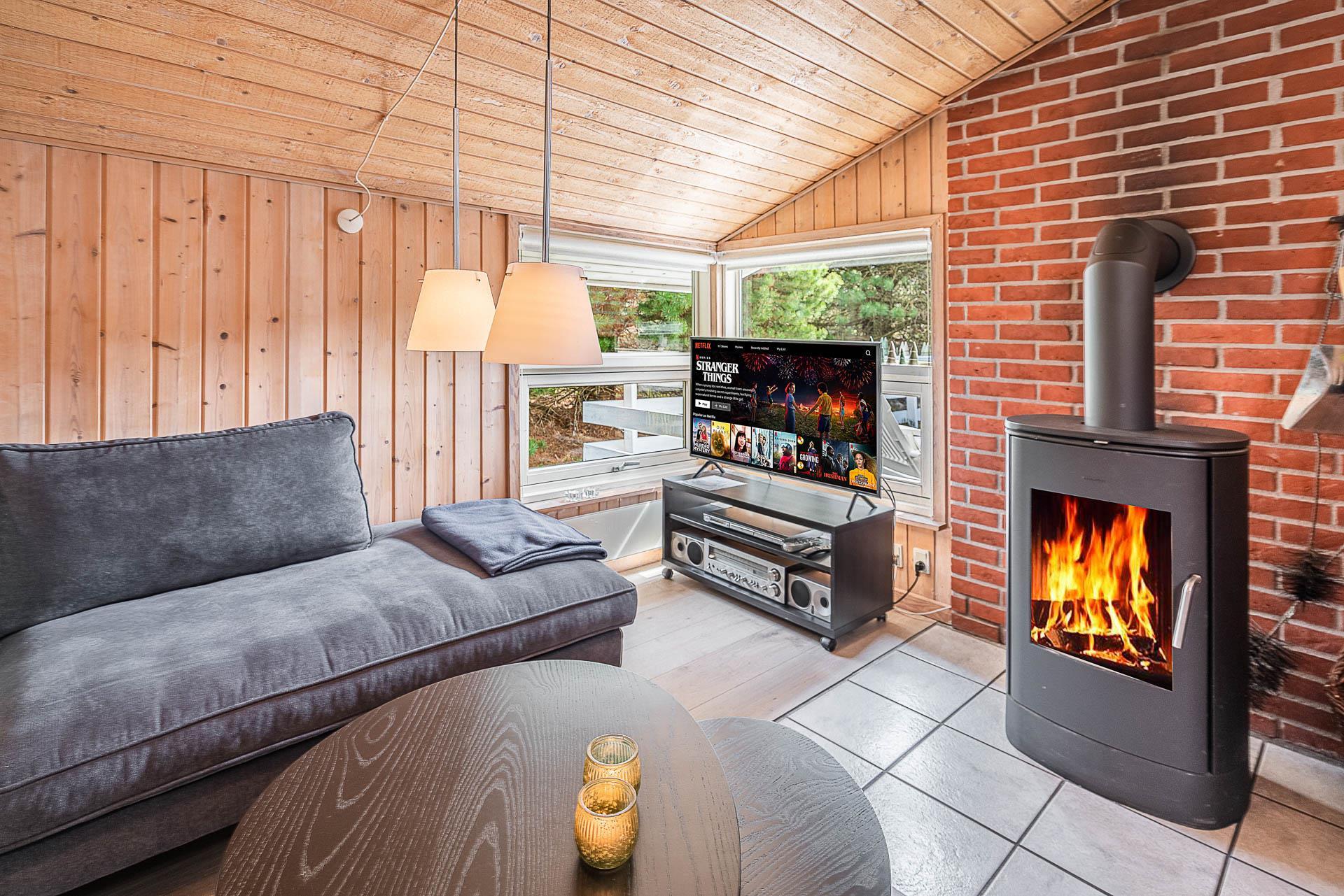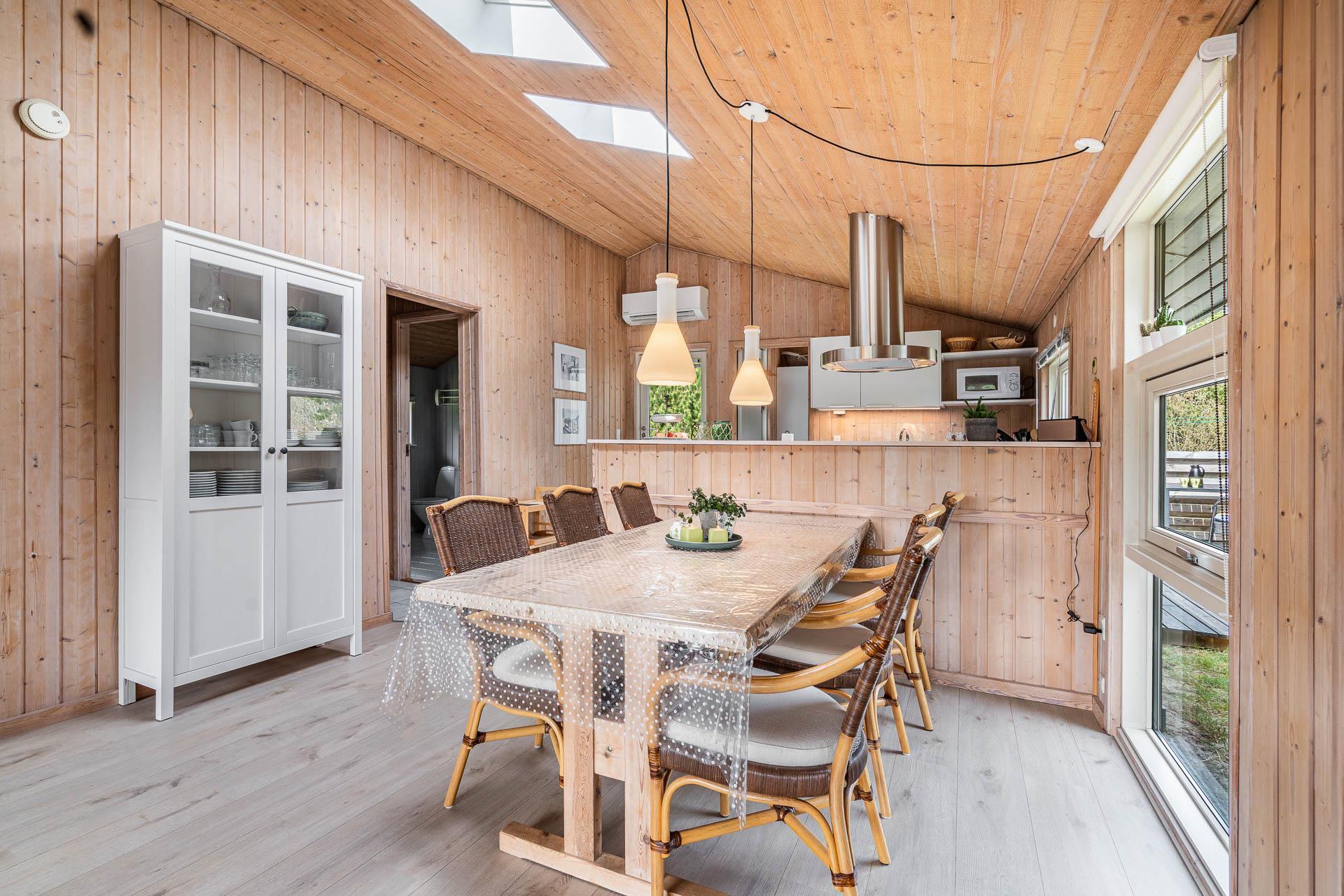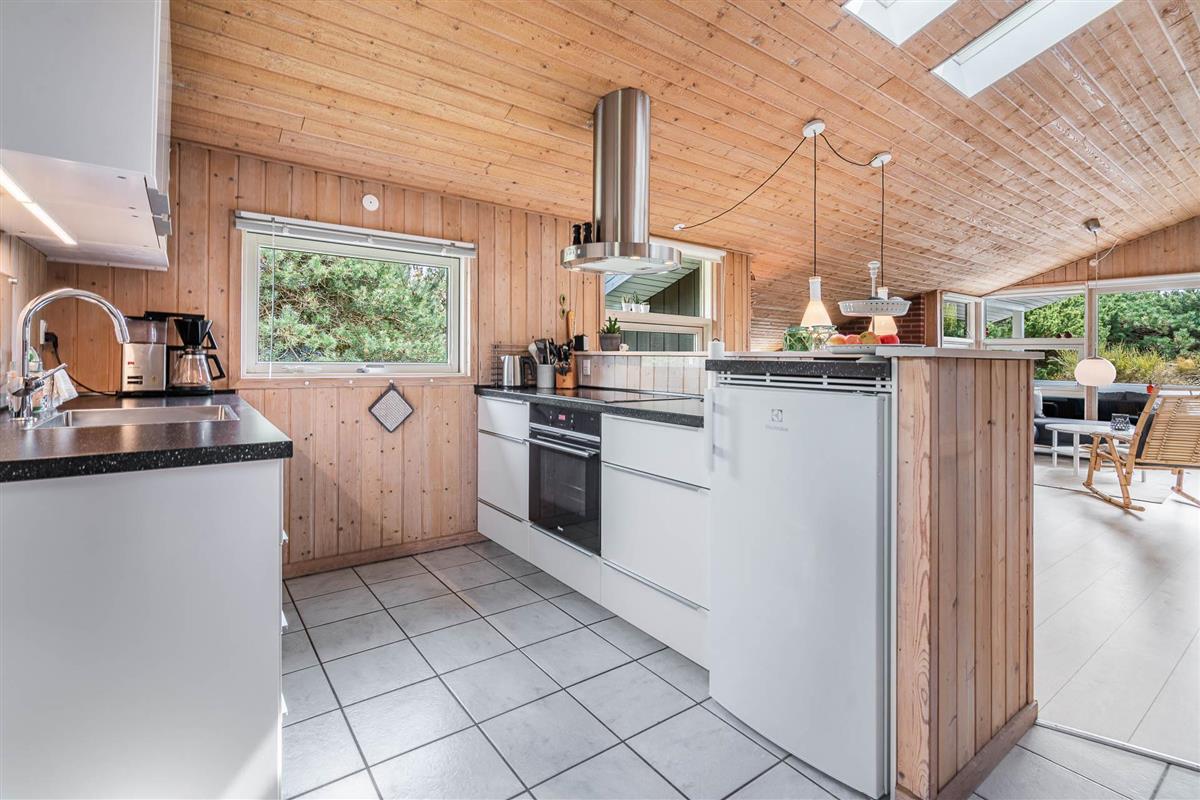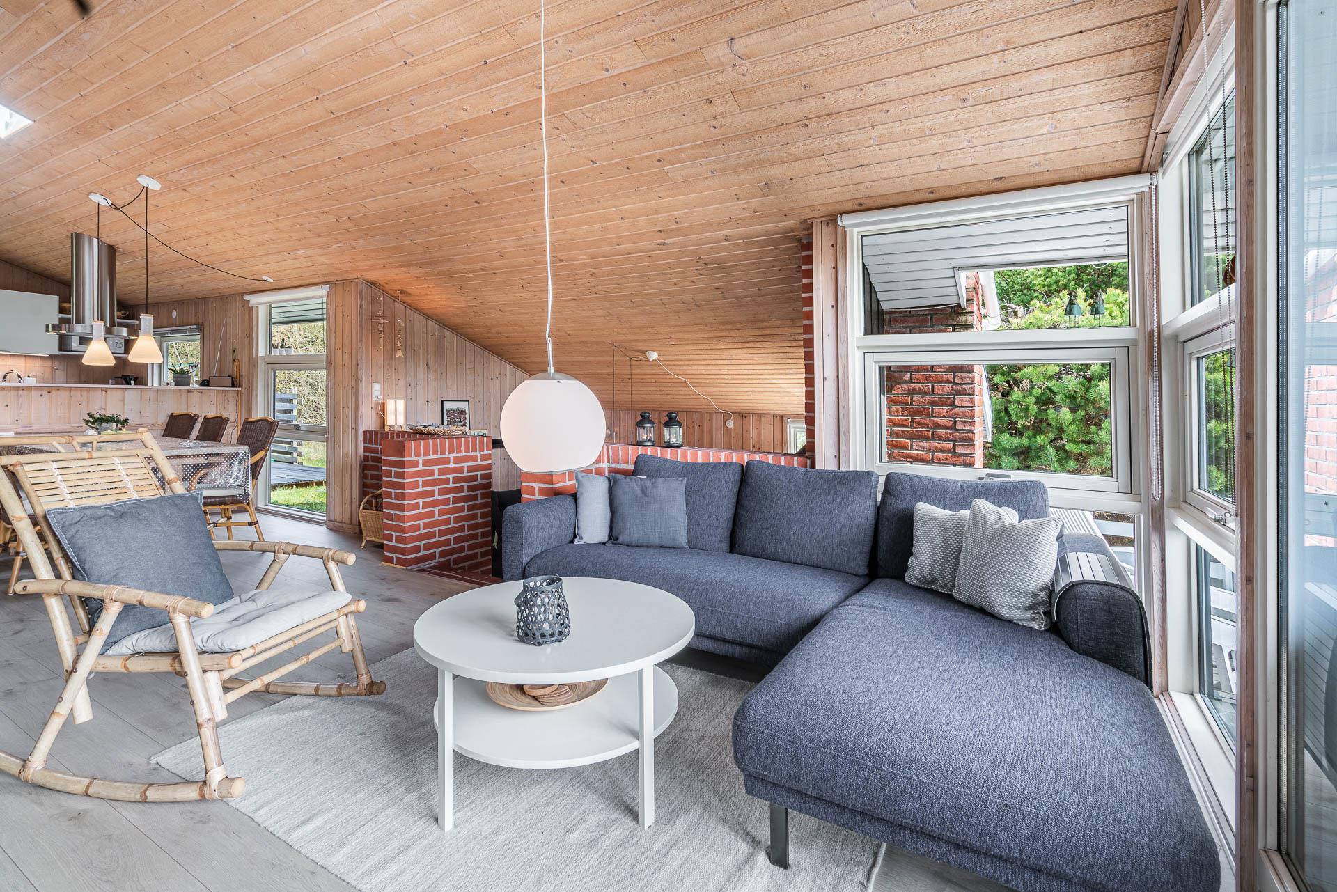 Möchten Sie auf einem ungestörten Grundstück wohnen, in einem Haus, das komplett von der Straße zurückgezogen ist - und in einer bezaubernden Umgebung? Dann schauen Sie sich dieses Ferienhaus im Søndervang 74 an. Es gibt mehrere Terrassen, teilweise überdacht und mit immer der Möglichkeit, Schutz vor dem Wind und Sonne zu finden. Und die komplett geschlossene Terrasse ist ideal, wenn kleine Kinder oder der Hund dabei sind. Das Haus bietet Platz für 6 Personen, aufgeteilt auf 3 Schlafzimmer, 2 davon mit Doppelbett. Küche von 2018 mit Geschirrspüler und Mikrowelle. Schöner Wohn- und Essbereich mit firsthoher Decke. Tiefer gelegener Fernsehraum, in dem es sich alle gemütlich machen und entspannen können. Sowohl der Kaminofen als auch die Wärmepumpe sind für die kühlen Tage vorhanden. Schön renoviertes Badezimmer aus dem Jahr 2018 mit Fußbodenheizung und Waschmaschine. Der Gefrierschrank ist im Schuppen.