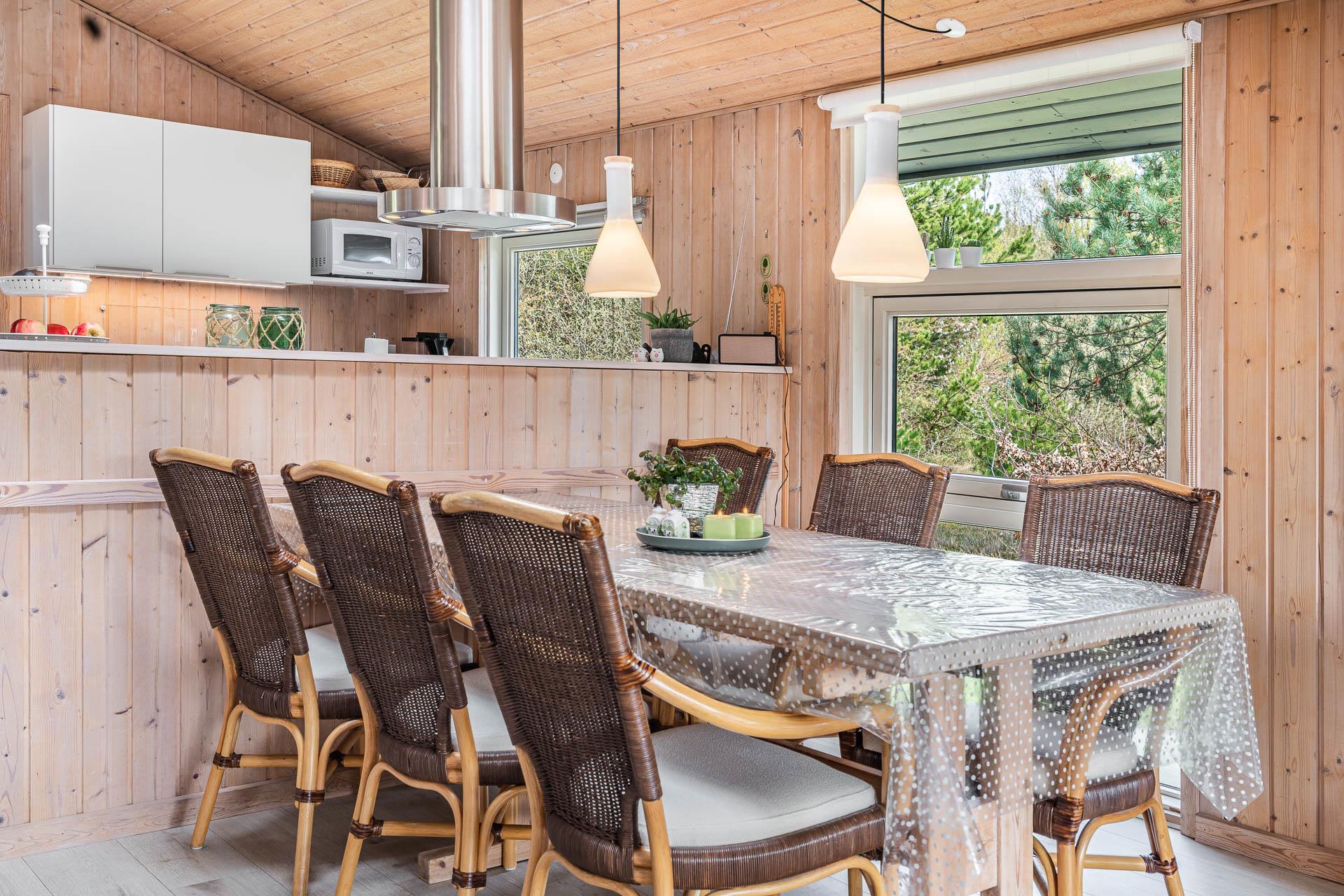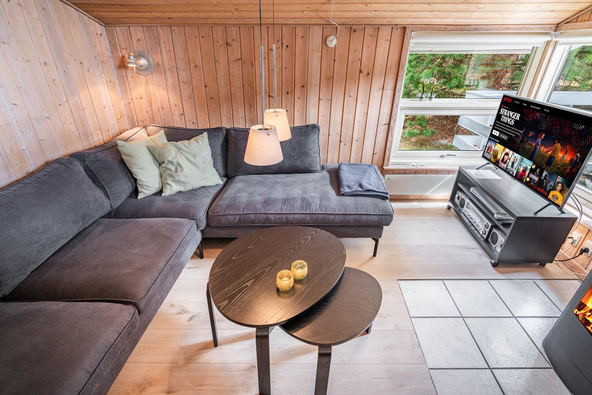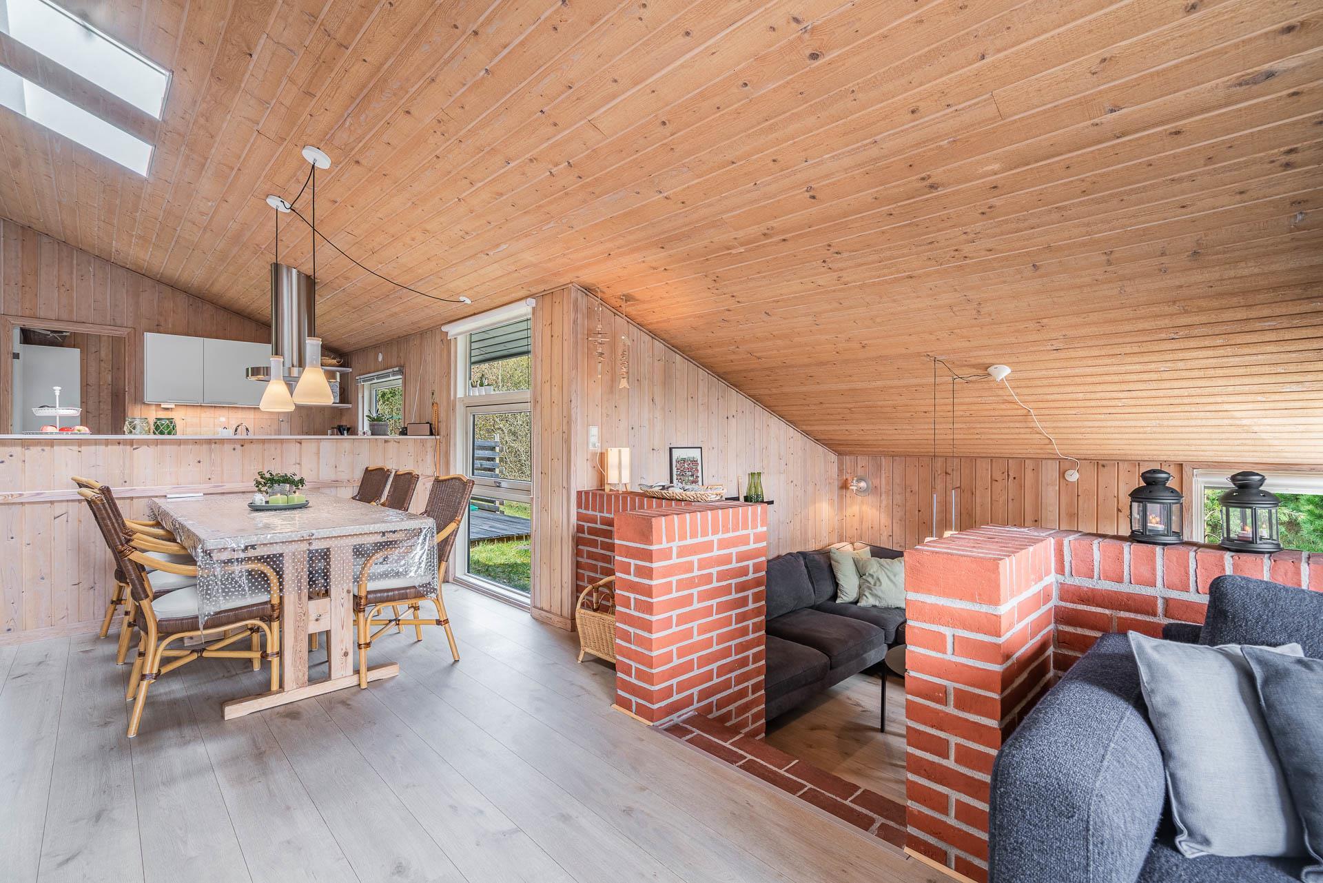 Möchten Sie auf einem ungestörten Grundstück wohnen, in einem Haus, das komplett von der Straße zurückgezogen ist - und in einer bezaubernden Umgebung? Dann schauen Sie sich dieses Ferienhaus im Søndervang 74 an. Es gibt mehrere Terrassen, teilweise überdacht und mit immer der Möglichkeit, Schutz vor dem Wind und Sonne zu finden. Und die komplett geschlossene Terrasse ist ideal, wenn kleine Kinder oder der Hund dabei sind. Das Haus bietet Platz für 6 Personen, aufgeteilt auf 3 Schlafzimmer, 2 davon mit Doppelbett. Küche von 2018 mit Geschirrspüler und Mikrowelle. Schöner Wohn- und Essbereich mit firsthoher Decke. Tiefer gelegener Fernsehraum, in dem es sich alle gemütlich machen und entspannen können. Sowohl der Kaminofen als auch die Wärmepumpe sind für die kühlen Tage vorhanden. Schön renoviertes Badezimmer aus dem Jahr 2018 mit Fußbodenheizung und Waschmaschine. Der Gefrierschrank ist im Schuppen.