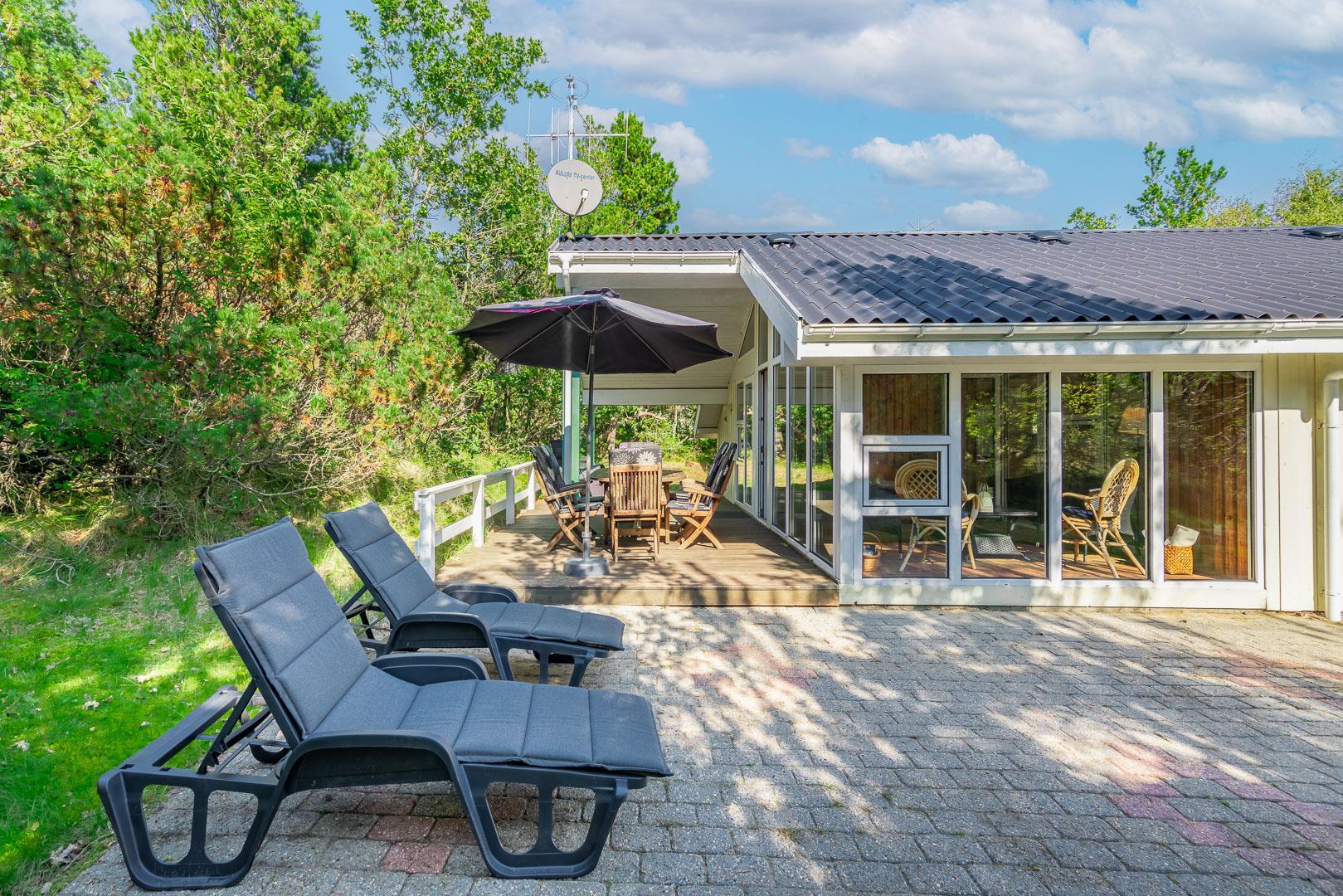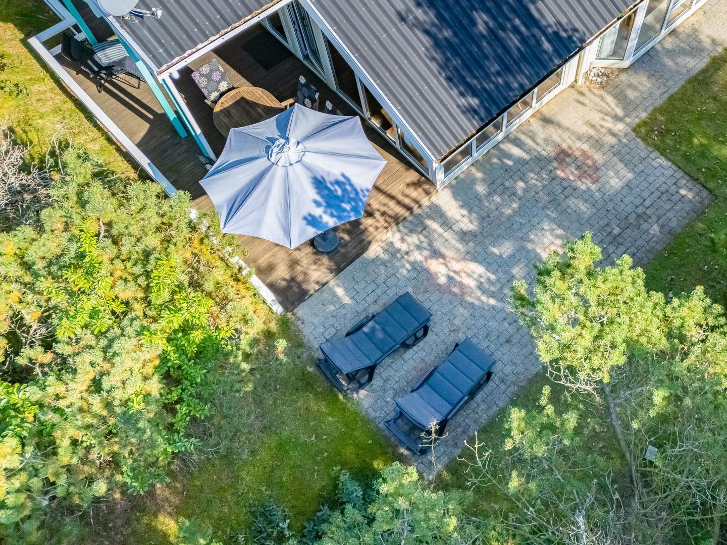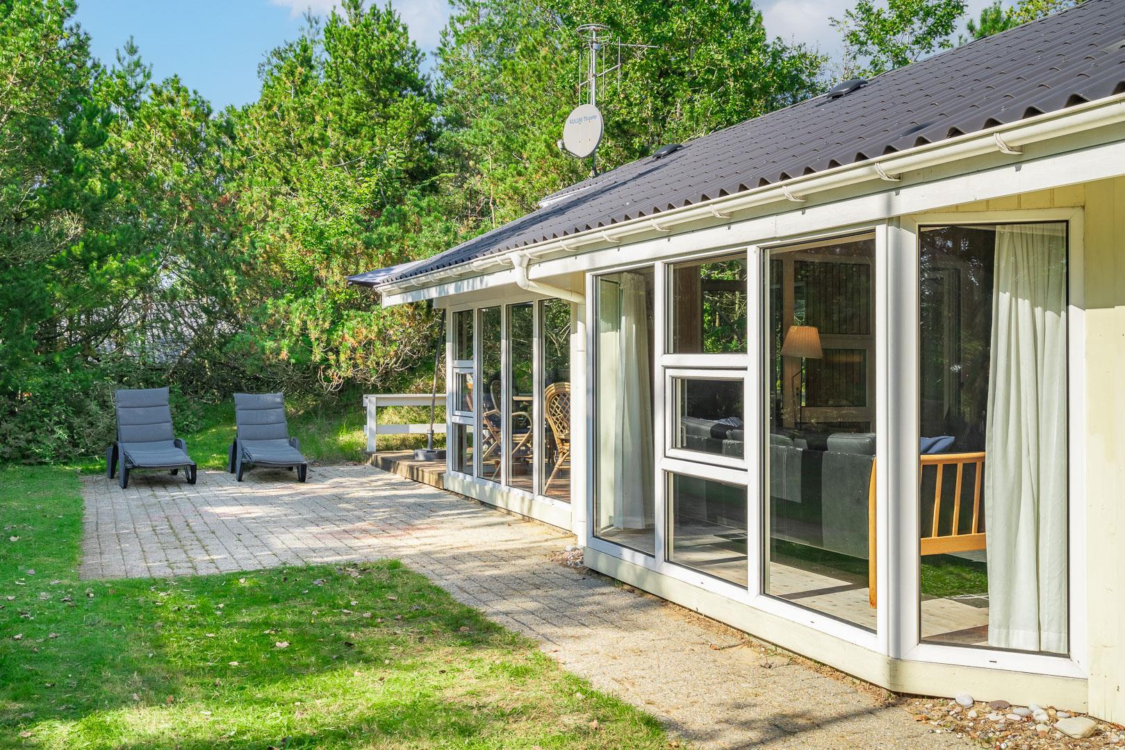 Der Außenbereich lädt dich zum Entspannen und Genießen der Natur ein. Das Ferienhaus liegt auf einem ruhigen Naturgrundstück und bietet dir viel Privatsphäre.