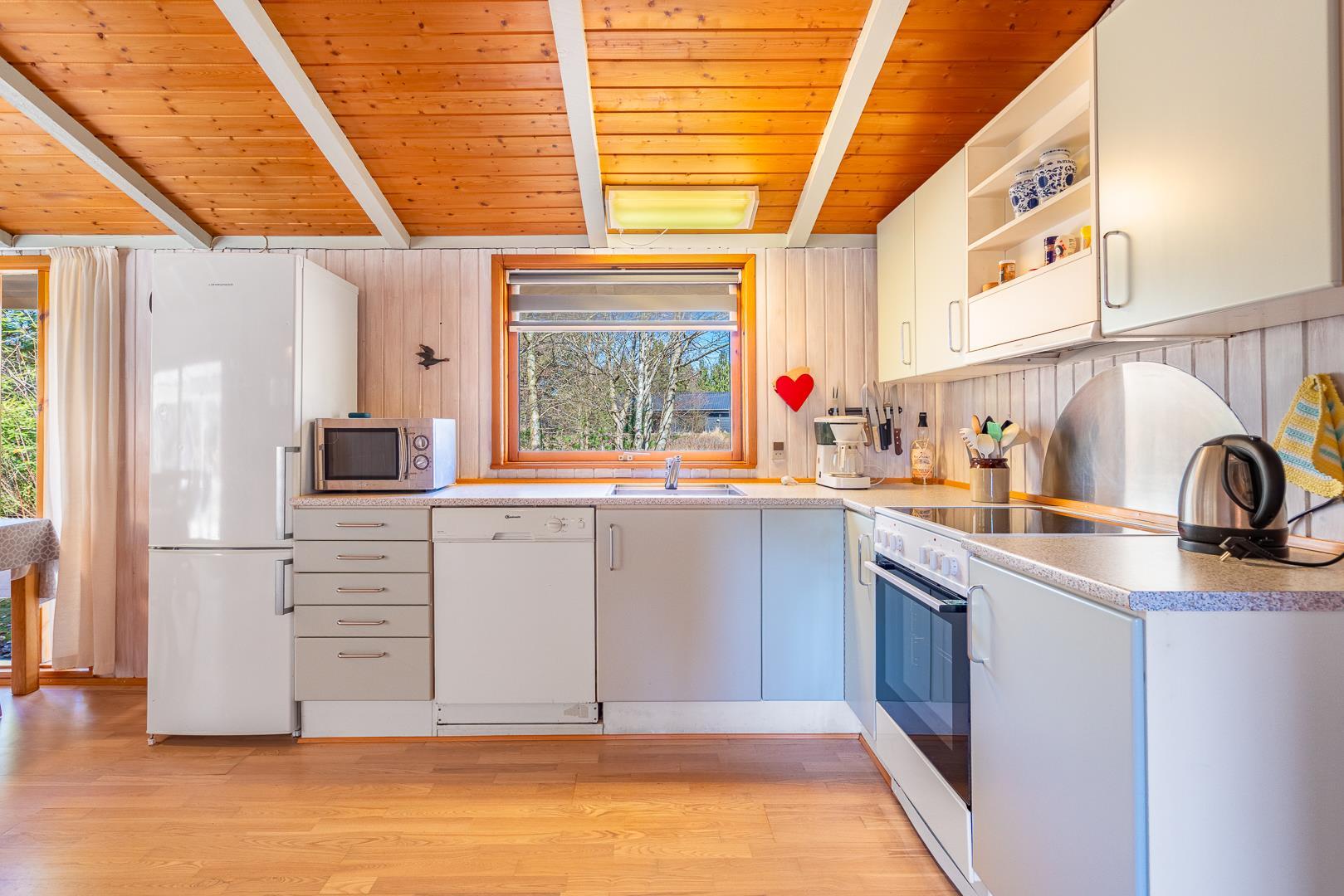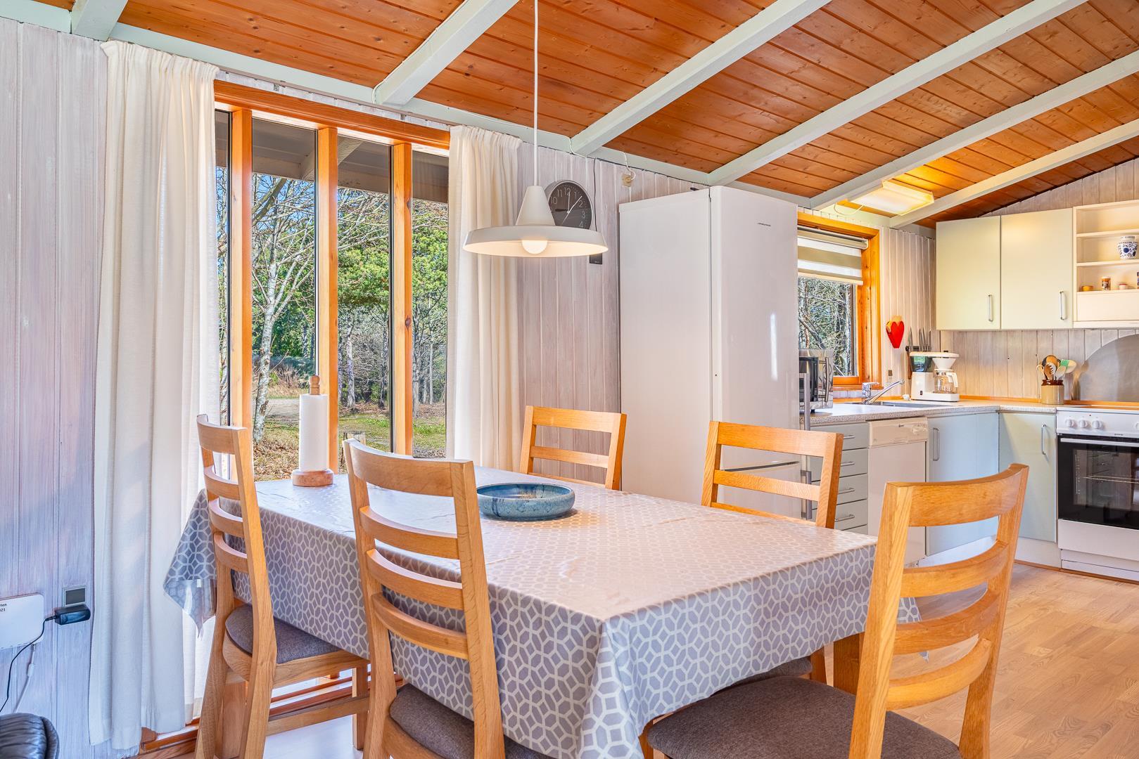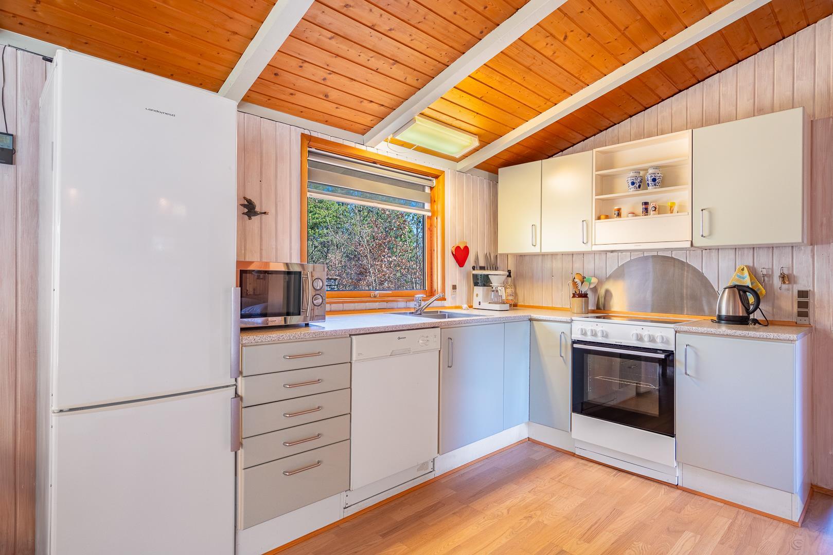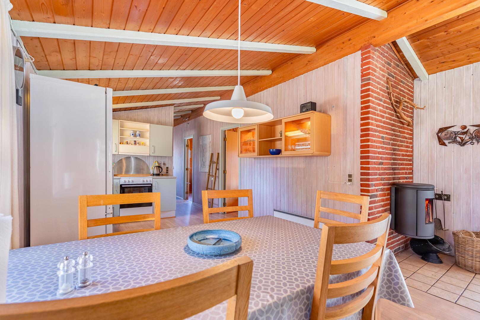 Dieses Ferienhaus befindet sich auf einem von Bäumen umgebenen Grundstück auf Kirkeflod 27 in absoluter Alleinlage. Das Haus ist persönlich eingerichtet und gepflegt. Offene Küche mit Geschirrspüler und Mikrowelle. Im Schuppen befindet sich ein weiterer großer Gefrierschrank. Wohnzimmer mit TV (deutsche und dänische Programmen) und Kamin, der für angenehme Wärme und Gemütlichkeit sorgt. Das Haus bietet Platz für 6 Personen, aufgeteilt in 2 Schlafzimmer. Es gibt ein neues, modernes und geräumiges Badezimmer. Eine Waschmaschine/Trockner ist vorhanden.