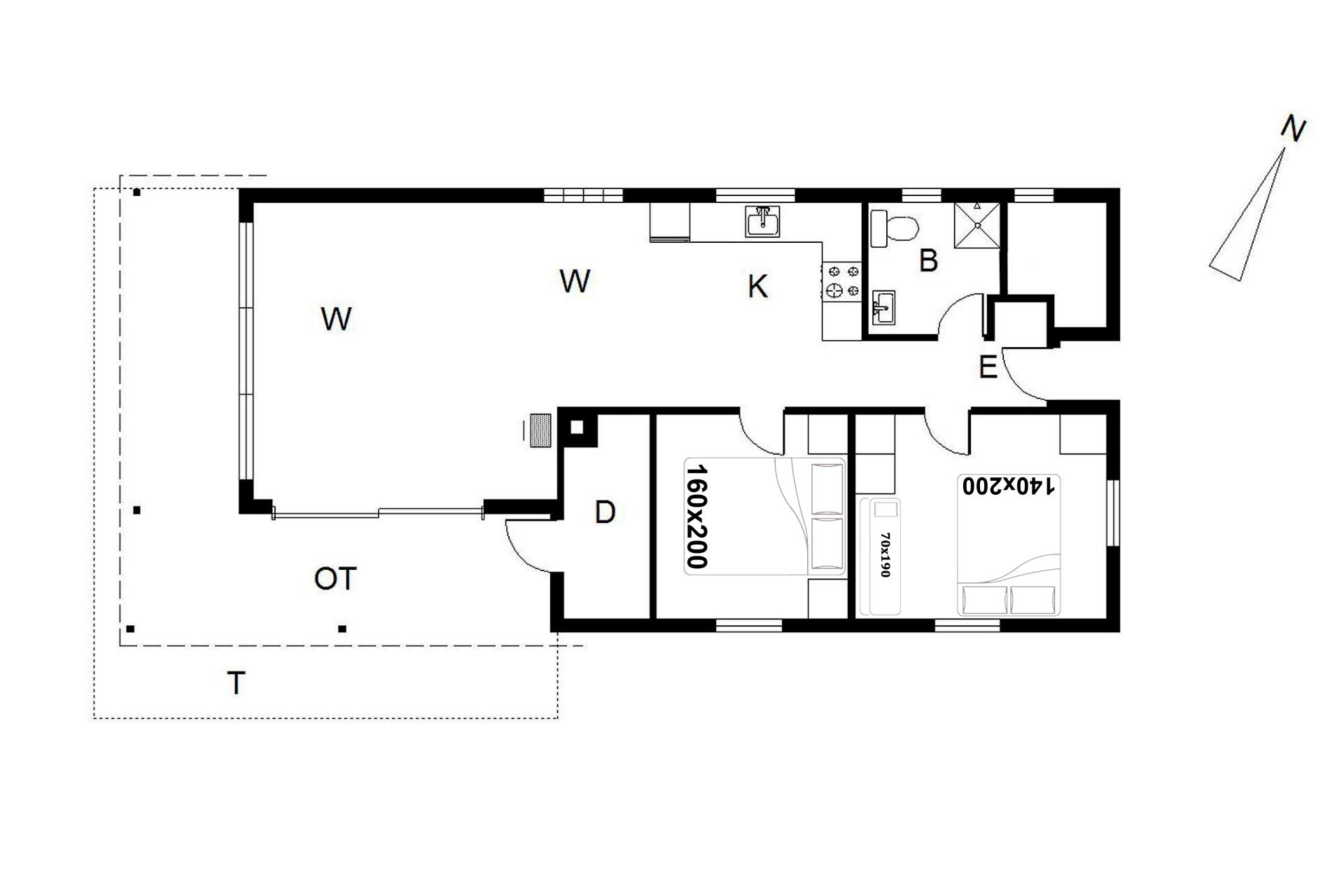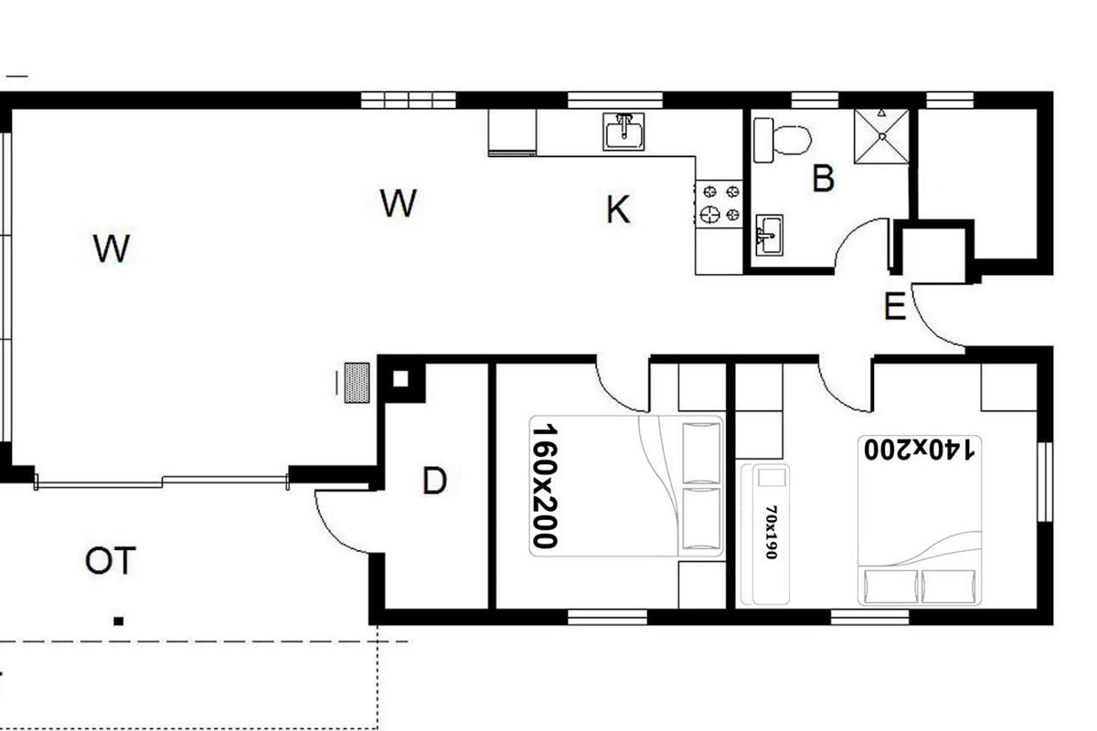 Bettengrösse: 1 Doppelbett 140 x 200 cm + 1 Doppelbett 160 x 200 cm + 1 Etagenbett 70 x 190 cm.