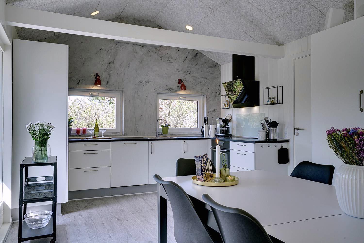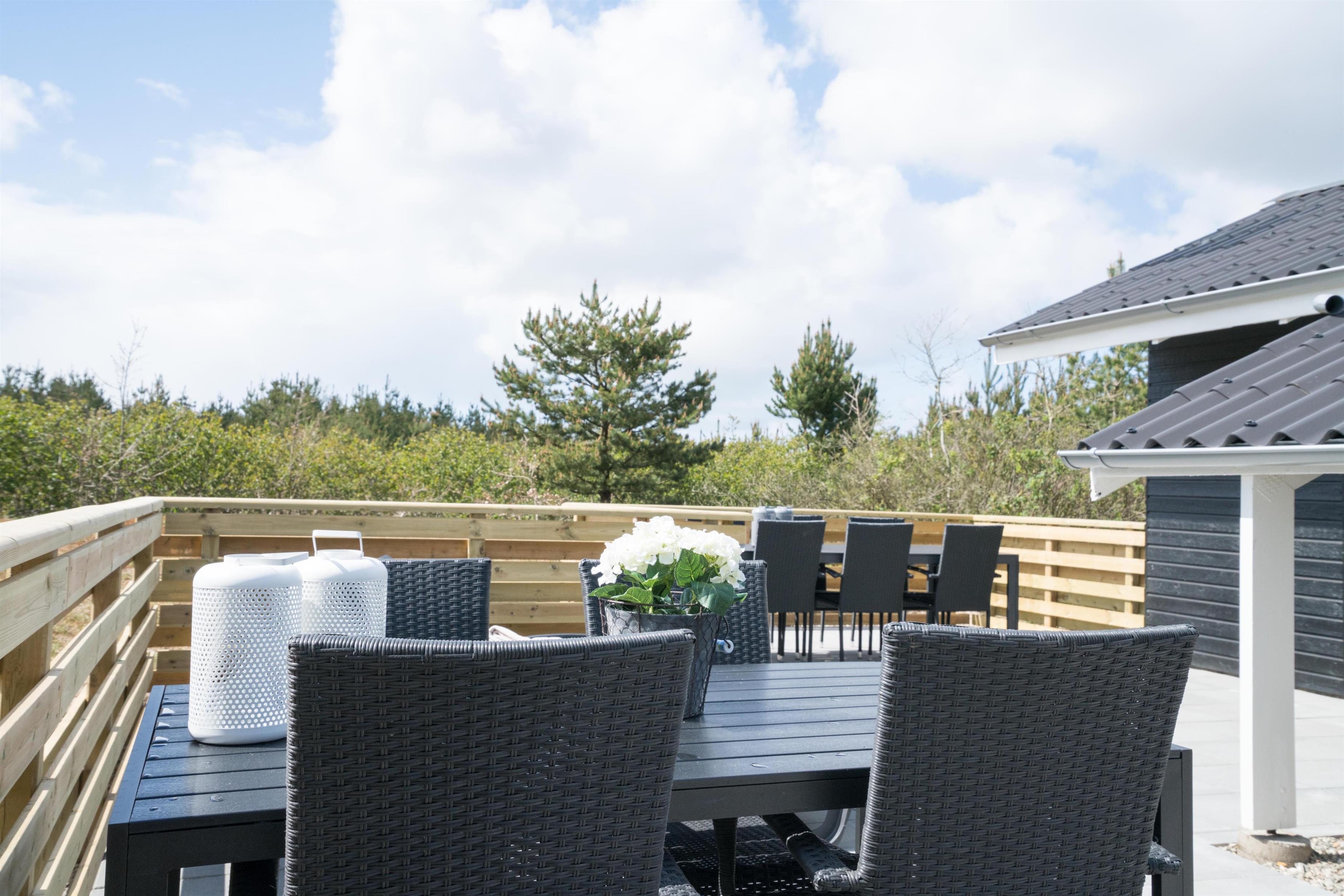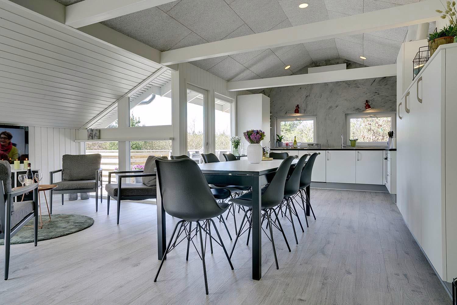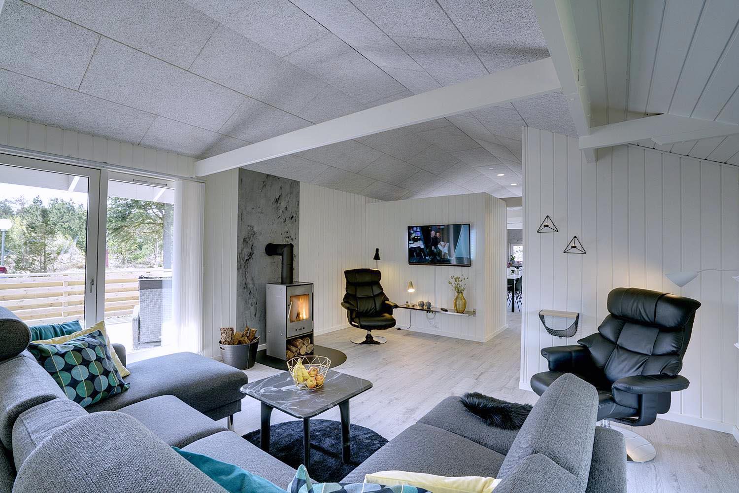 Dieses charmante und großzügige Ferienhaus mit 127?m² Wohnfläche liegt auf einem gepflegten Naturgrundstück am Ende einer ruhigen Straße – mit Ausblick auf die umliegende Blåbjerg Plantage und reicher Tierwelt direkt vor der Tür. Es eignet sich auch hervorragend für zwei Familien.