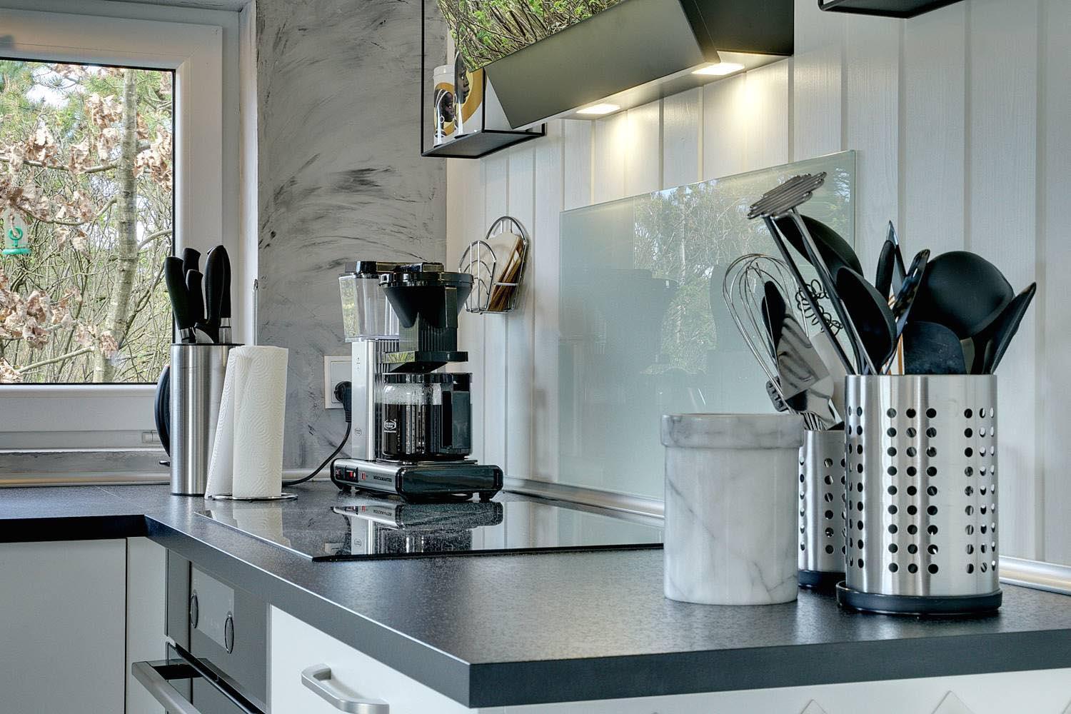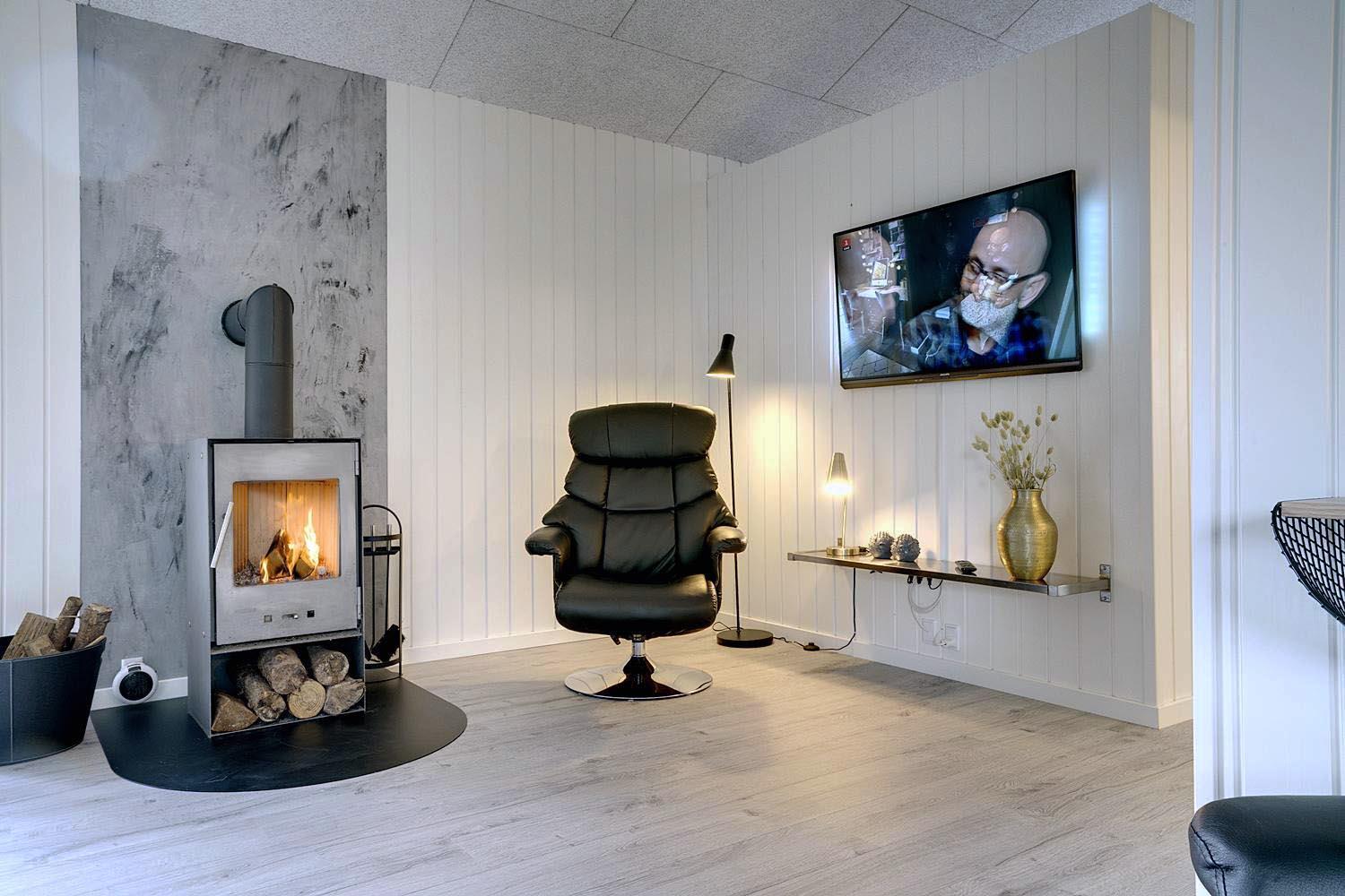 Der gemütliche Wohnbereich ist mit einem Kamin, TV und einem Radio mit Bluetooth-Funktion ausgestattet – ideal für gemeinsame Abende. Die offene Küche verfügt u.a. über einen Geschirrspüler und Kühlschrank mit separatem Gefrierfach (50?Liter). Eine energiesparende Wärmepumpe sorgt für ein angenehmes Raumklima und hilft beim Stromsparen.