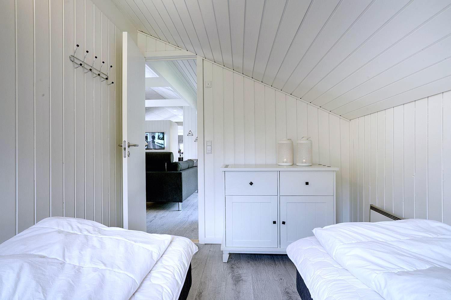 Das Haus verfügt über vier komfortable Schlafzimmer – zwei davon mit Doppelbetten, eines zusätzlich mit eigenem TV, sowie zwei Zimmer mit Einzelbetten. Zwei moderne Badezimmer bieten ausreichend Komfort; eines davon mit direktem Zugang zur hauseigenen Sauna für entspannte Stunden nach einem langen Strandtag.