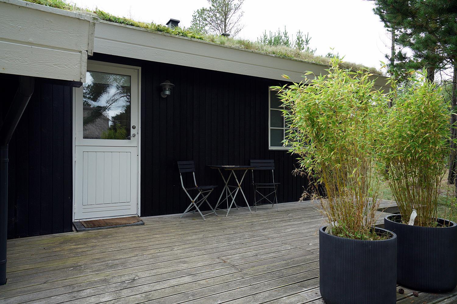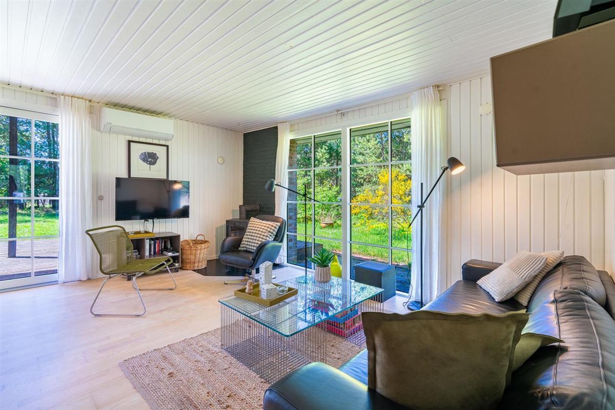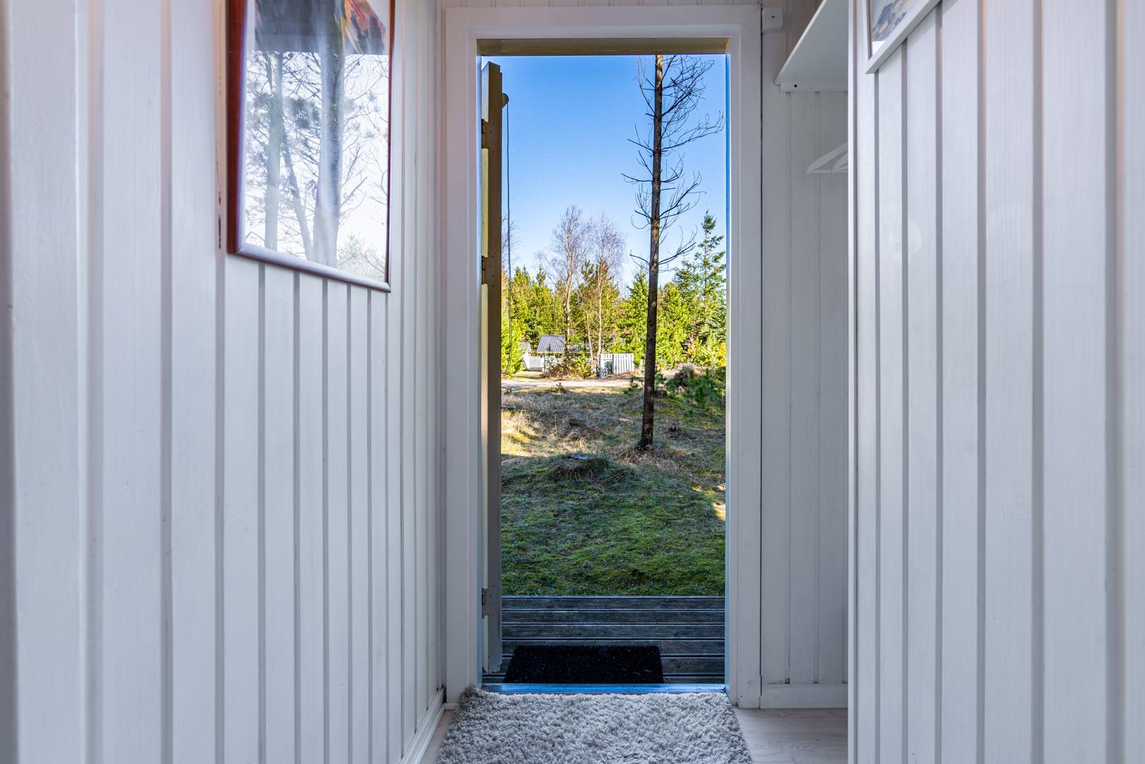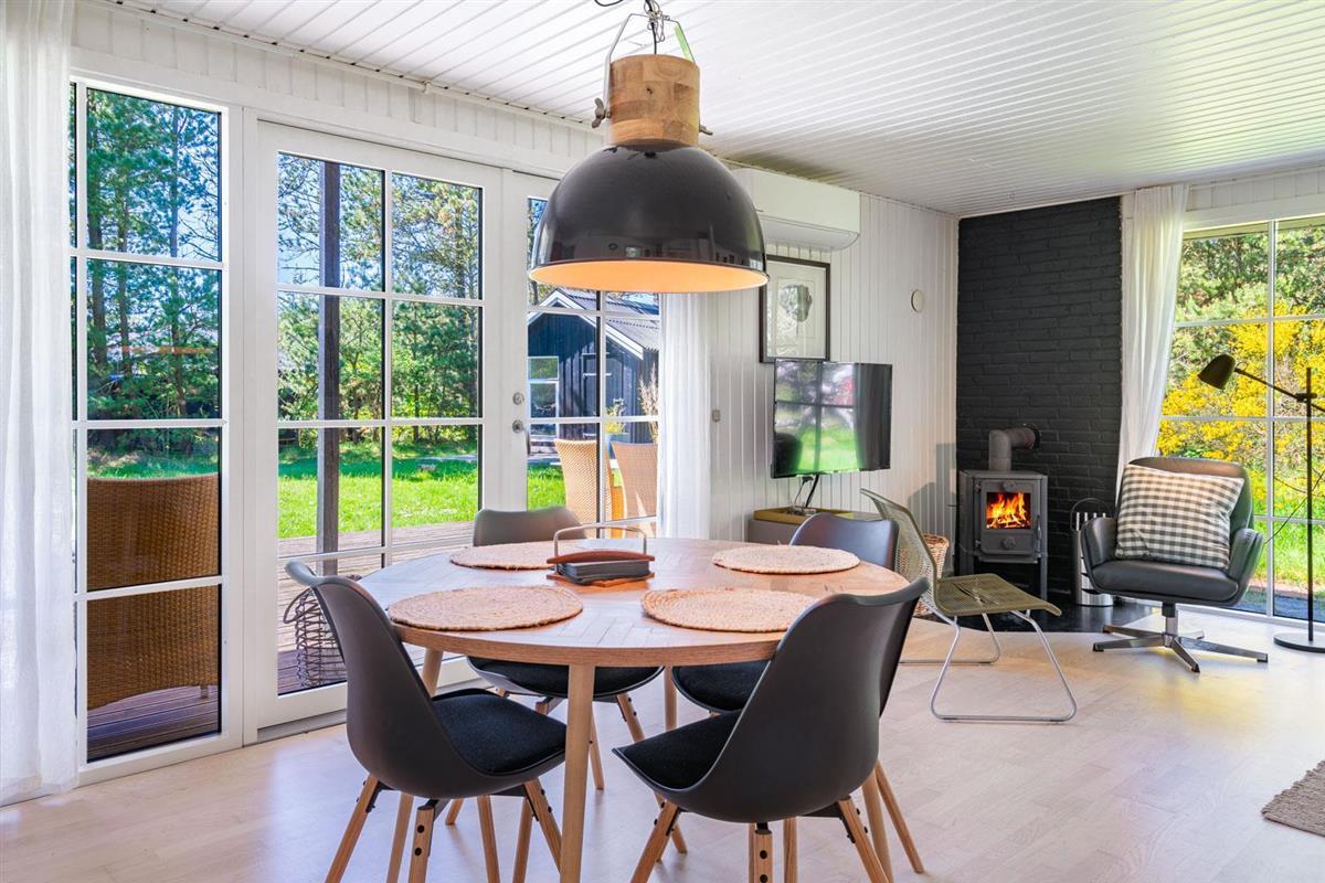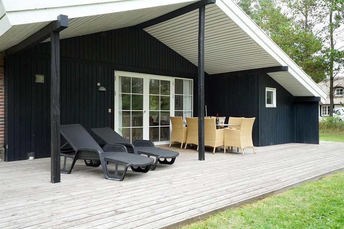 Eine große Terrasse, auf der sich auch eine Überdachung befindet, lädt zu einem wunderbaren Leben im Freien und vielen schönen Stunden ein. Das Grundstück ist eingegrenzt und es ist immer möglich, Schutz vor Wetter und Wind zu finden. Houstrup ist ein Ort der Ruhe. Ein schönes Waldgebiet mit vielen Wegesystemen - sowohl für den Spaziergang mit Hund als auch für Radtouren mit der ganzen Familie.