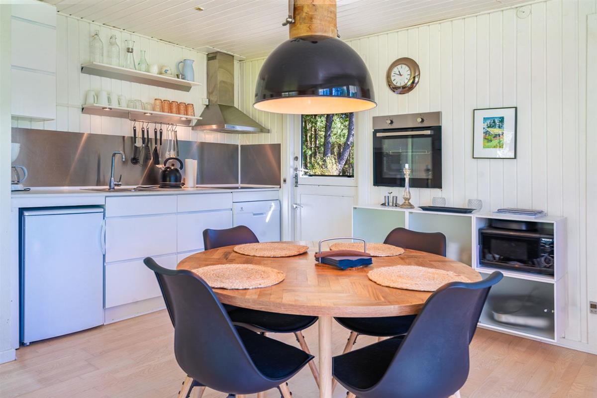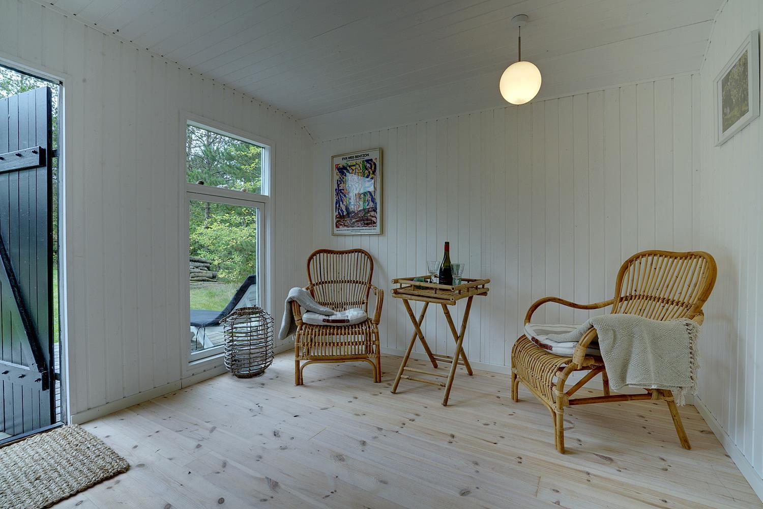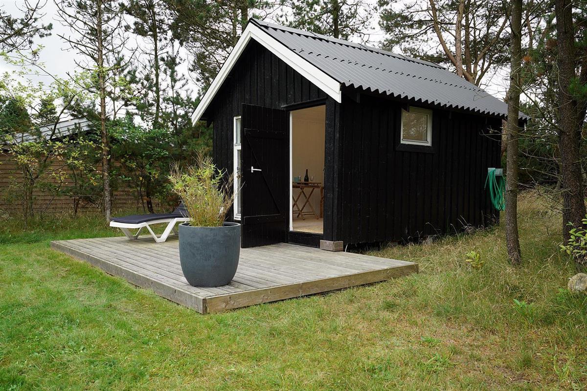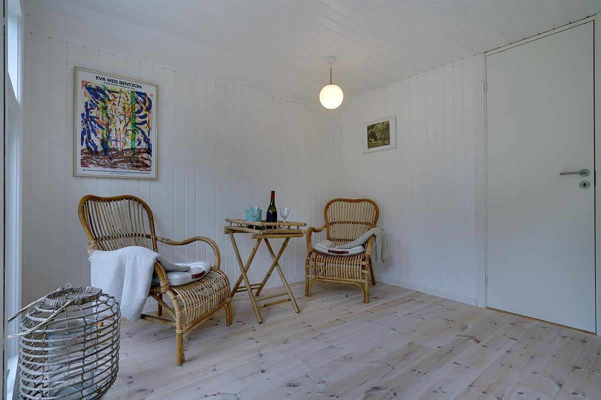 Eine große Terrasse, auf der sich auch eine Überdachung befindet, lädt zu einem wunderbaren Leben im Freien und vielen schönen Stunden ein. Das Grundstück ist eingegrenzt und es ist immer möglich, Schutz vor Wetter und Wind zu finden. Houstrup ist ein Ort der Ruhe. Ein schönes Waldgebiet mit vielen Wegesystemen - sowohl für den Spaziergang mit Hund als auch für Radtouren mit der ganzen Familie.