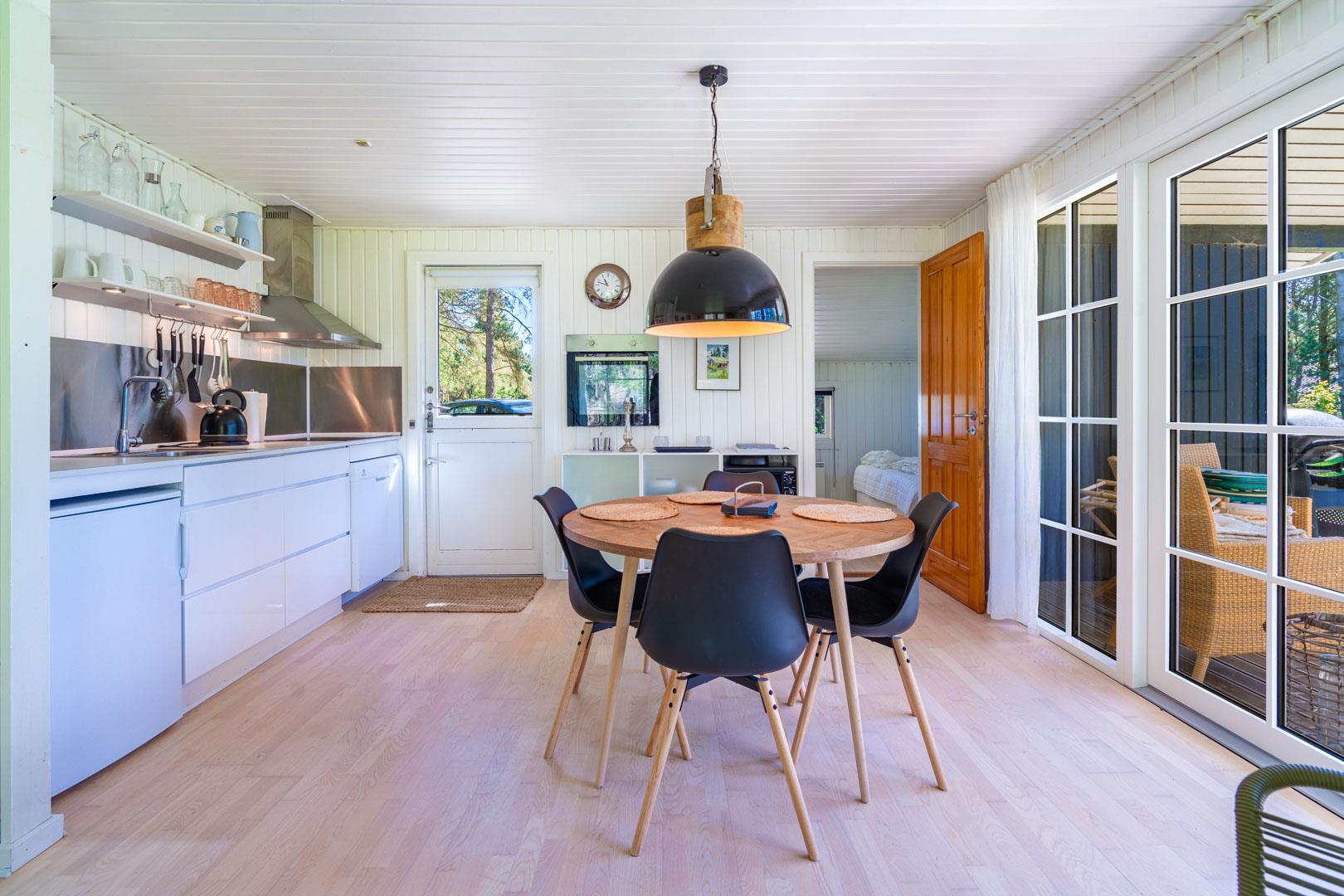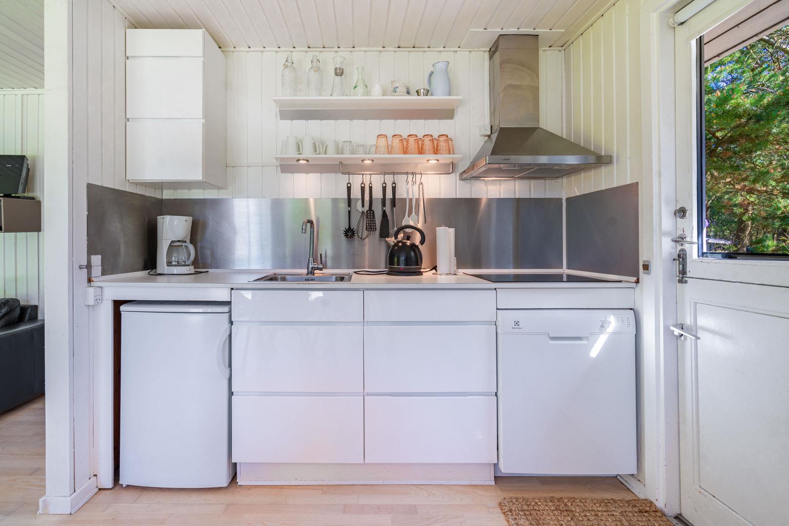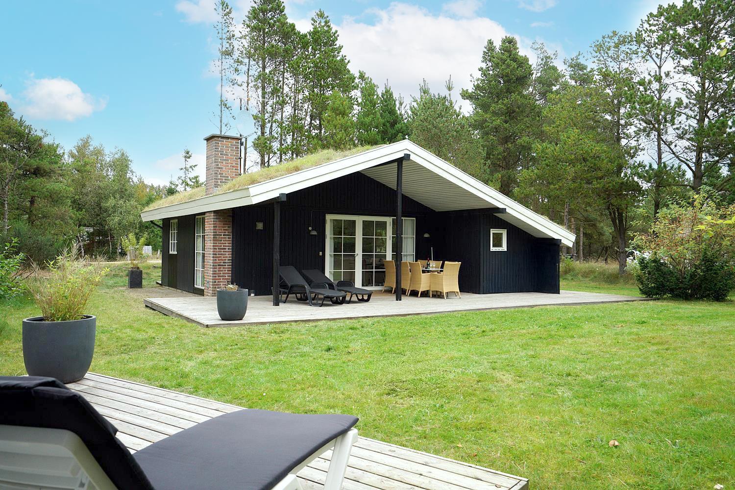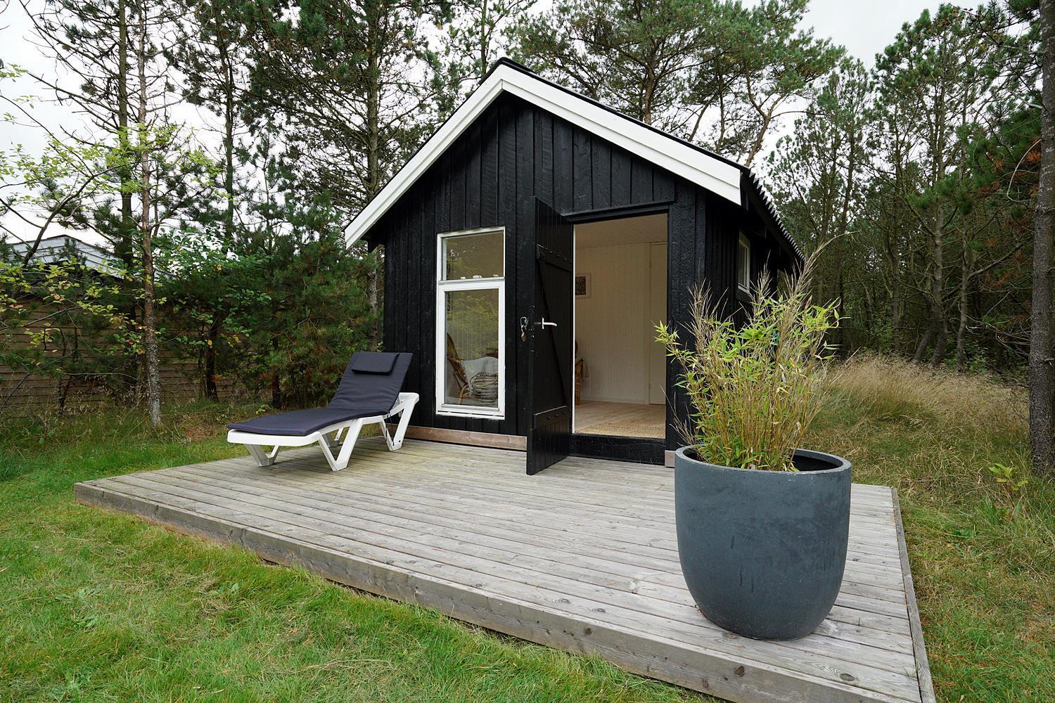 Eine große Terrasse, auf der sich auch eine Überdachung befindet, lädt zu einem wunderbaren Leben im Freien und vielen schönen Stunden ein. Das Grundstück ist eingegrenzt und es ist immer möglich, Schutz vor Wetter und Wind zu finden. Houstrup ist ein Ort der Ruhe. Ein schönes Waldgebiet mit vielen Wegesystemen - sowohl für den Spaziergang mit Hund als auch für Radtouren mit der ganzen Familie.