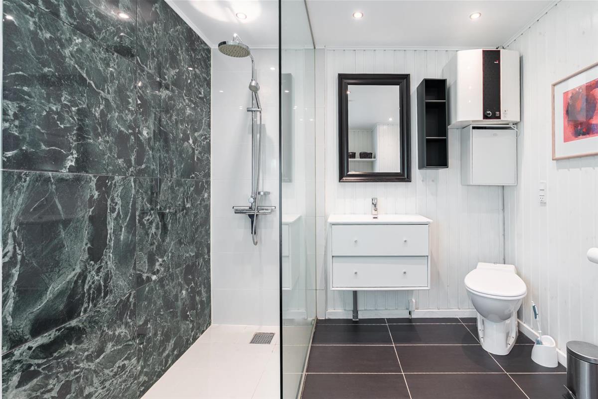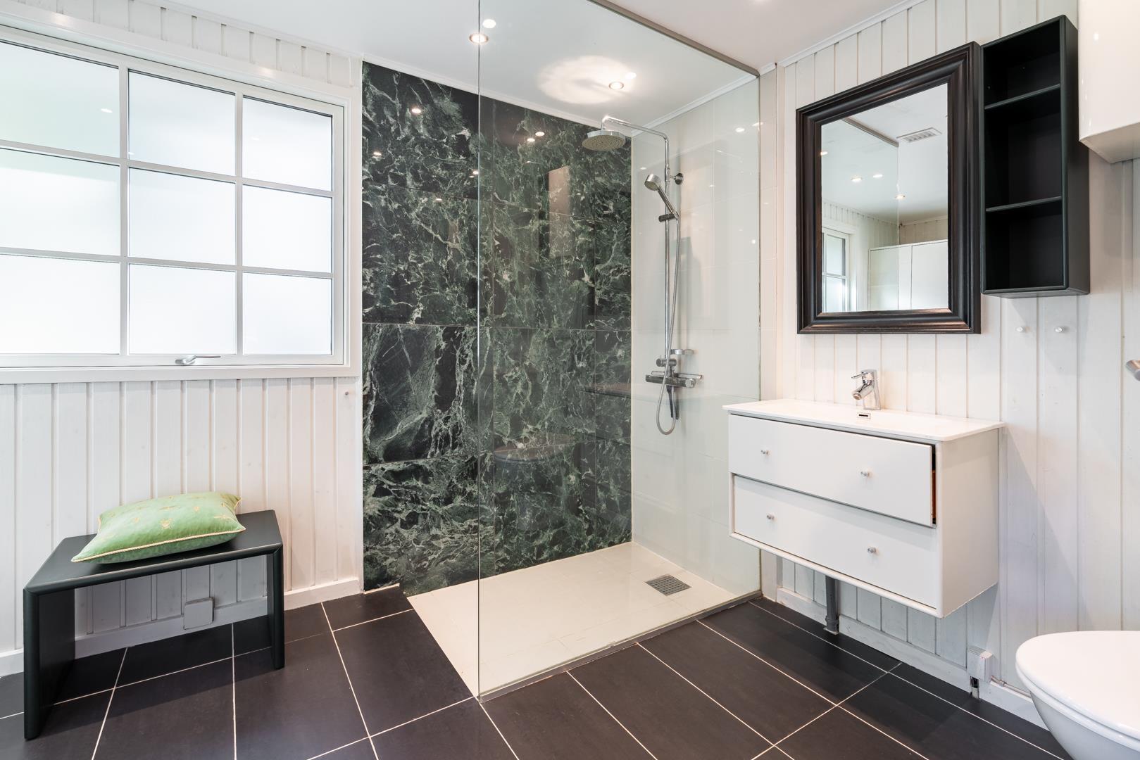 Badezimmer mit viel Platz! Eines der einzigartigen Dinge des Hauses ist das schöne Grundstück, auf dem sich auch ein Gartenhaus befindet, in dem das Leben in luftiger Höhe genossen werden kann.