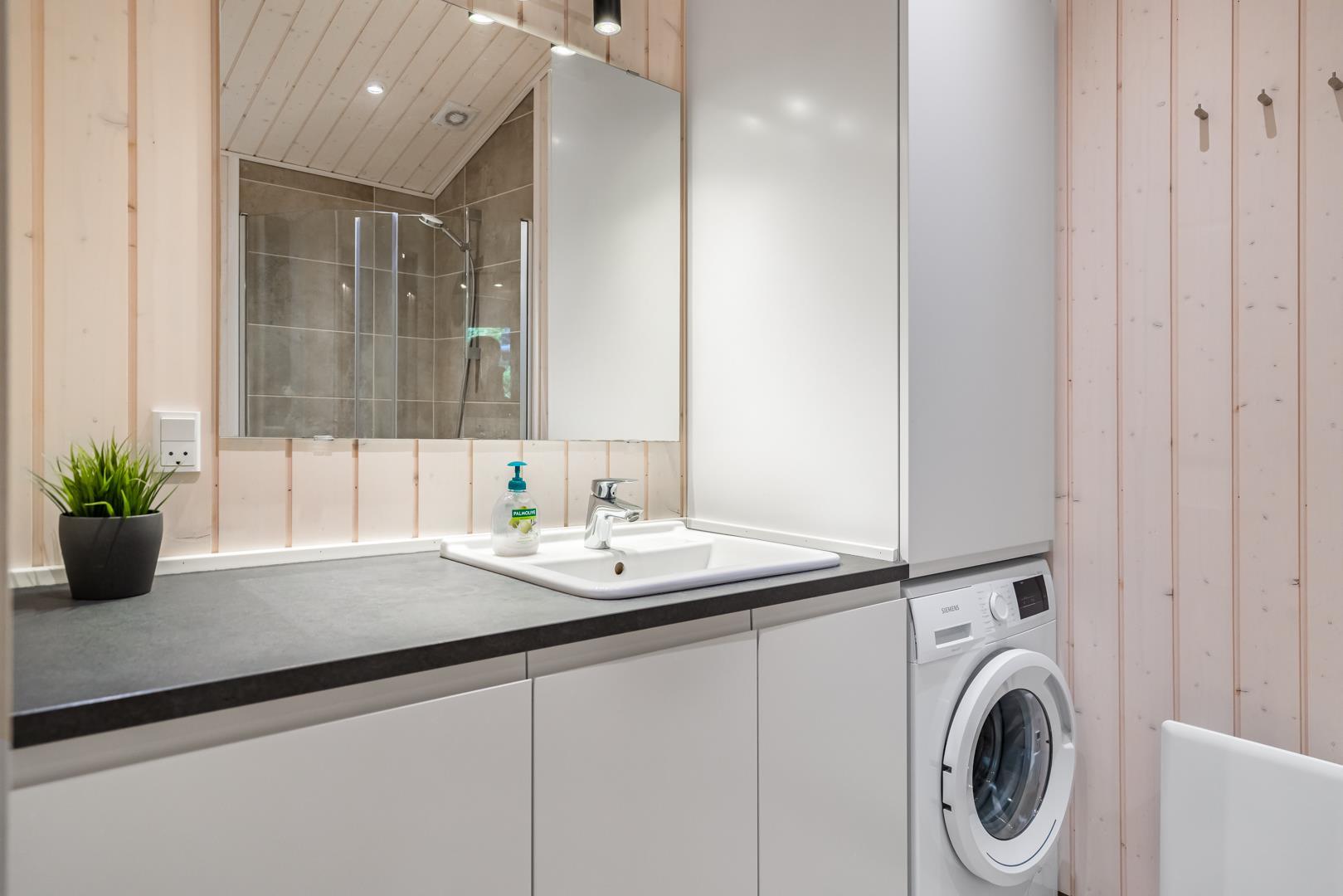 Eine Waschmaschine, ein Safe und die energiesparende Wärmepumpe sorgen für zusätzlichen Komfort. Im Badezimmer genießt du besonders an kühleren Tagen die angenehme Fußbodenheizung – ein kleines Extra mit großer Wirkung.