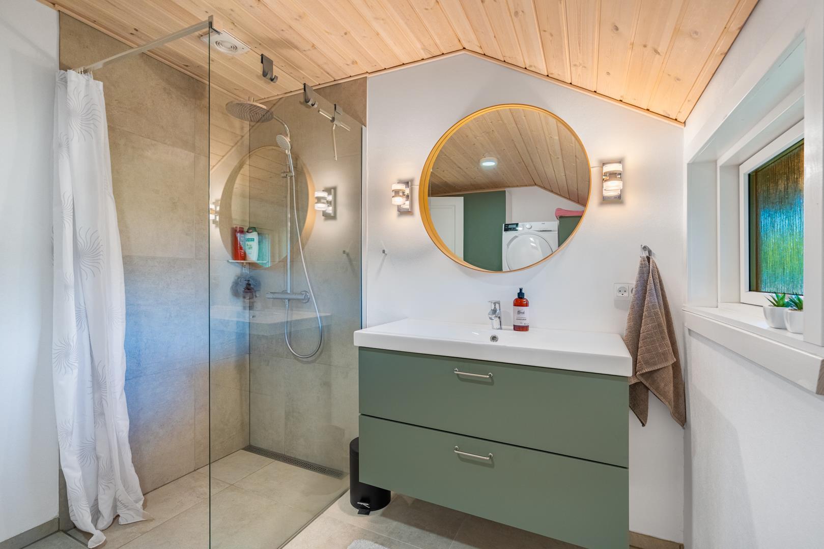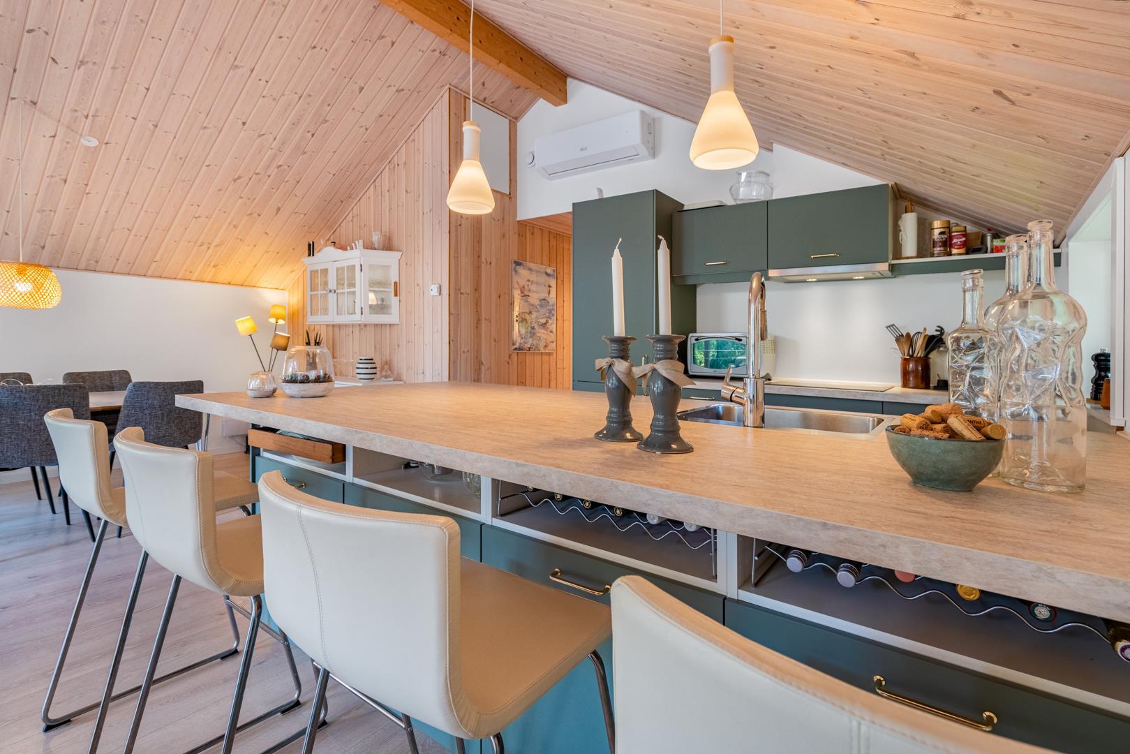 Die Küche ist modern ausgestattet und direkt in den Wohnraum integriert, sodass gemeinsames Kochen und gesellige Abende nahtlos ineinander übergehen. Spülmaschine, Waschmaschine und Trockner erleichtern den Alltag und geben euch mehr Zeit für die schönen Seiten des Urlaubs. Insgesamt 3 Schlafzimmer bieten Raum für erholsame Nächte, während das Badezimmer mit Fußbodenheizung zusätzlichen Komfort verspricht.