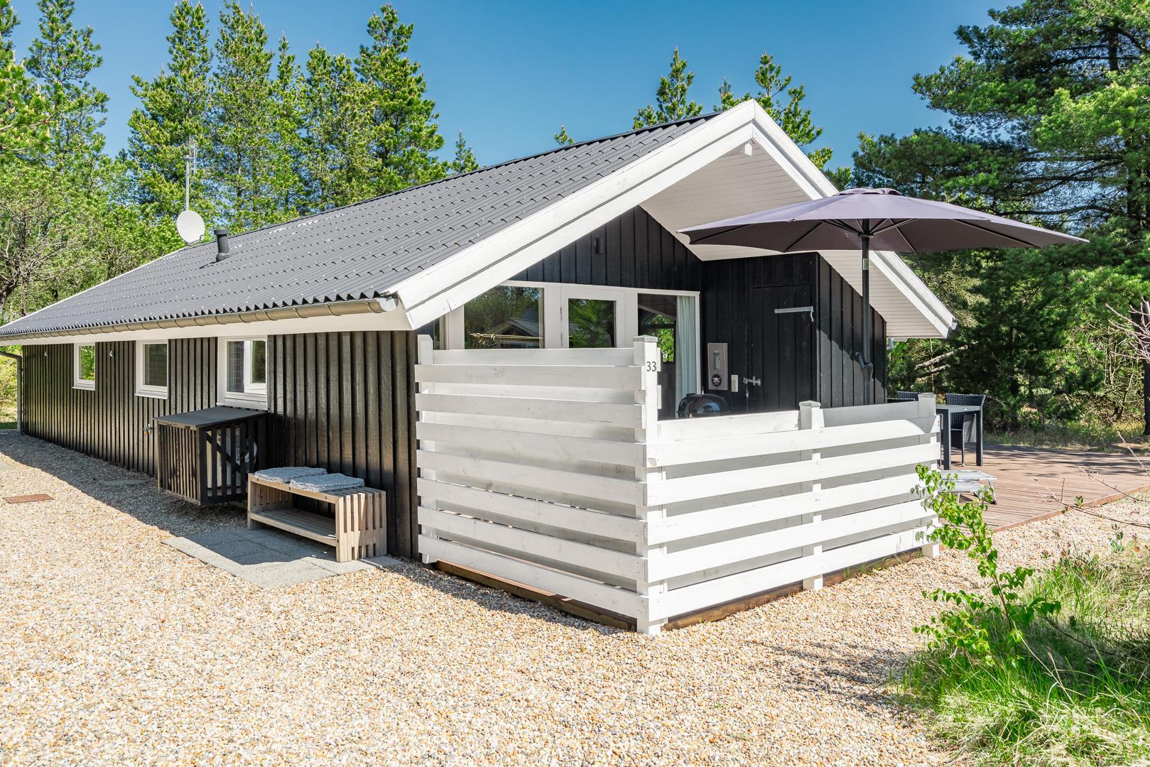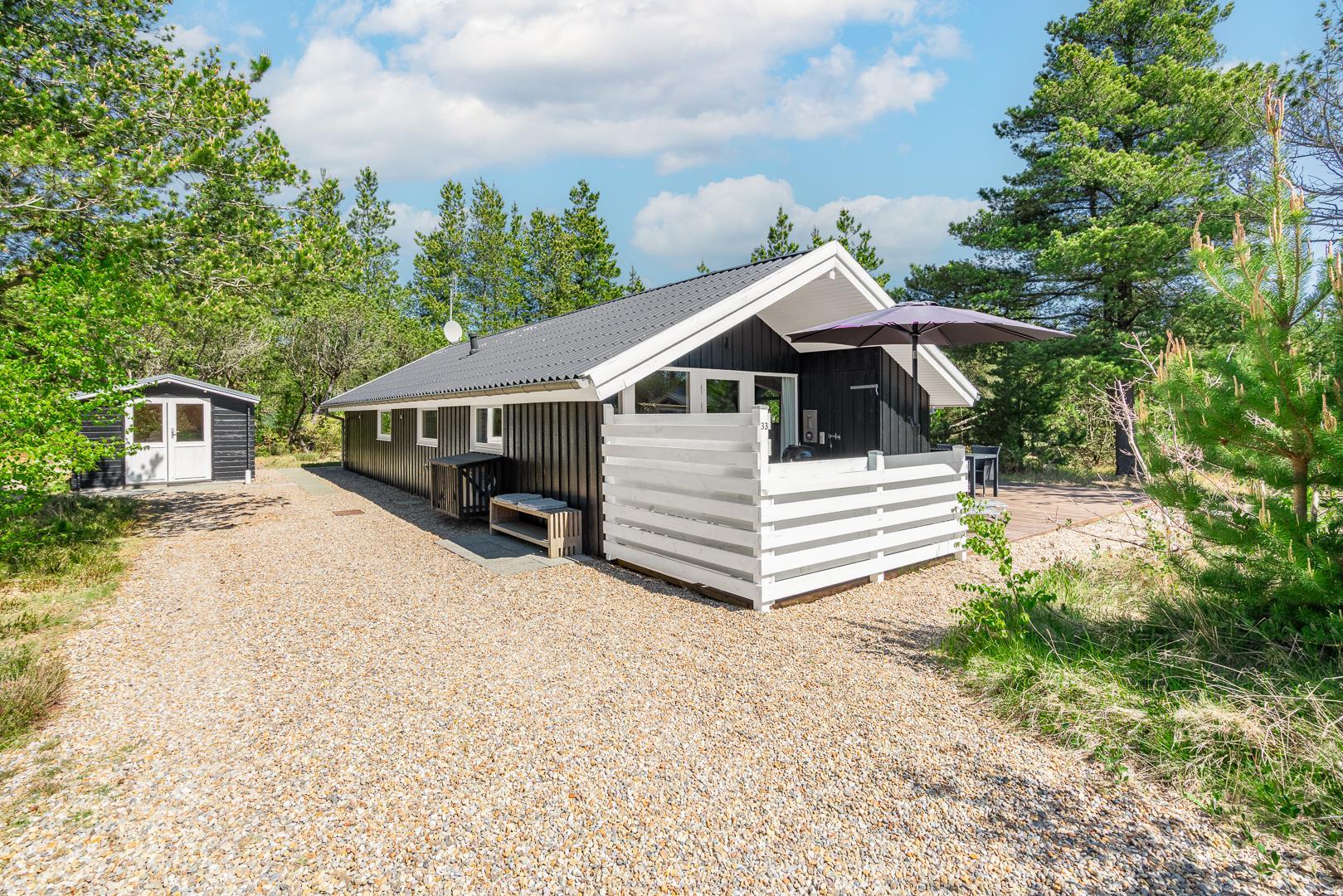 Dieses gemütliche Ferienhaus am Peder Larsensvej 33 bietet dir auf 94 m² den perfekten Rahmen für einen erholsamen Urlaub an der dänischen Nordsee. Teilweise renoviert, mit Sauna, Kamin und nur 3,5 km vom Meer entfernt, ist dieses Ferienhaus ideal für 5 Personen – ob als Familie, Paar oder mit Freunden.
