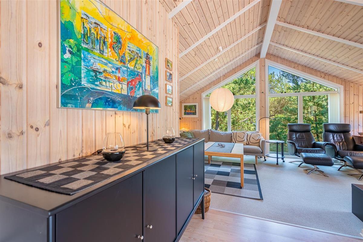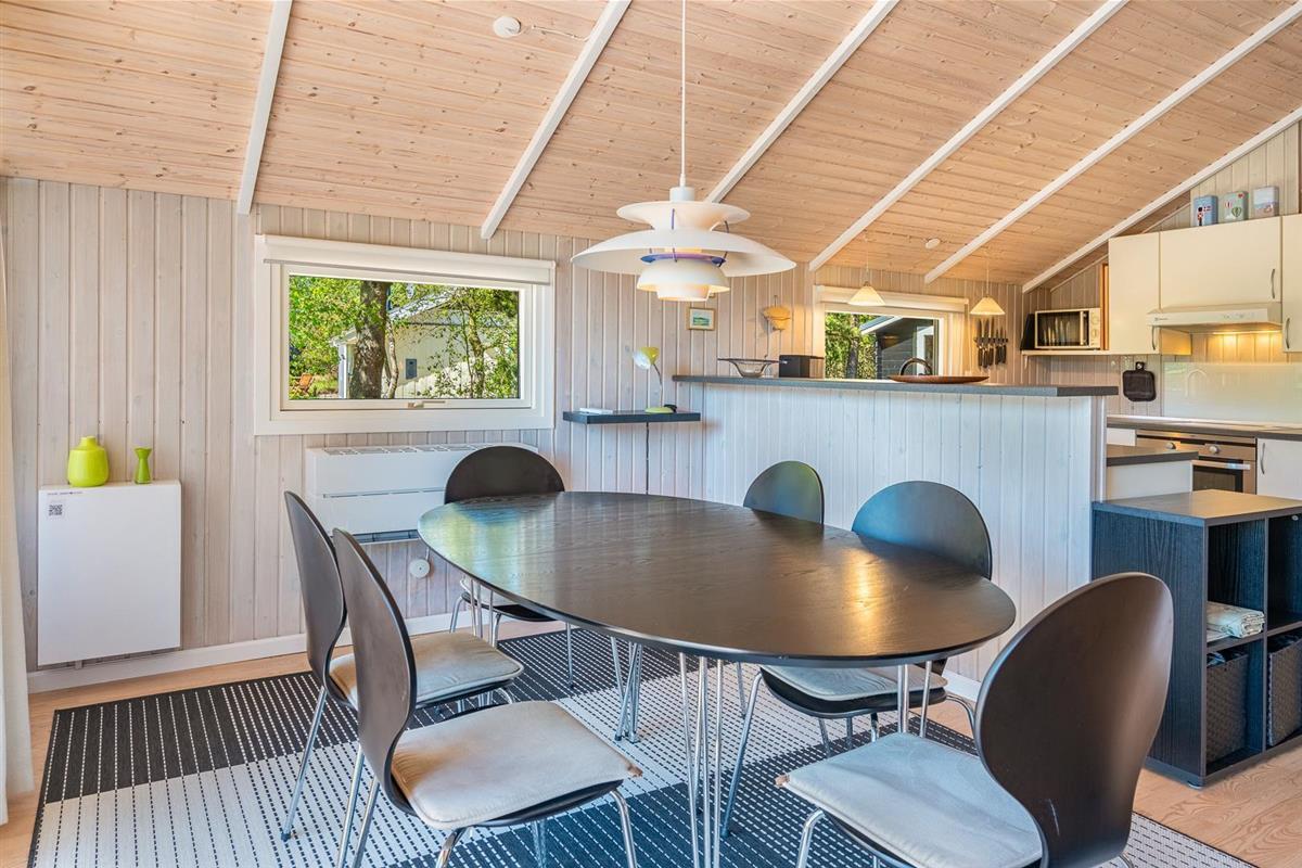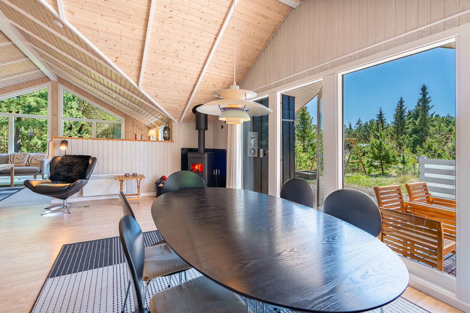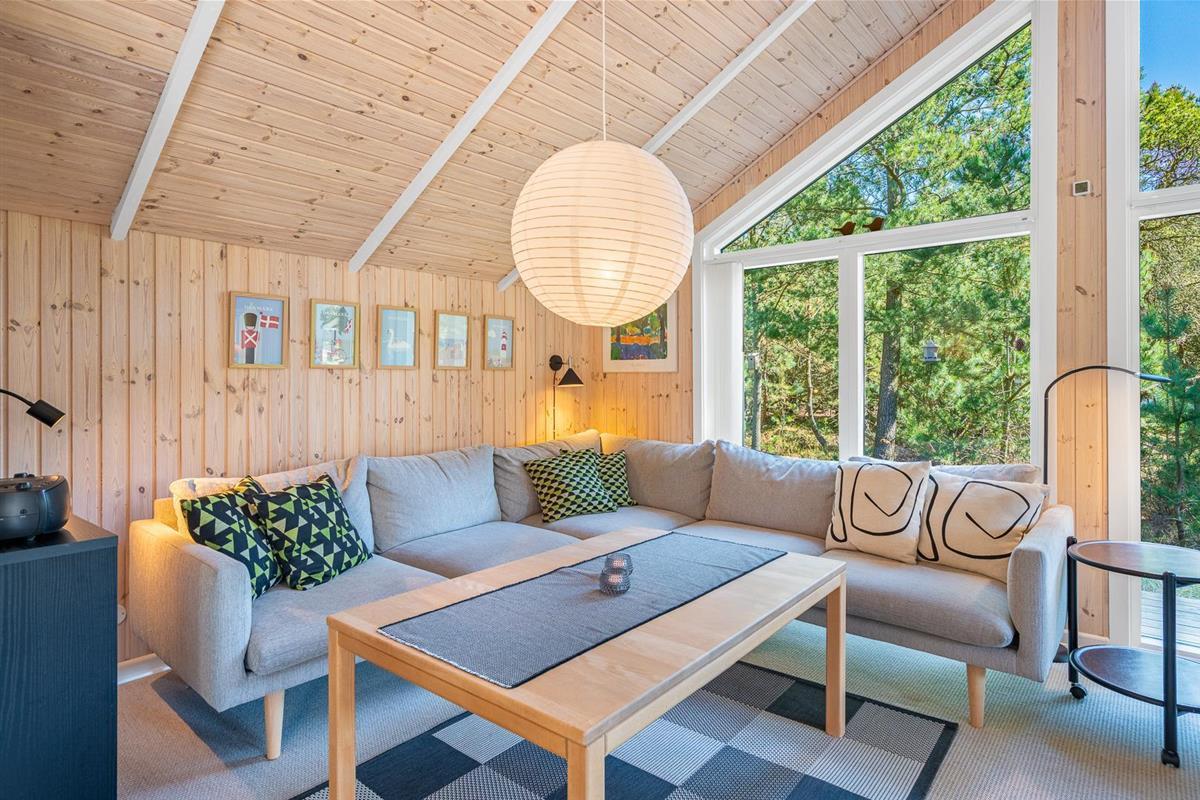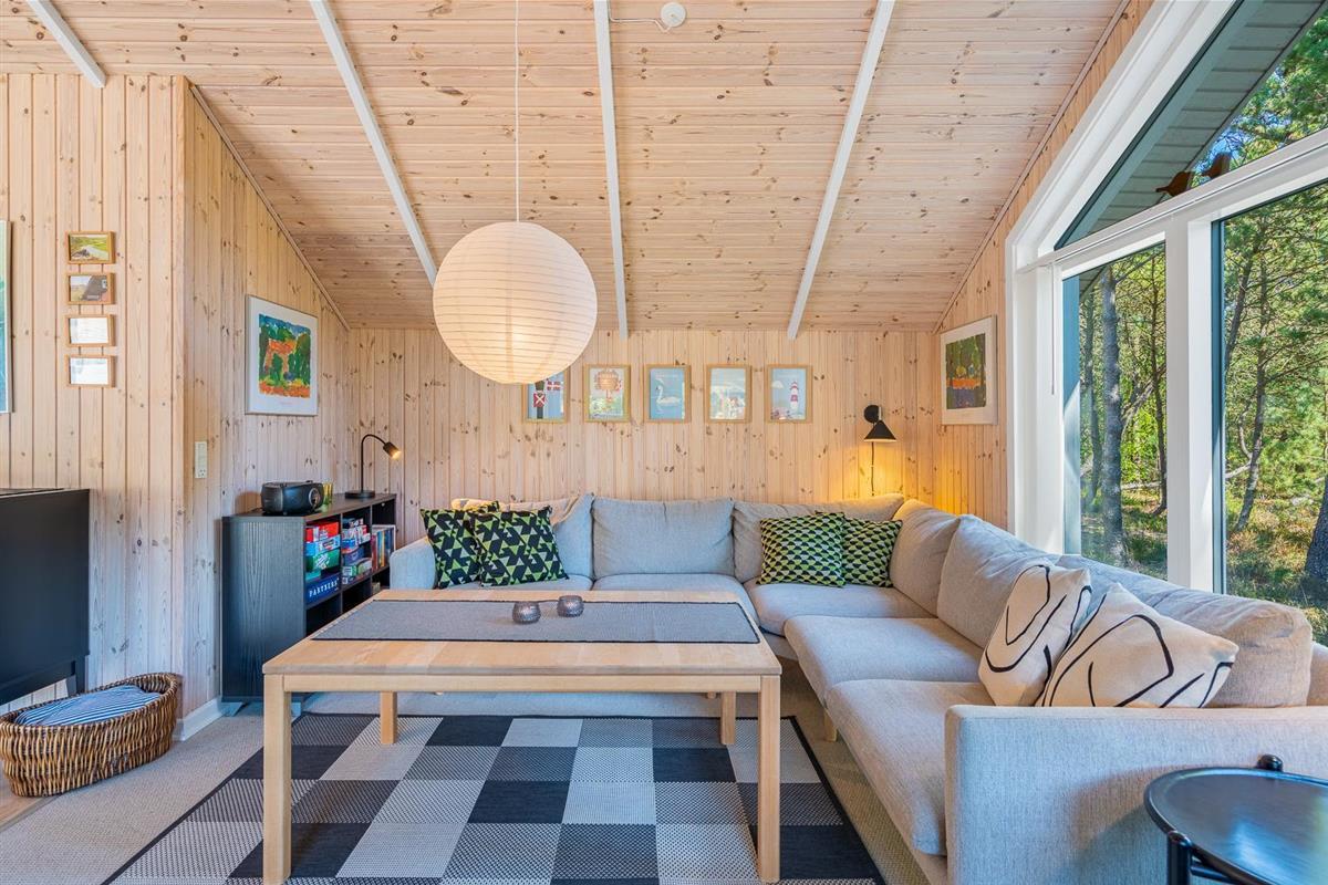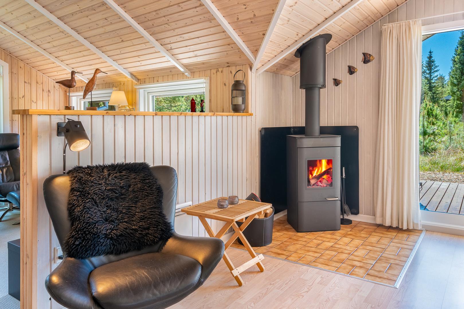 Hier erwartet dich ein helles und freundliches Ferienhaus, das Komfort und klassische dänische Gemütlichkeit vereint. Der Wohnbereich bildet das Herzstück des Ferienhauses. Hier kannst du es dir vor dem Kamin gemütlich machen, während draußen der Wind durch die Bäume zieht. Die energieeffiziente Wärmepumpe sorgt ganzjährig für angenehme Temperaturen.