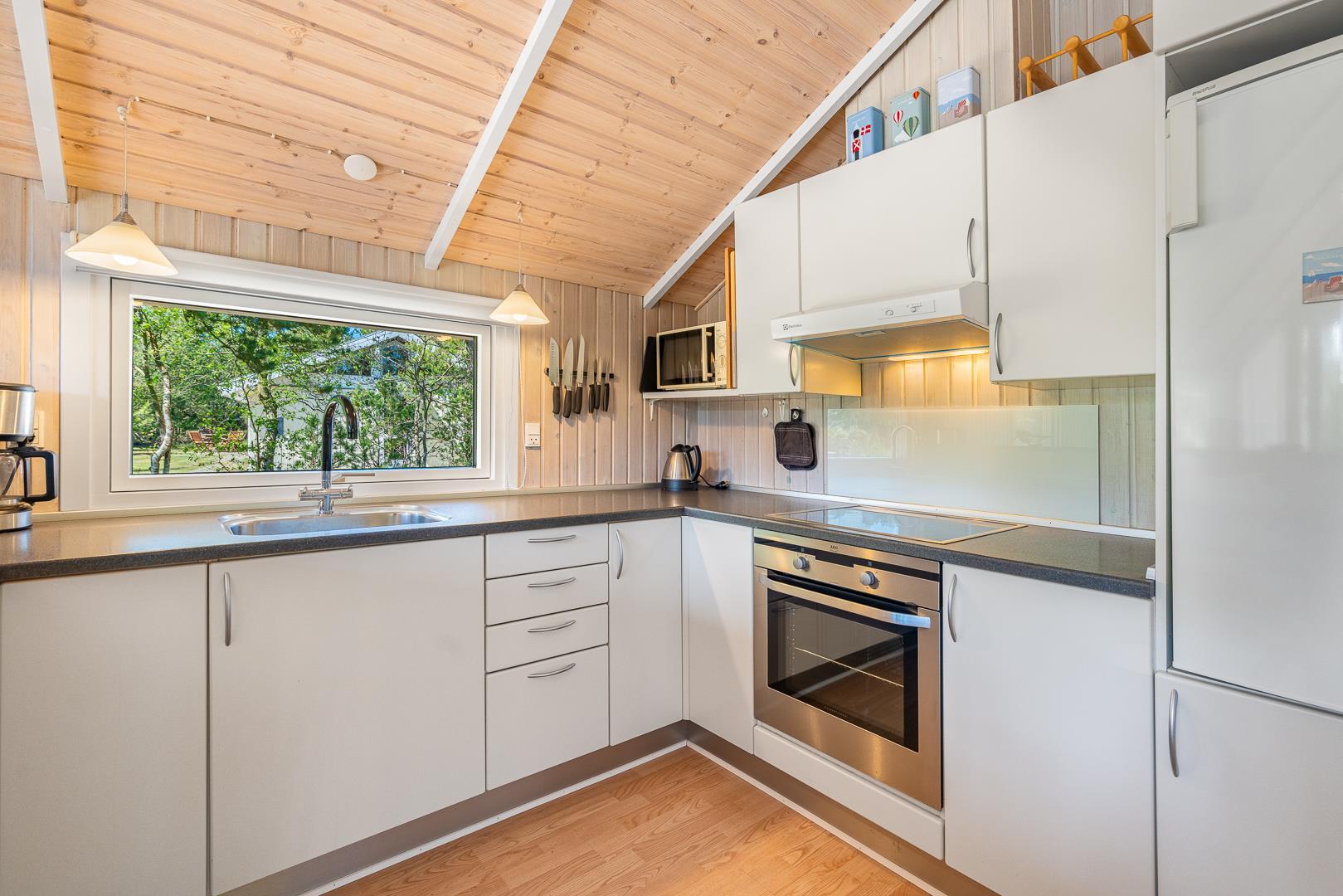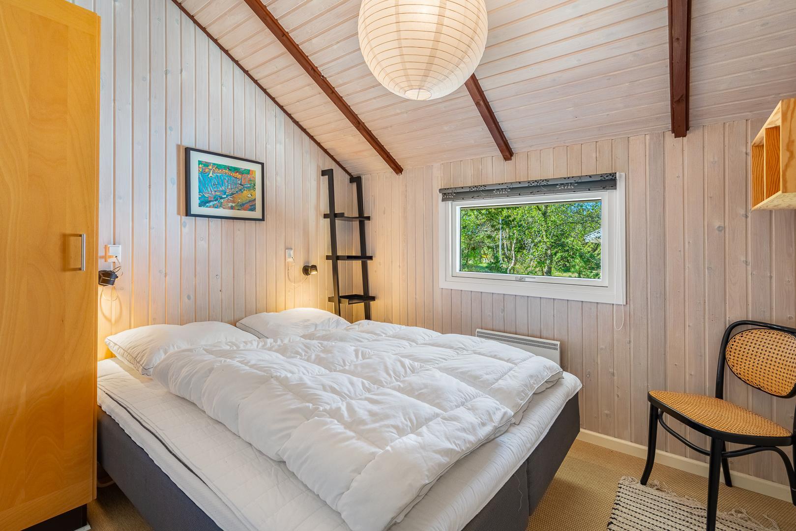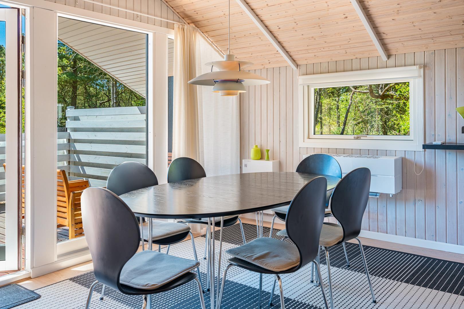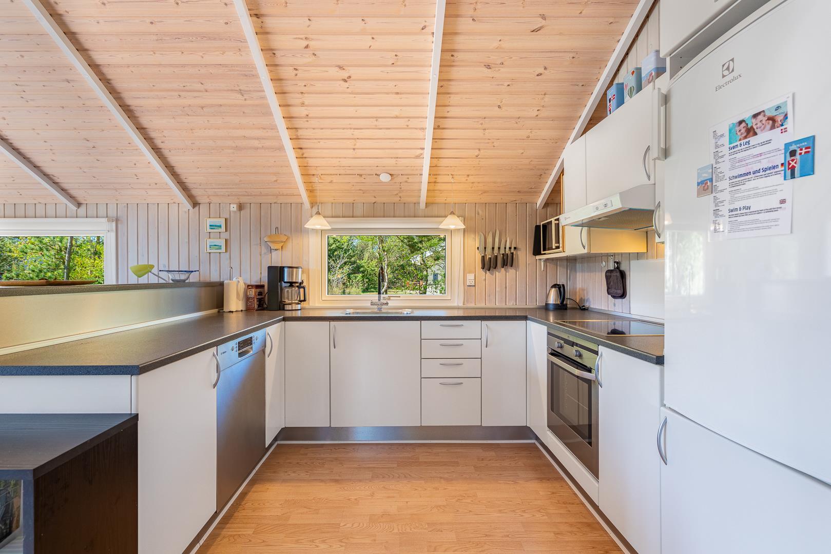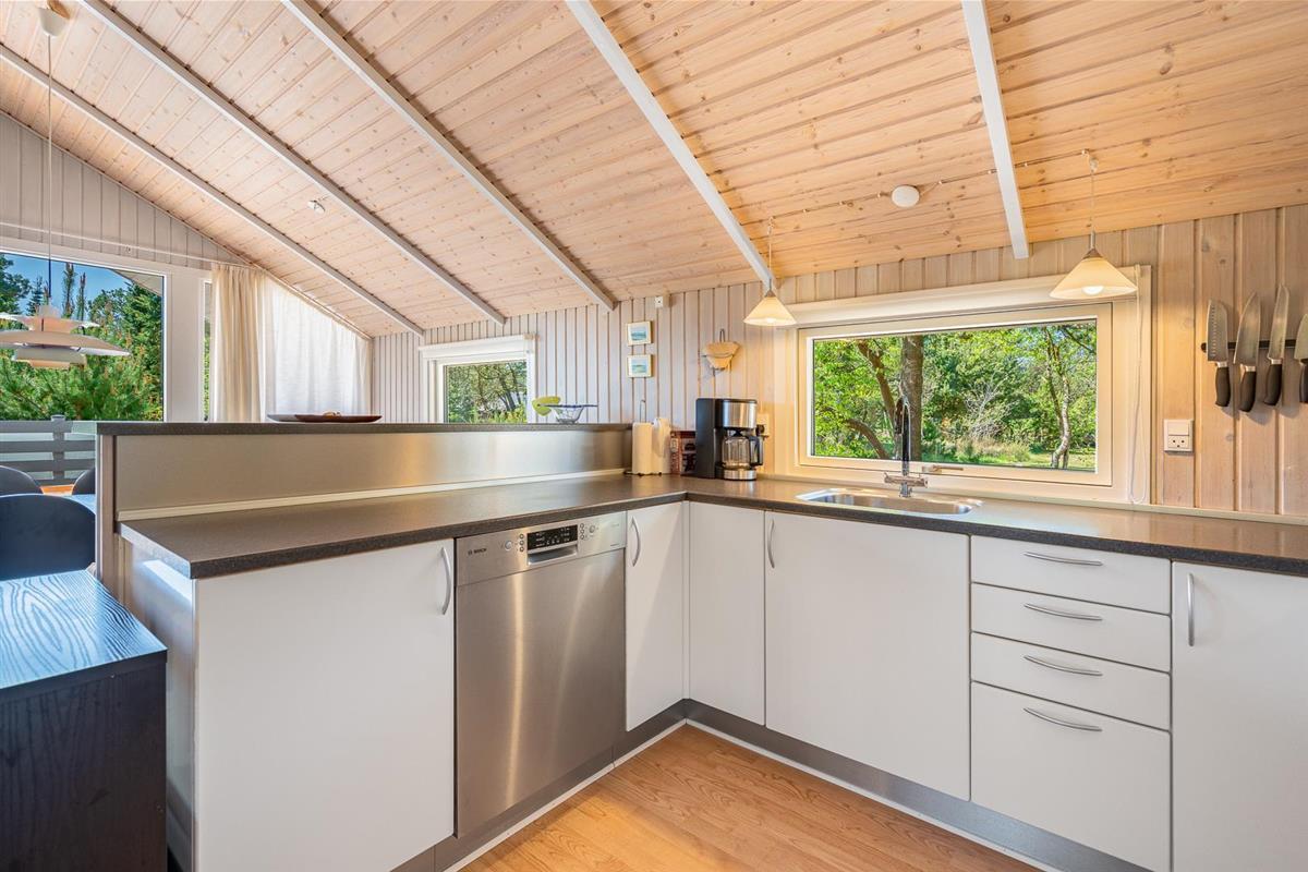 Hier erwartet dich ein helles und freundliches Ferienhaus, das Komfort und klassische dänische Gemütlichkeit vereint. Der Wohnbereich bildet das Herzstück des Ferienhauses. Hier kannst du es dir vor dem Kamin gemütlich machen, während draußen der Wind durch die Bäume zieht. Die energieeffiziente Wärmepumpe sorgt ganzjährig für angenehme Temperaturen.