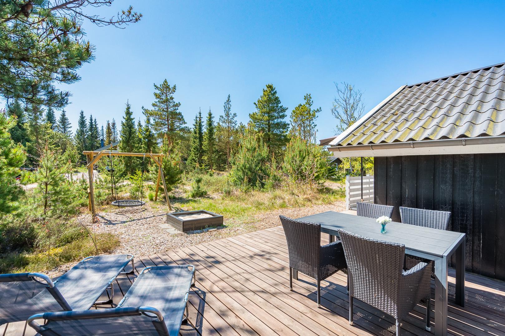 Für Kinder stehen eine Schaukel und ein Sandkasten bereit, sodass auch die Kinder voll auf ihre Kosten kommen. Während die Kinder spielen, kannst du die entspannte Umgebung genießen.