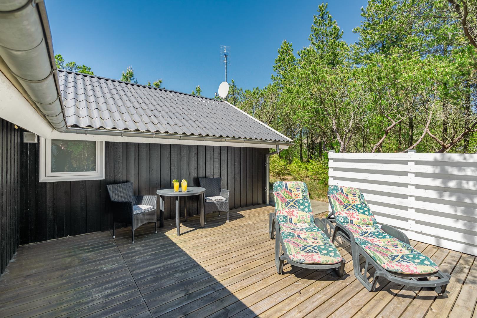 Der Außenbereich im Peder Larsensvej 33 lädt zum Verweilen ein. Auf dem großzügigen Naturgrundstück findest du Ruhe und Privatsphäre. Die überdachte Terrasse ermöglicht es dir, bei jedem Wetter draußen zu sitzen – perfekt für ein Frühstück an der frischen Luft oder einem gemütlichen Abend mit der Familie.