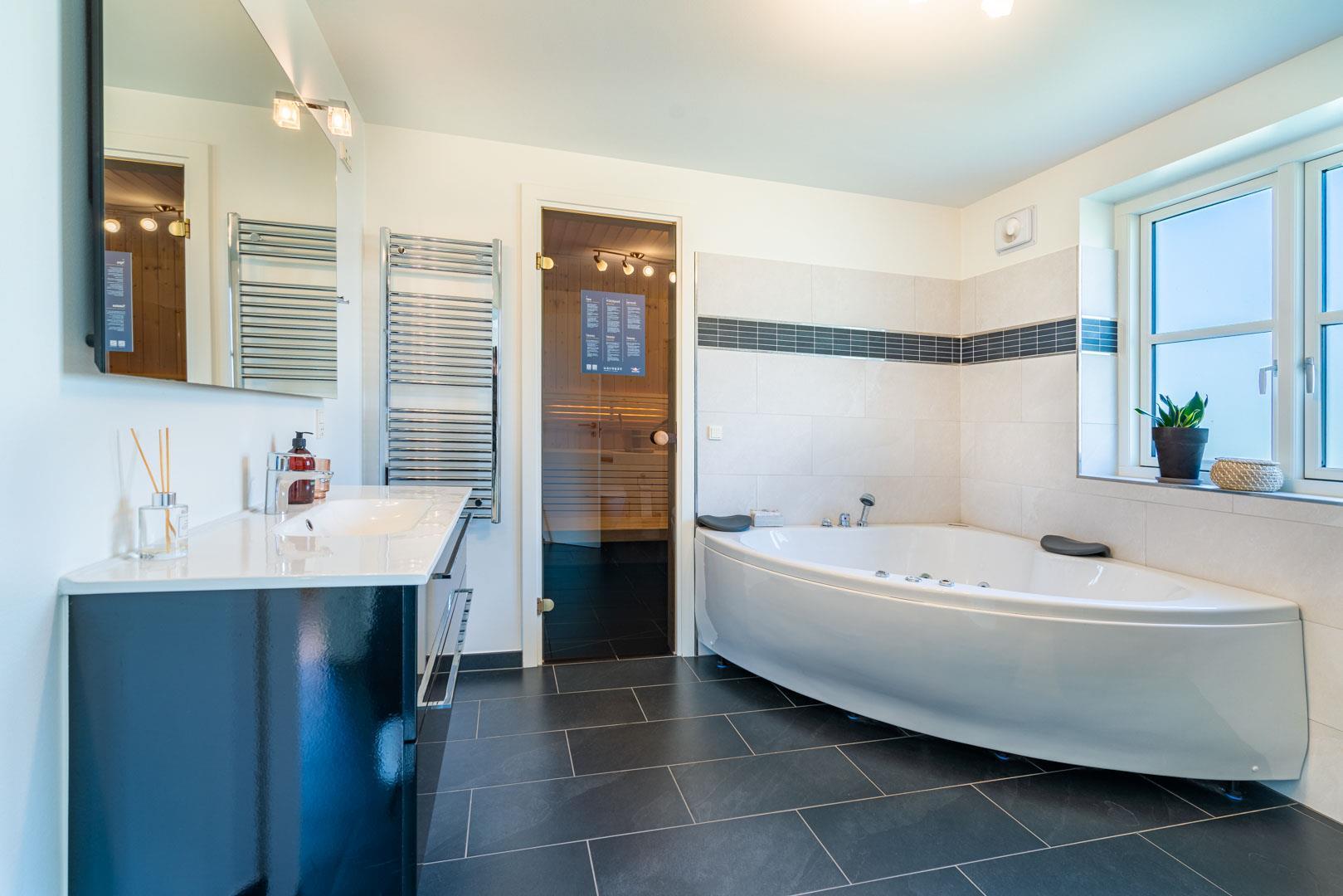 Das Haus ist mit 180m2 geräumig - hier ist Platz für 6 Personen - 2 Doppelbetten und 2 Einzelbetten. 2 schöne Badezimmer - eines mit Sauna und Whirlpool - vielleicht gegen den Muskelkater nach einer langen Wandertour. Die Küche ist gut ausgestattet und offen mit dem Essbereich und dem Wohnzimmer mit Holzofen verbunden. Fußbodenheizung ist überall.