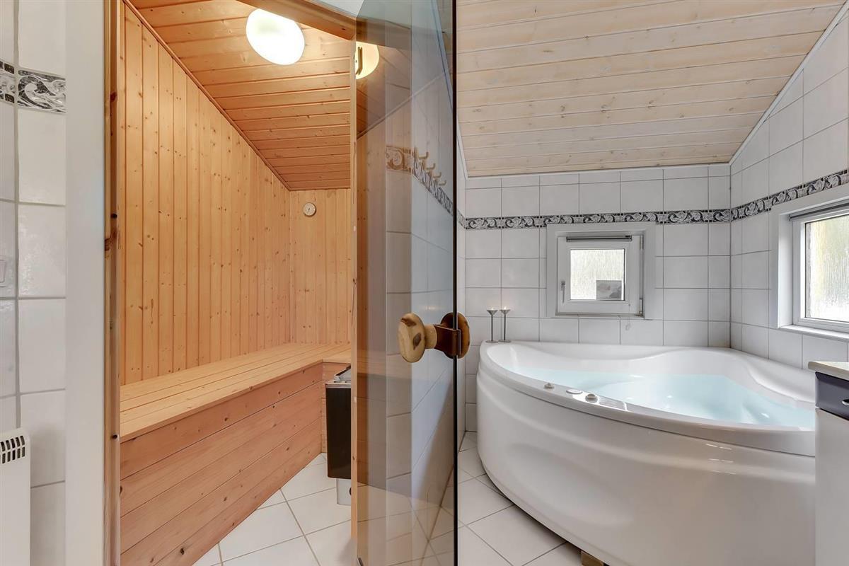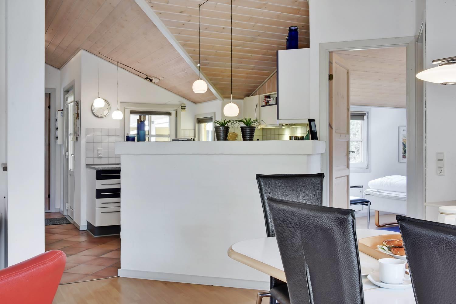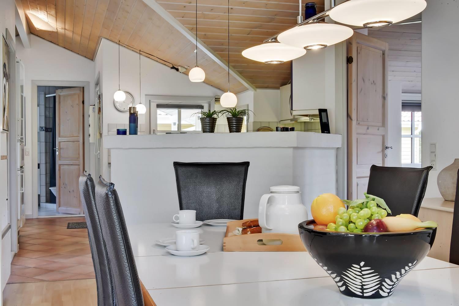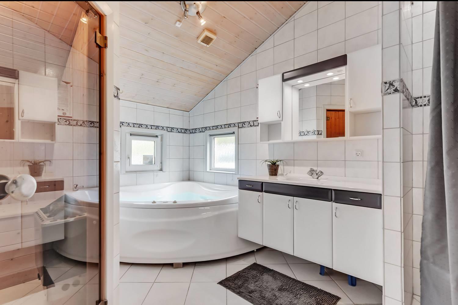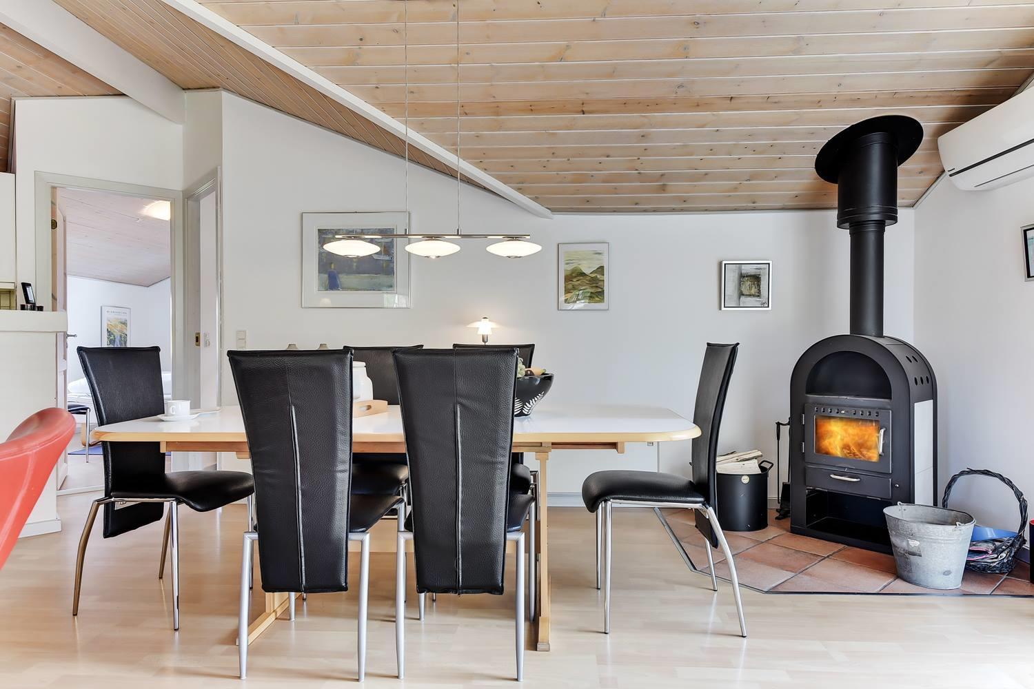 Am Ende einer Sackgasse, im ruhigen Houstrup, liegt dieses gemütliche, persönliche und gut gepflegte Ferienhaus. Das Haus hat hohe Decken und 3 Schlafzimmer- 2 mit Doppelbett und 1 mit Einzelbetten. Schöner Eingangsbereich und eine moderne Küche mit 70l Gefrierschrank, Mikrowelle und Spülmaschine. Badezimmer mit Whirlpool und Sauna sowie extra Toilette mit Waschbecken. Gemütliches Wohnzimmer mit TV, Kaminofen, Wärmepumpe und großer Fensterfront.