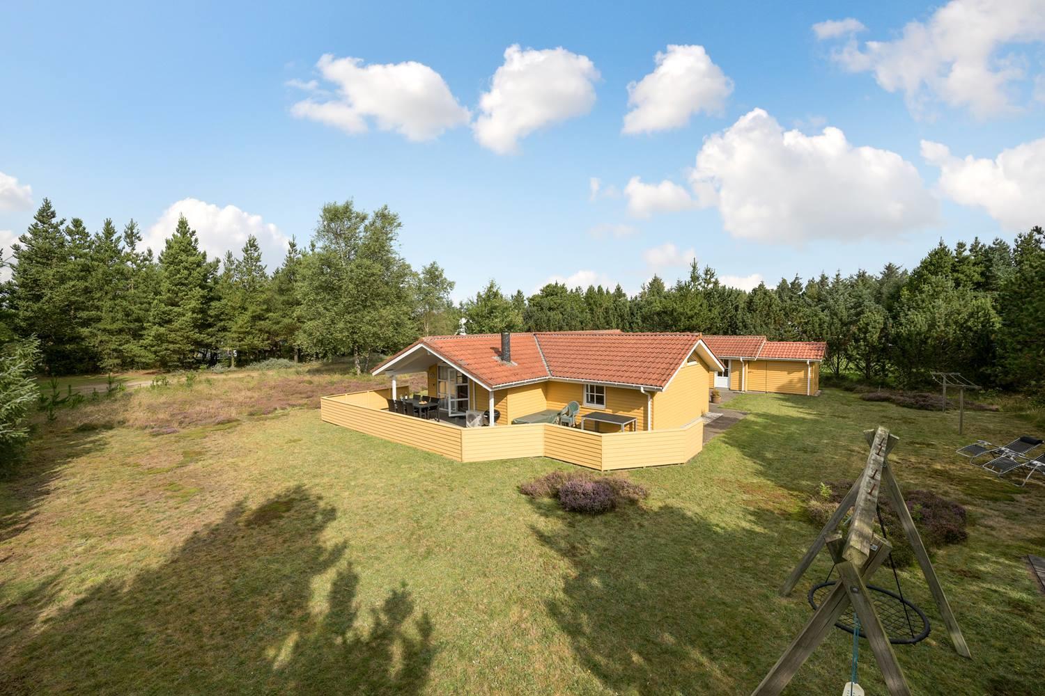 Das Ferienhaus ist besonders kinderfreundlich ausgestattet u.a. mit Schaukel, Sandkasten, Kinderstuhl sowie Waschmaschine und Trockner. Das Grundstück liegt ungestört und hat zwei Terrassen, die teilweise überdacht sind. Es gibt einen Carport für das Auto und einen Schuppen der genutzt werden kann. Fußbodenheizung in der Küche und in beiden Badezimmern.