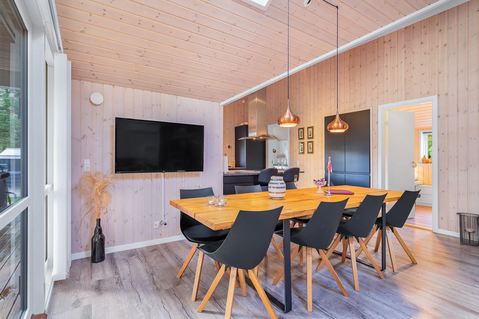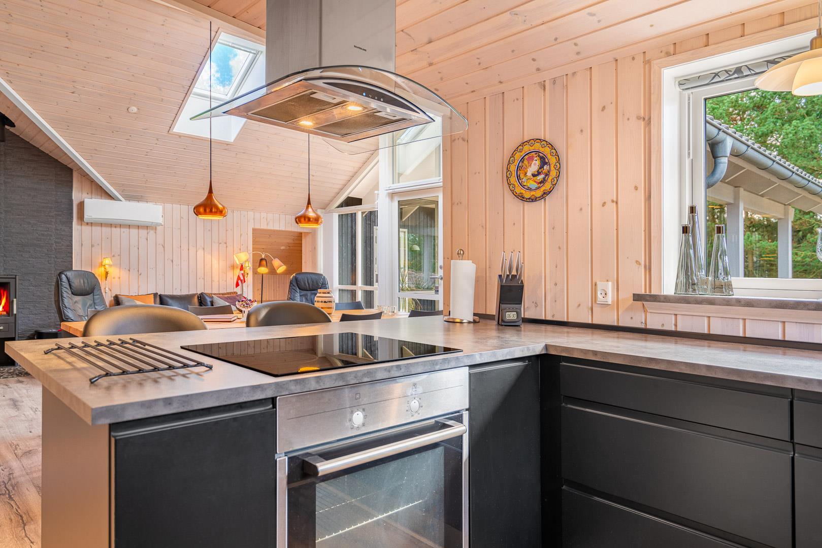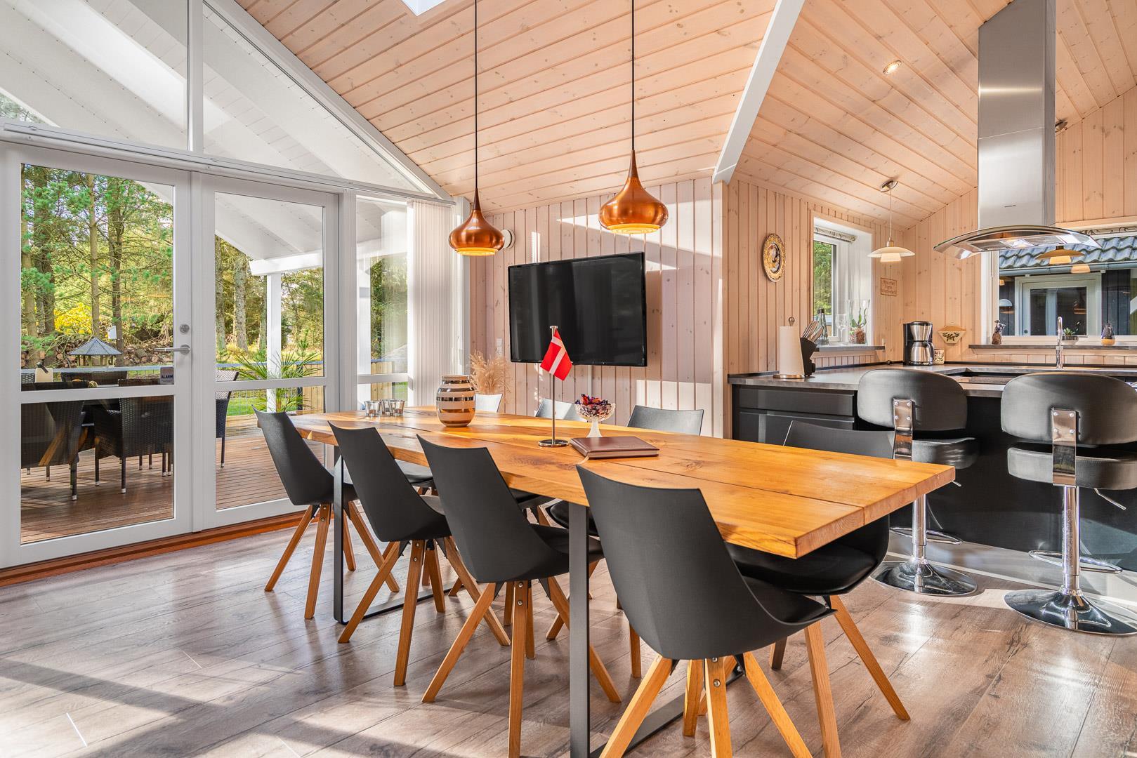 Die Küche ist offen gestaltet und modern ausgestattet – natürlich auch mit einer Spülmaschine. Damit ihr im Urlaub mehr Zeit zum Genießen habt. Am großen Esstisch findet ihr alle Platz, um gemeinsam zu essen, zu spielen oder einfach zusammen zu sein und über den nächsten Ausflug zu reden.