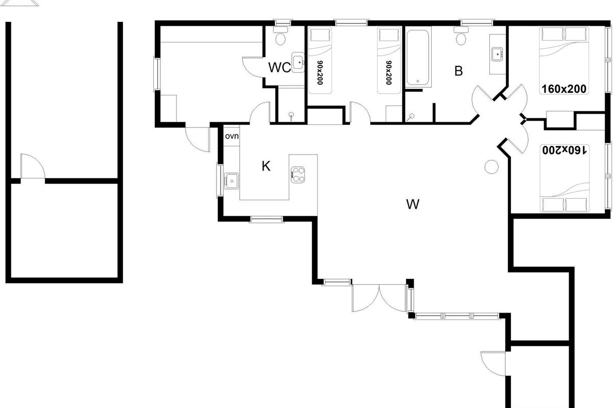 Bettengröße: 2 Doppelbetten (160 x 200 cm) & 2 Einzelbetten (90 x 200 cm)