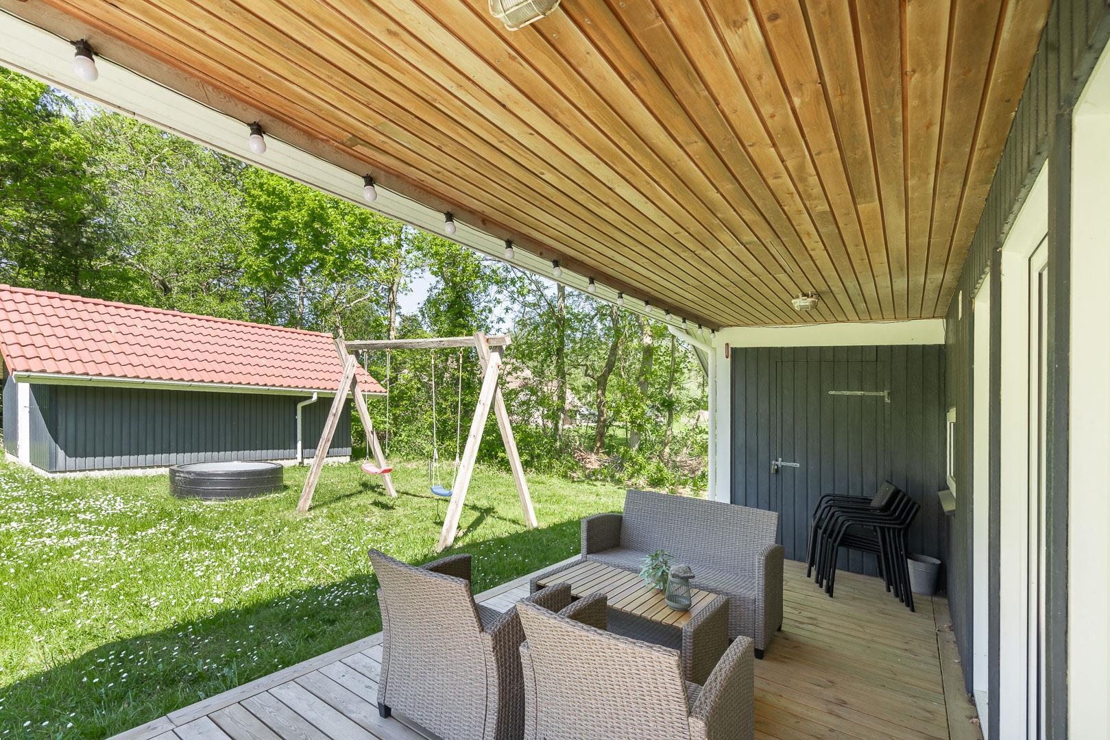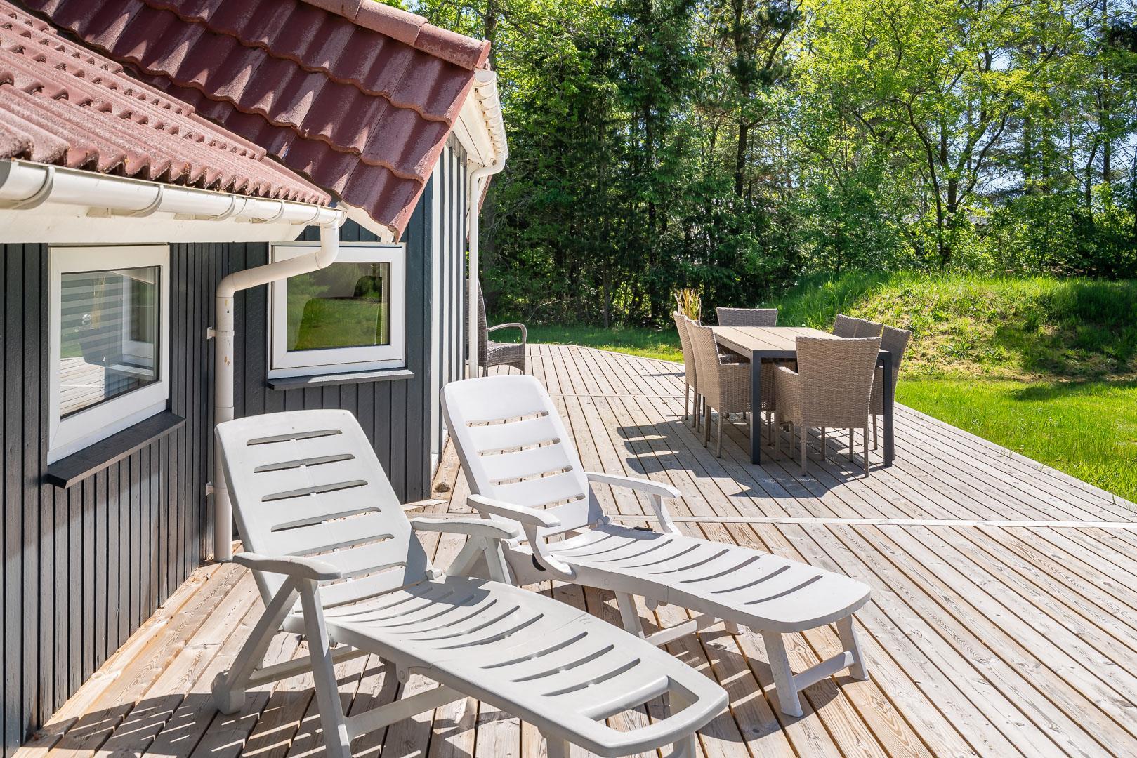 Der Außenbereich von eurem Ferienhaus im Engvejen 7 bietet besonders Familien mit Kindern und Hundebesitzern optimale Bedingungen für einen entspannten Urlaub. Während die Kinder in der Schaukel oder im Sandkasten spielen, könnt ihr auf der teilweise überdachten Terrasse entspannen – geschützt vor der Sonne oder leichtem Regen.