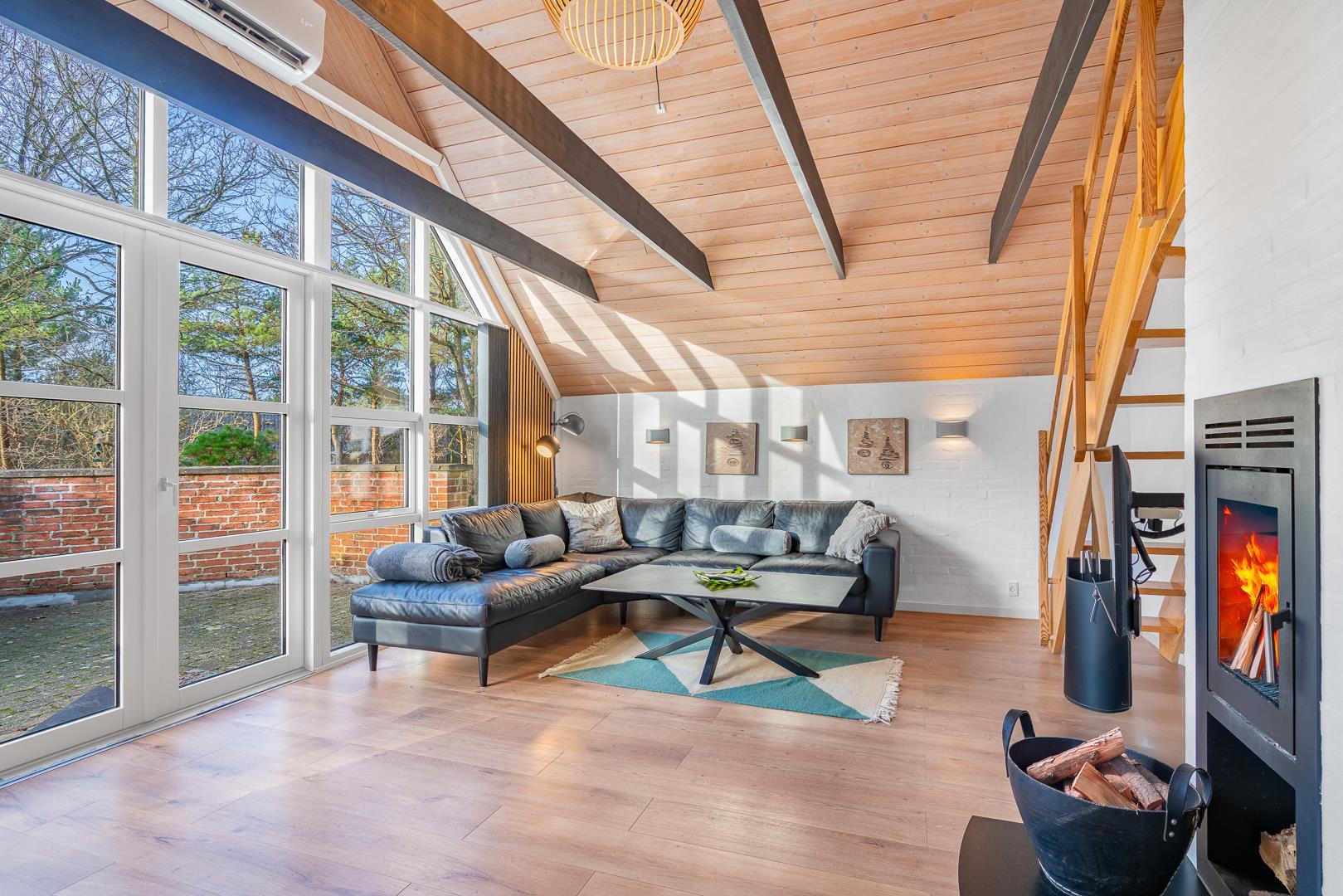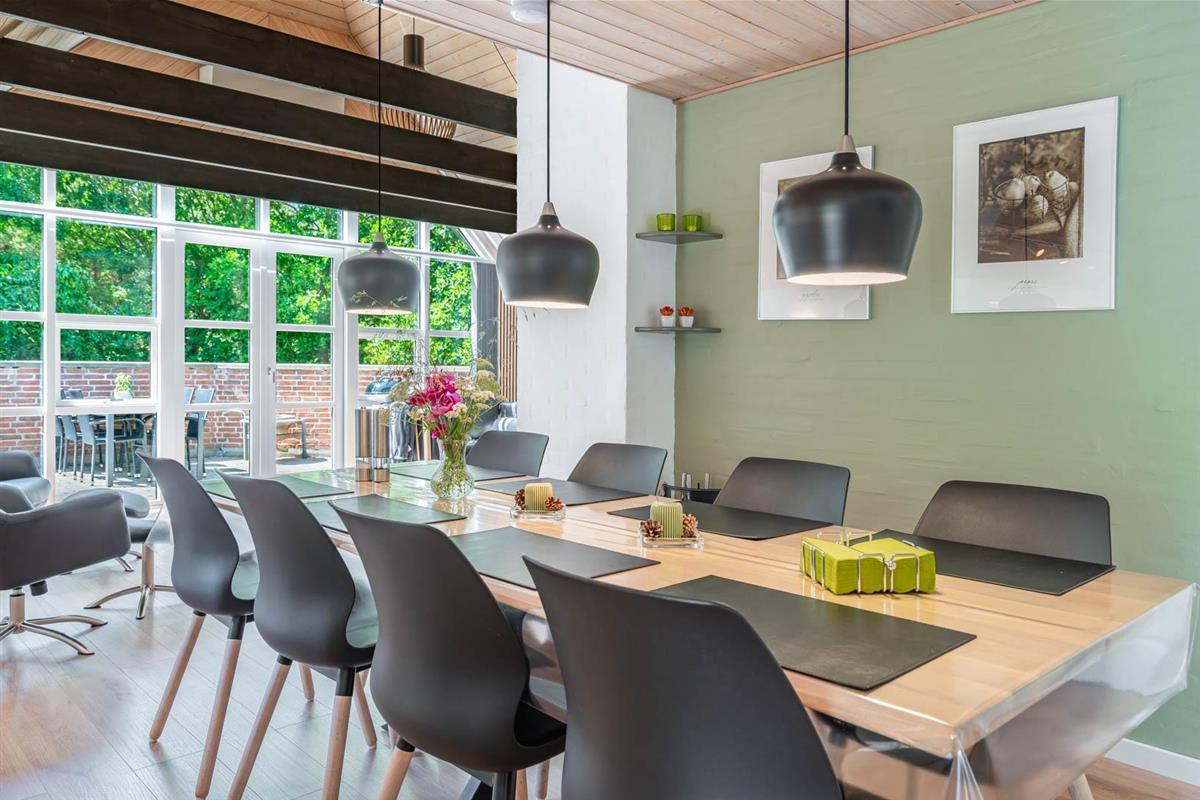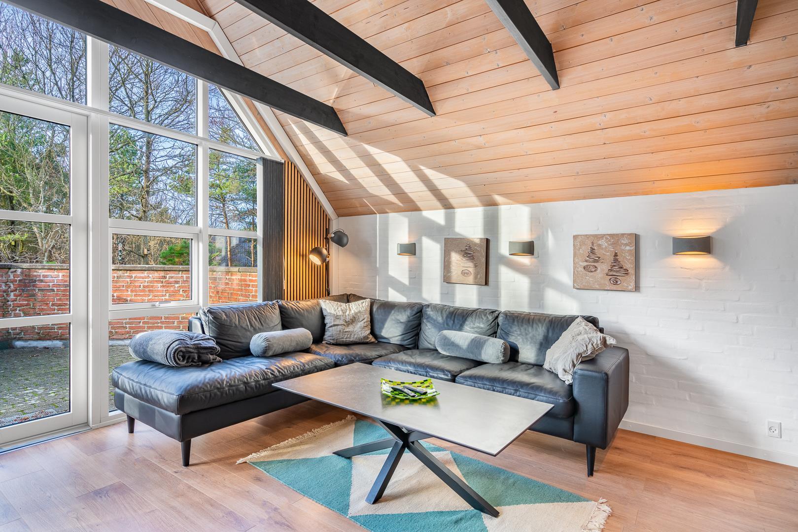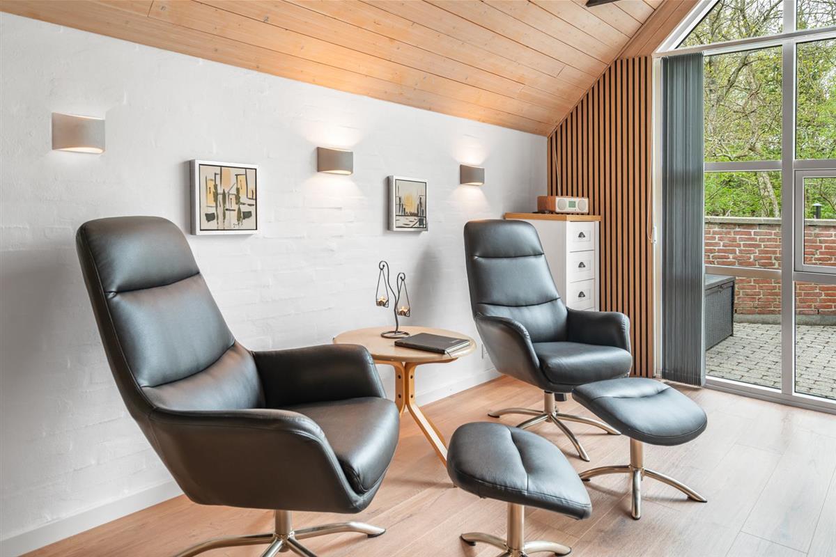 Gemütliches und geräumiges Ferienhaus mit großem Standwasser-Whirlpool und Sauna im Skovvang 6. Das Haus liegt auf einem großen, teilweise abgeschirmten Naturgrundstück mit mehreren guten Terrassen. Von dem geräumigen Wohnzimmer mit großen Panoramafenstern und Holzofen haben Sie direkten Zugang zur großen Terrasse des Hauses. 2023 schöne neue Küche - zum geniessen.