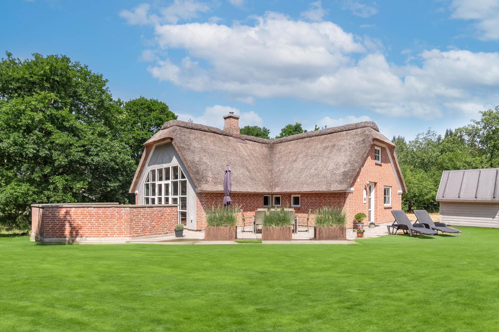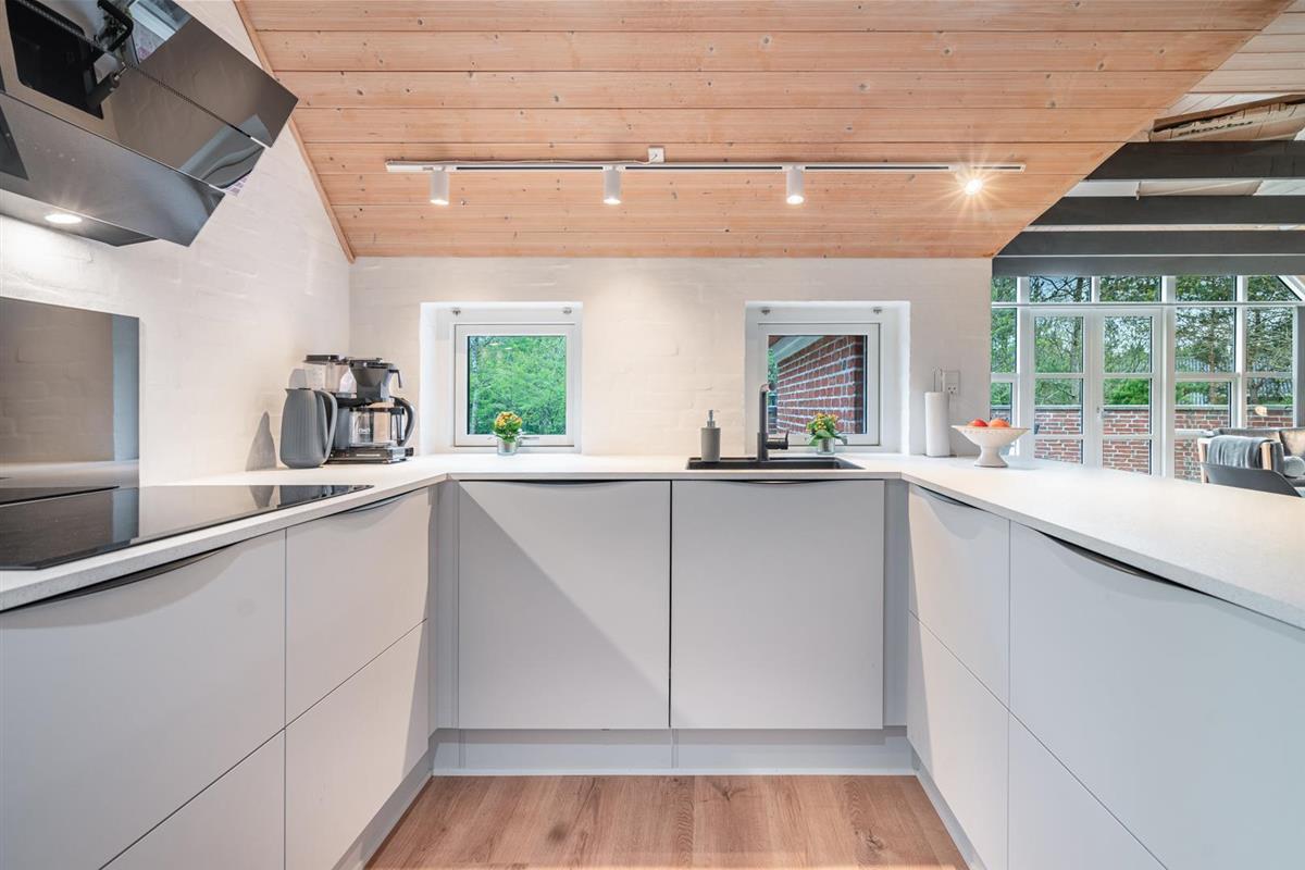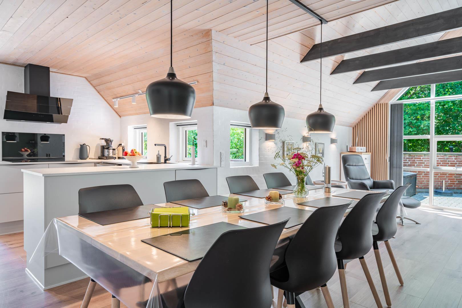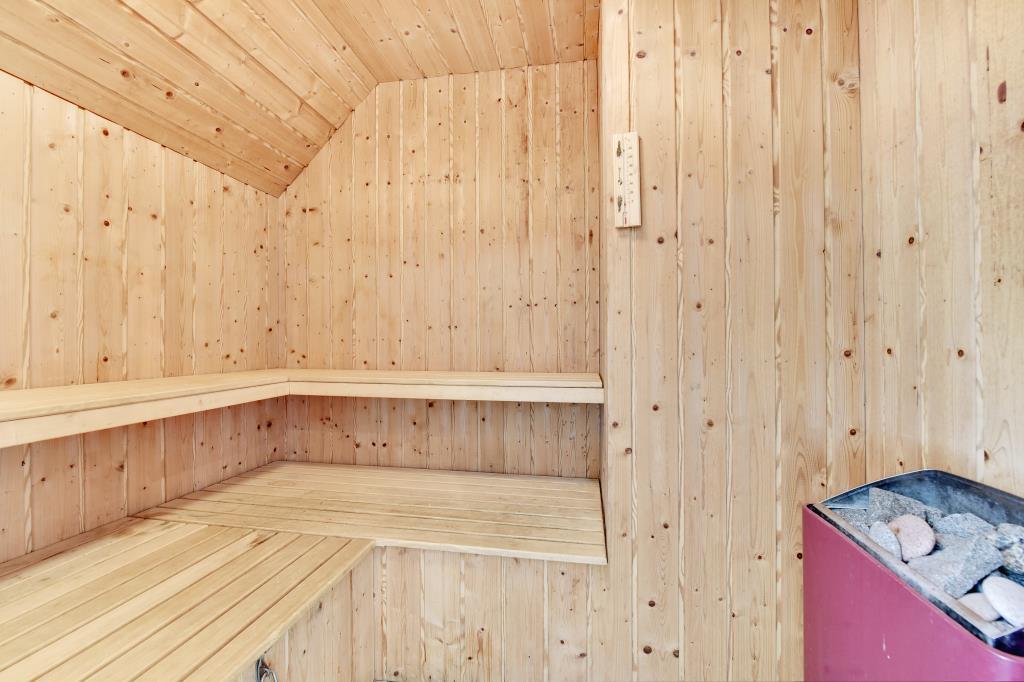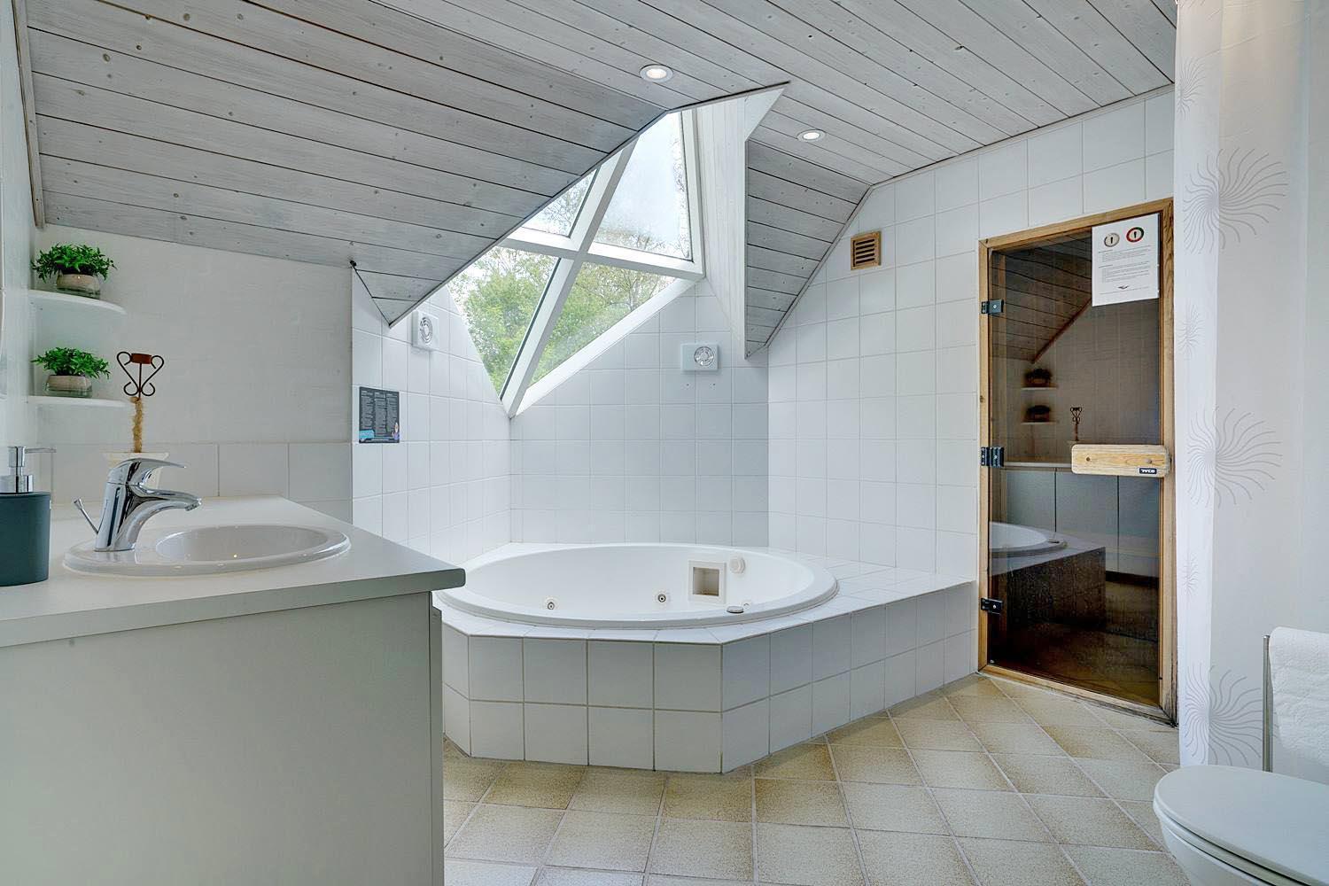 Gemütliches und geräumiges Ferienhaus mit großem Standwasser-Whirlpool und Sauna im Skovvang 6. Das Haus liegt auf einem großen, teilweise abgeschirmten Naturgrundstück mit mehreren guten Terrassen. Von dem geräumigen Wohnzimmer mit großen Panoramafenstern und Holzofen haben Sie direkten Zugang zur großen Terrasse des Hauses. 2023 schöne neue Küche - zum geniessen.