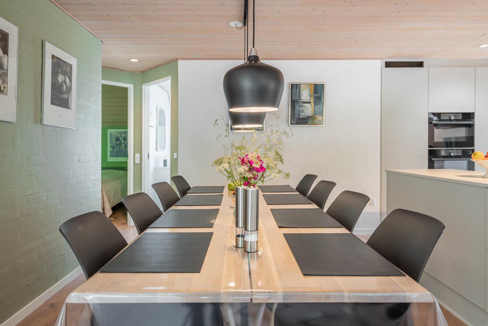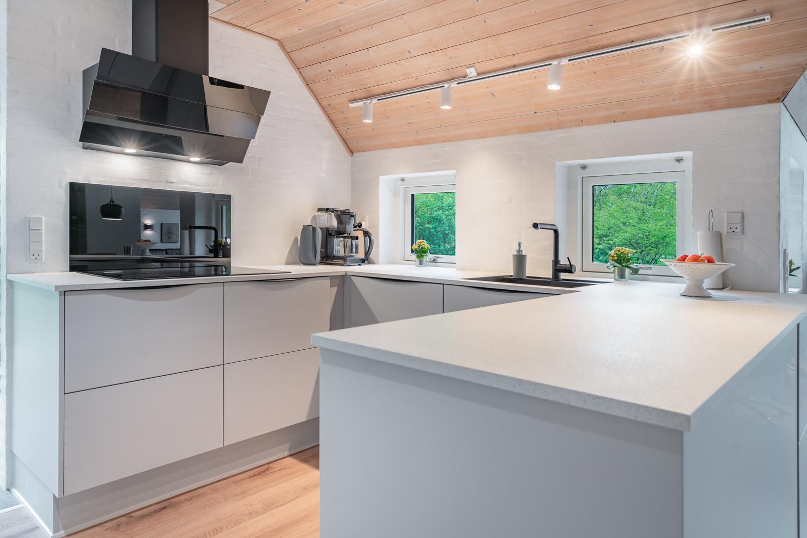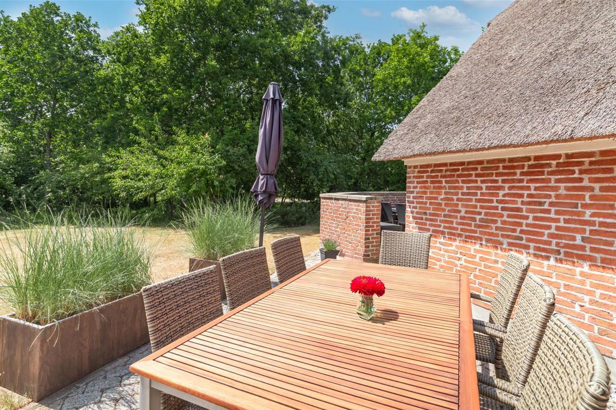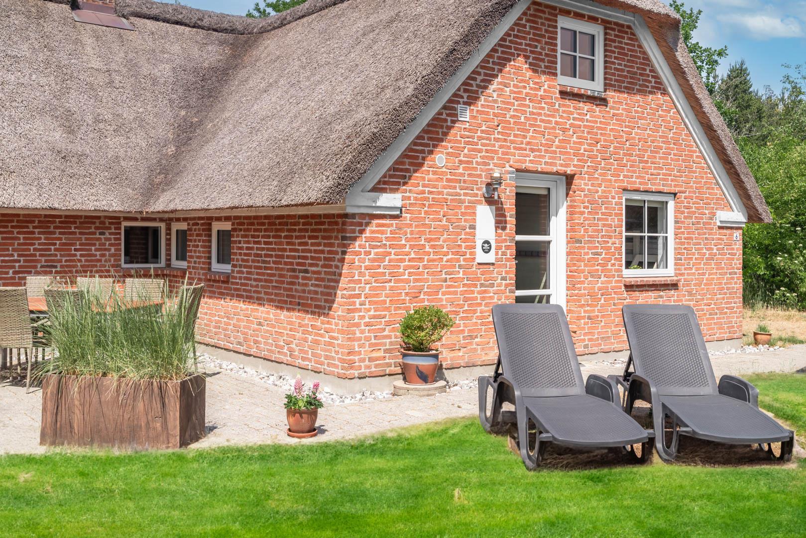 Gemütliches und geräumiges Ferienhaus mit großem Standwasser-Whirlpool und Sauna im Skovvang 6. Das Haus liegt auf einem großen, teilweise abgeschirmten Naturgrundstück mit mehreren guten Terrassen. Von dem geräumigen Wohnzimmer mit großen Panoramafenstern und Holzofen haben Sie direkten Zugang zur großen Terrasse des Hauses. 2023 schöne neue Küche - zum geniessen.