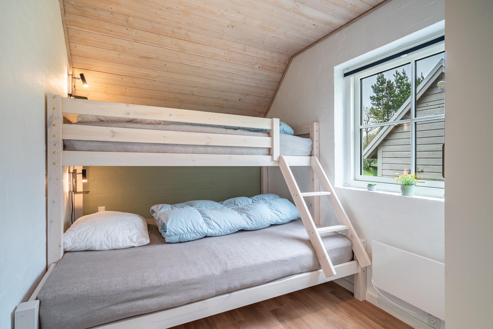 Bettengrösse: 3 Doppelbetten 180 x 200 cm + 1 Etagenbett das obere Bett ist 90 x 200 cm und das untere Bett ist 140 x 200 cm.
