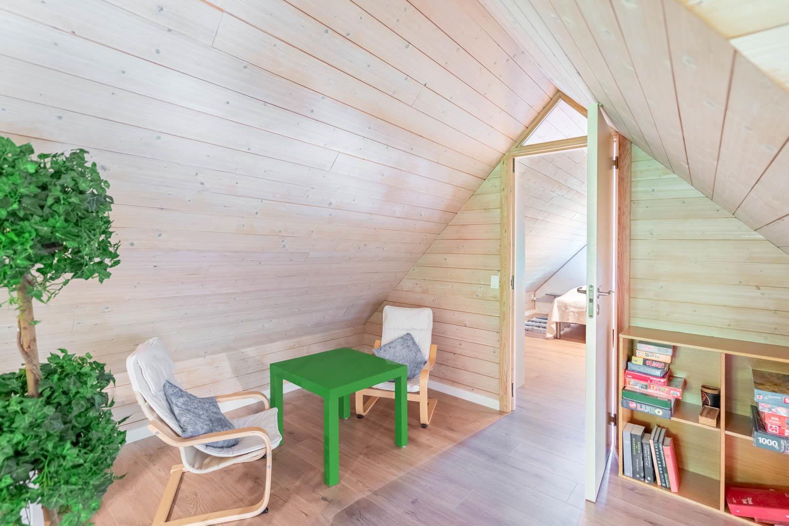 Im 1. Stock des Hauses befindet sich ein kleiner Aktivitätsraum mit zusätzlichem TV, Spielbereich. Das Haus wurde in 2023 aufgebessert und wirkt daher sehr einladend. Unter anderem wurde das kleine Badezimmer erneuert.