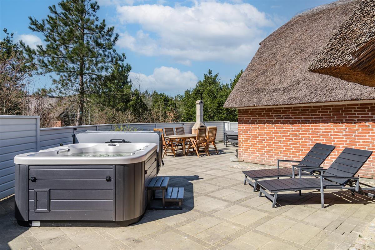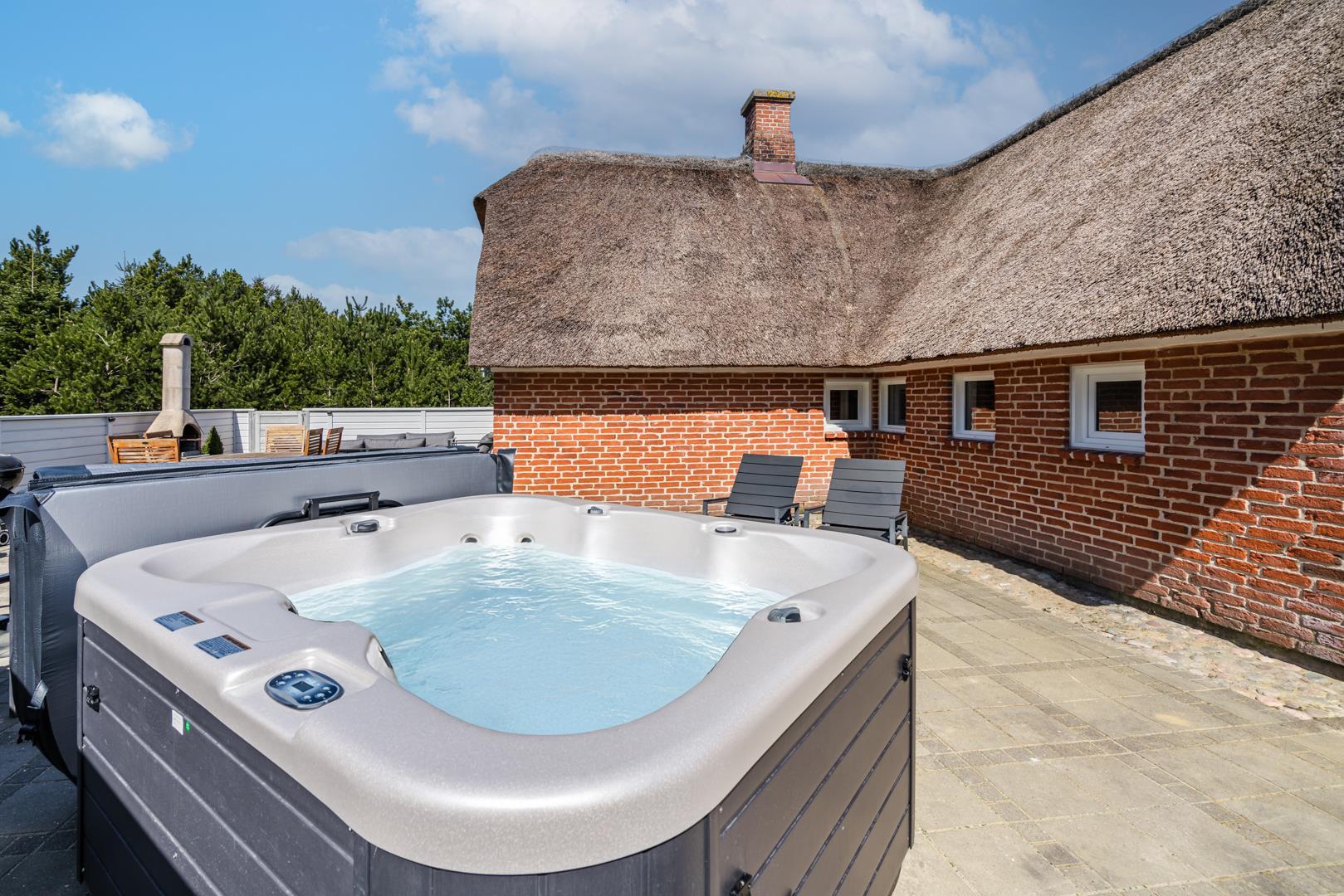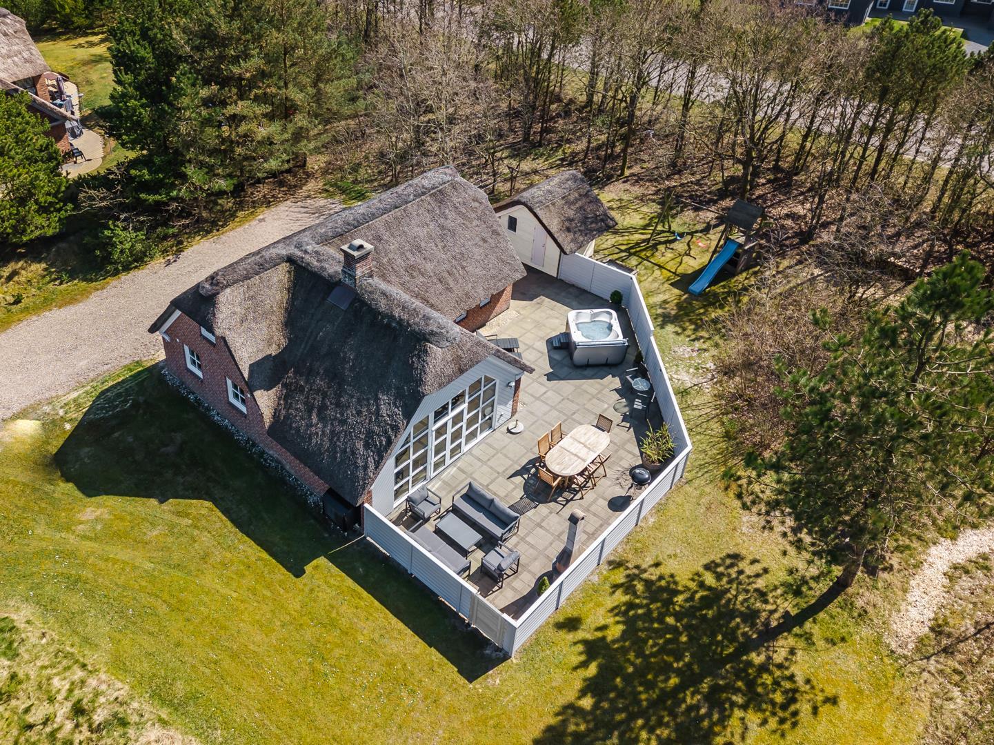 Genießen Sie die schönen Außenbereiche mit einer vollständig eingezäunten Fliesenterrasse – ideal sowohl für entspannende Stunden als auch für gemütliche Mahlzeiten an der frischen Luft. Das Haus ist auch mit einem herrlichem Außenwhirlpool ausgestattet, in dem Sie entspannen und die Ruhe in der naturnahen Umgebung genießen können.