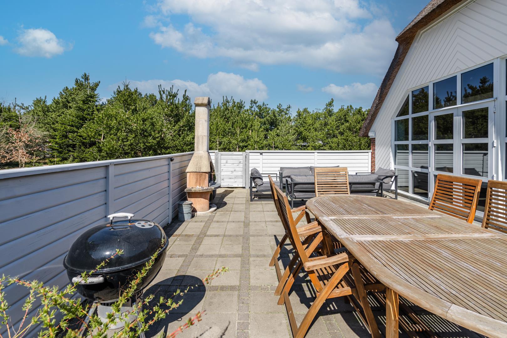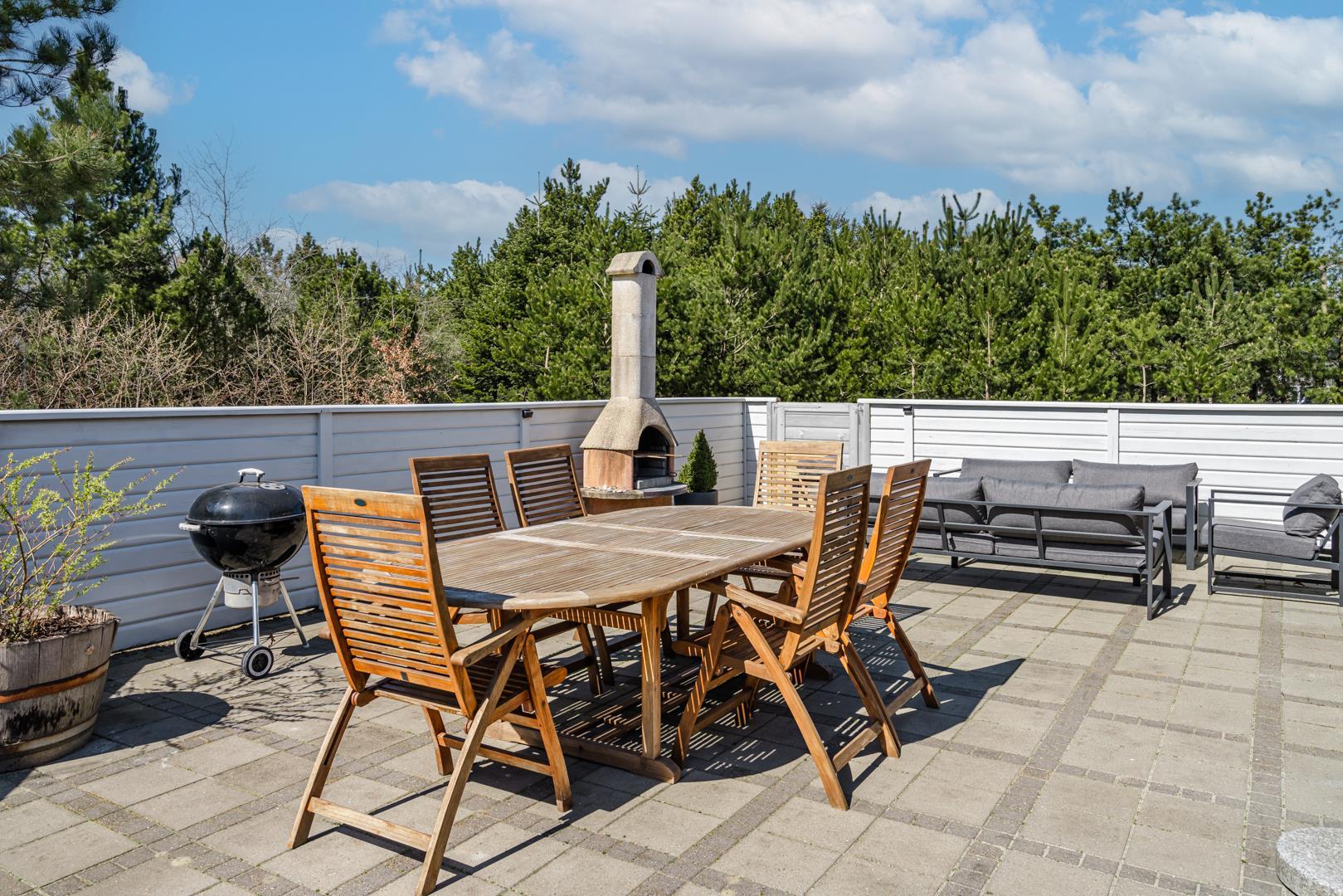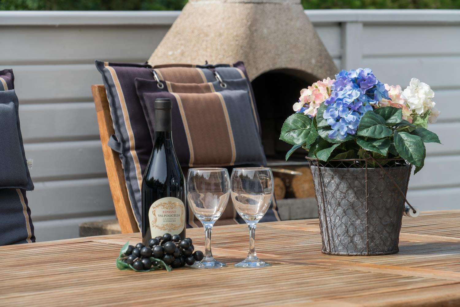 Genießen Sie die schönen Außenbereiche mit einer vollständig eingezäunten Fliesenterrasse – ideal sowohl für entspannende Stunden als auch für gemütliche Mahlzeiten an der frischen Luft. Das Haus ist auch mit einem herrlichem Außenwhirlpool ausgestattet, in dem Sie entspannen und die Ruhe in der naturnahen Umgebung genießen können.